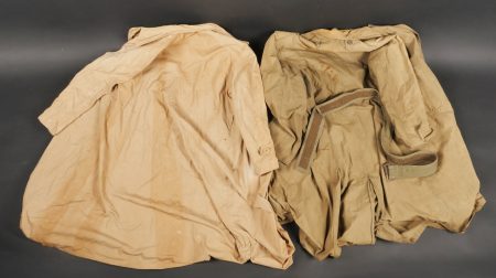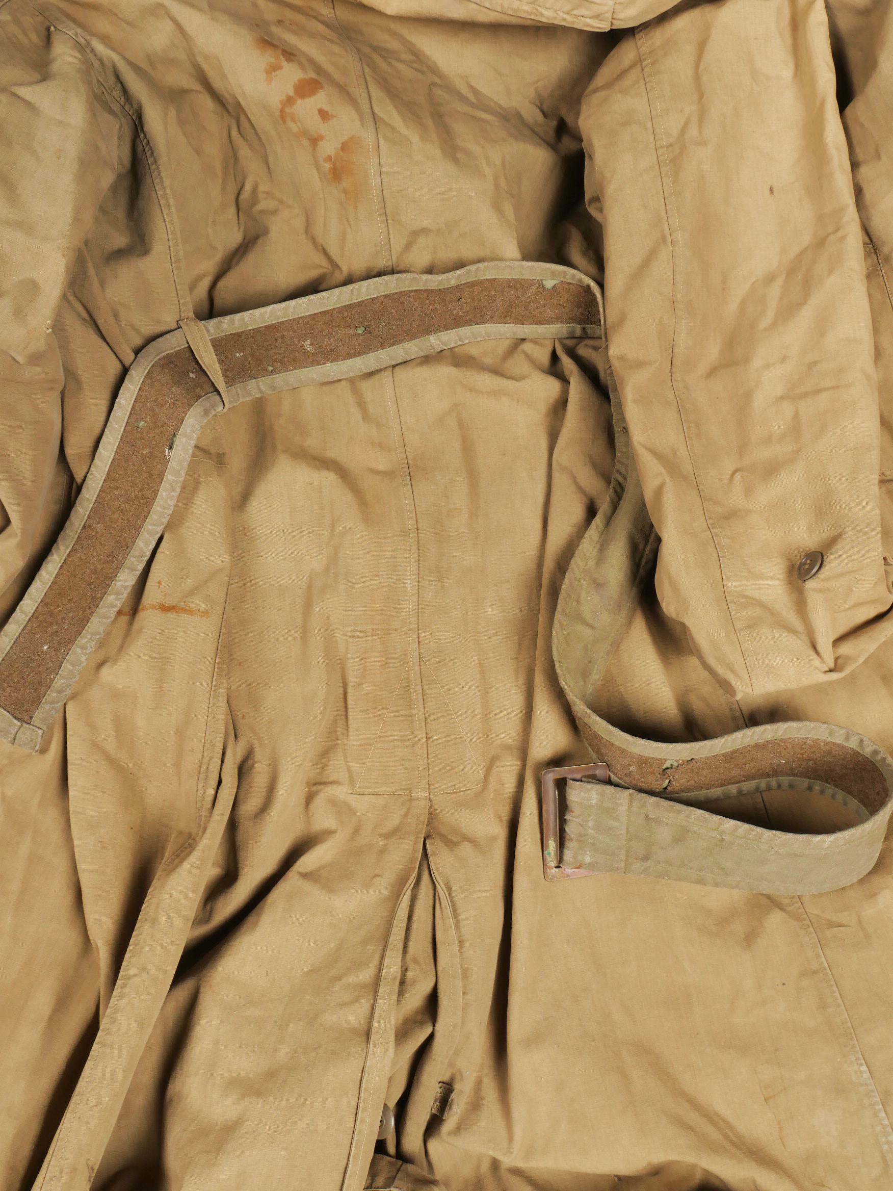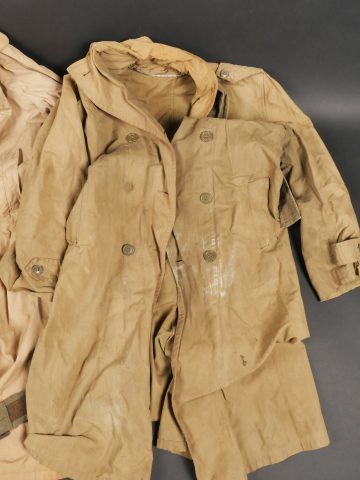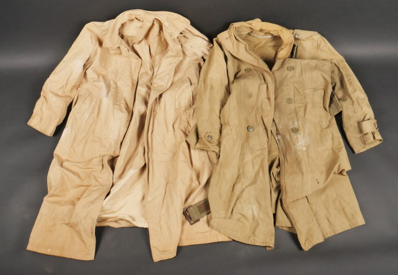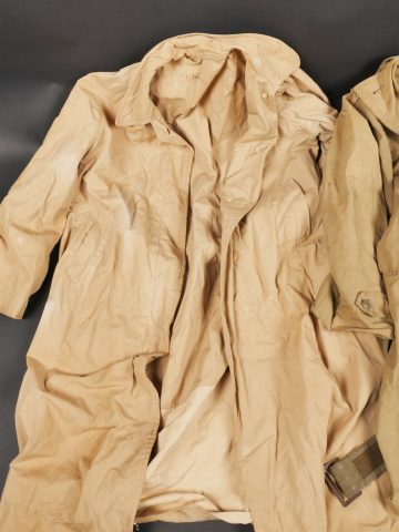 Détails de la vente >Lot de 2 imperméables en toile kaki. Deux imperméables en toile, troupe ou officier, probablement US. Un avec une ceinture de taille