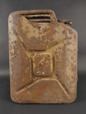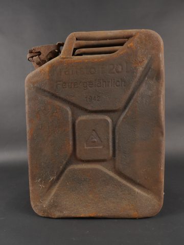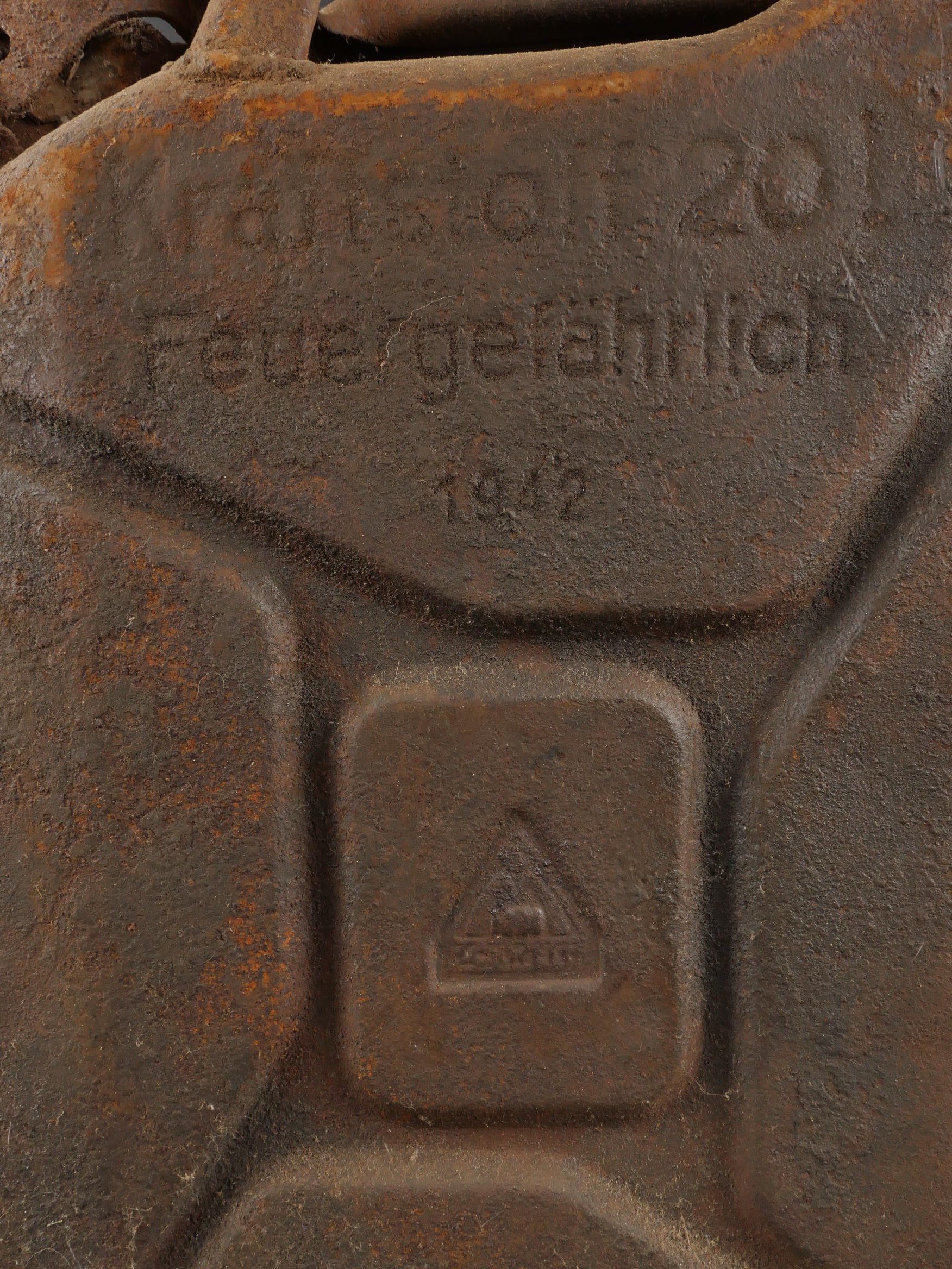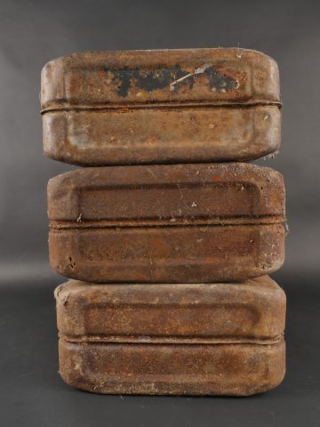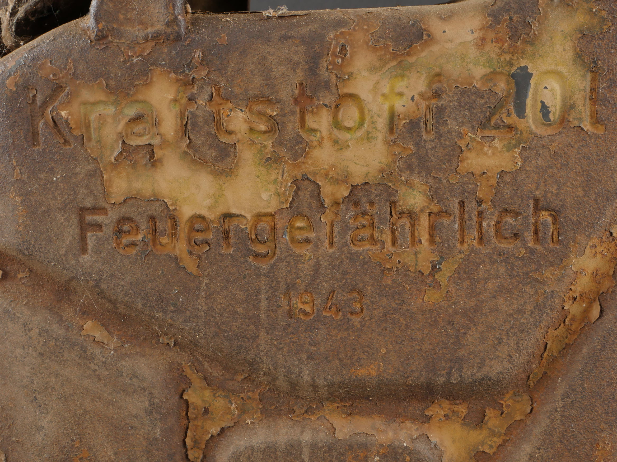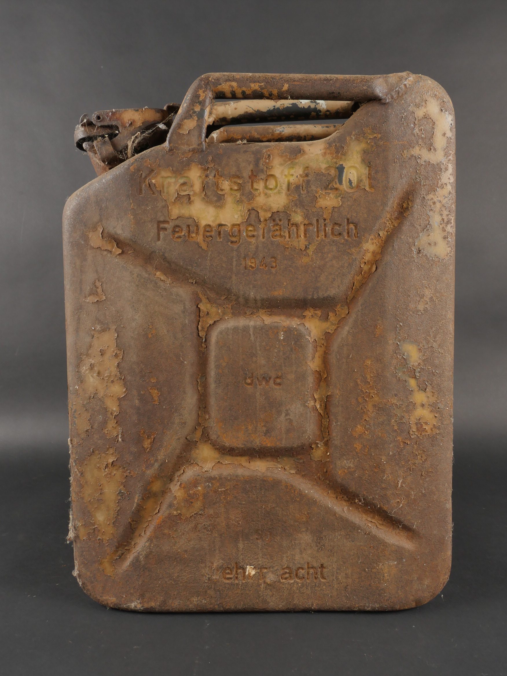 Détails de la vente >Lot de 3 jerrycans allemands. Pour carburant Wehrmacht, datés 1942, 1943, 1944