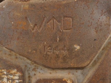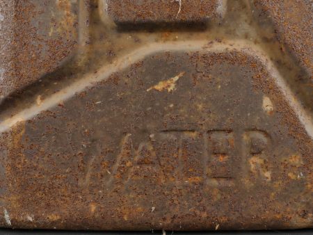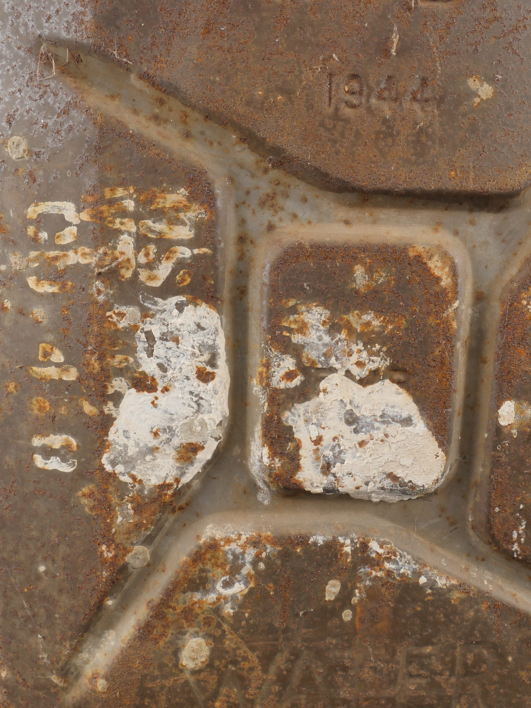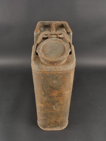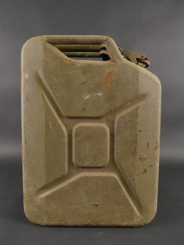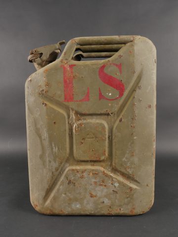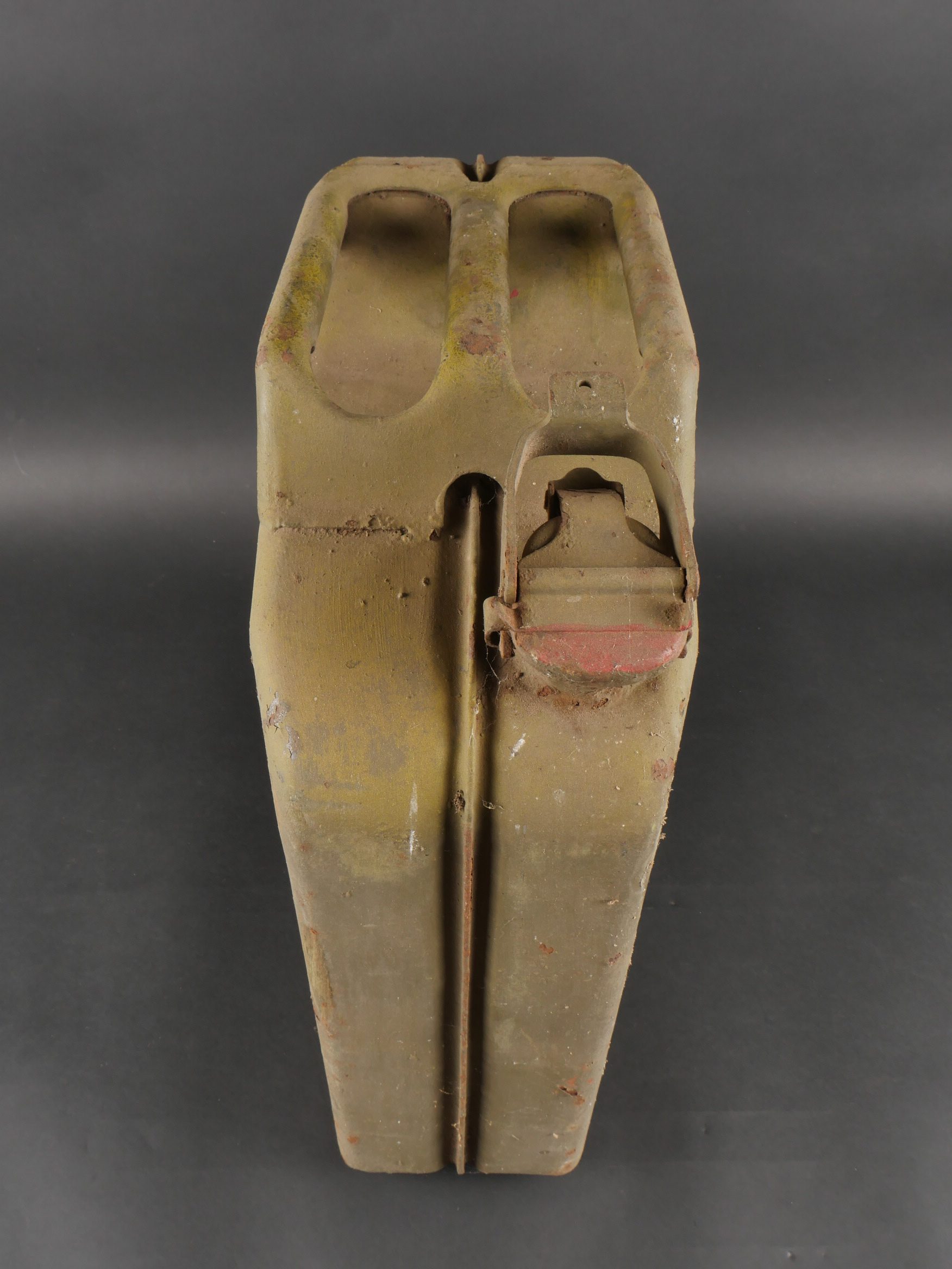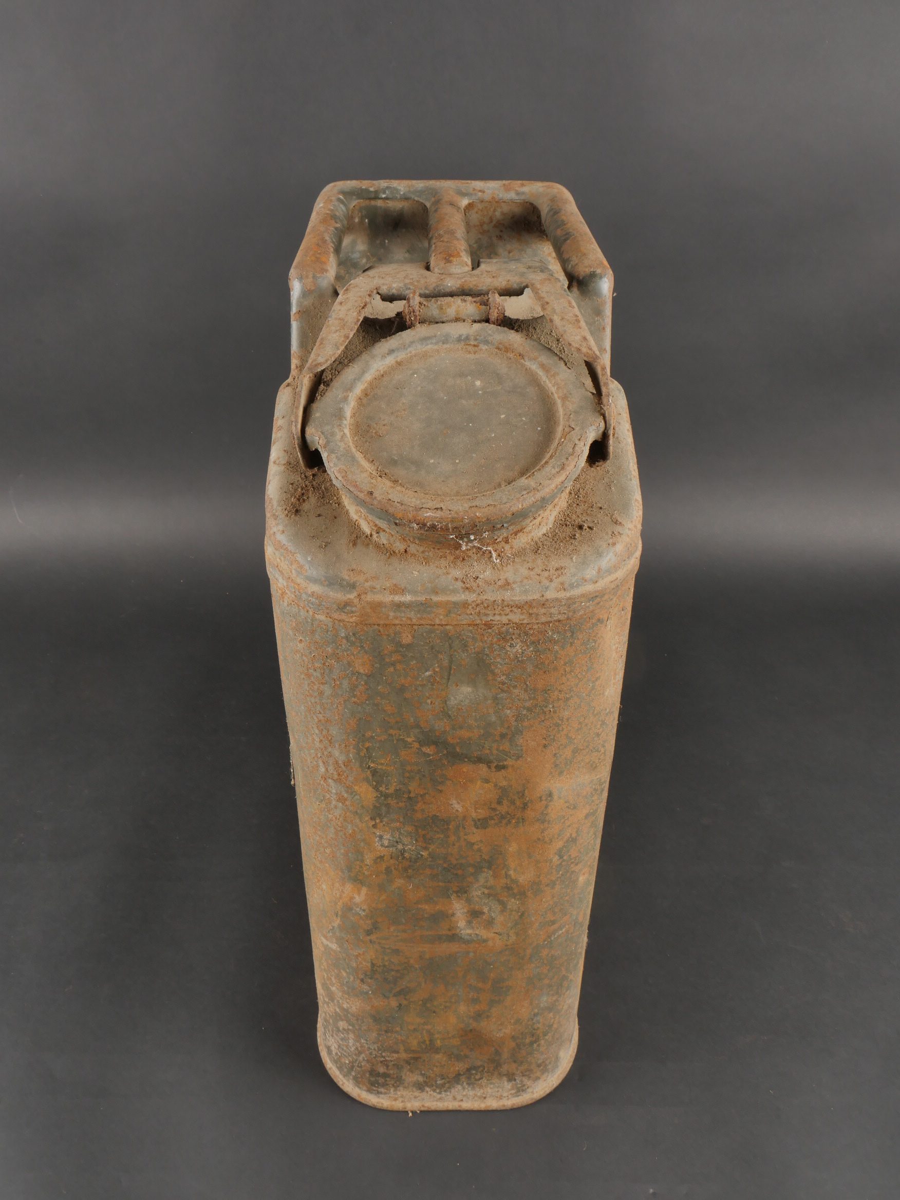 Détails de la vente >Lot de 3 jerrycans alliés? Un jerrycan US, un anglais pour de l’eau avec marquage à la peinture, et un repeint
