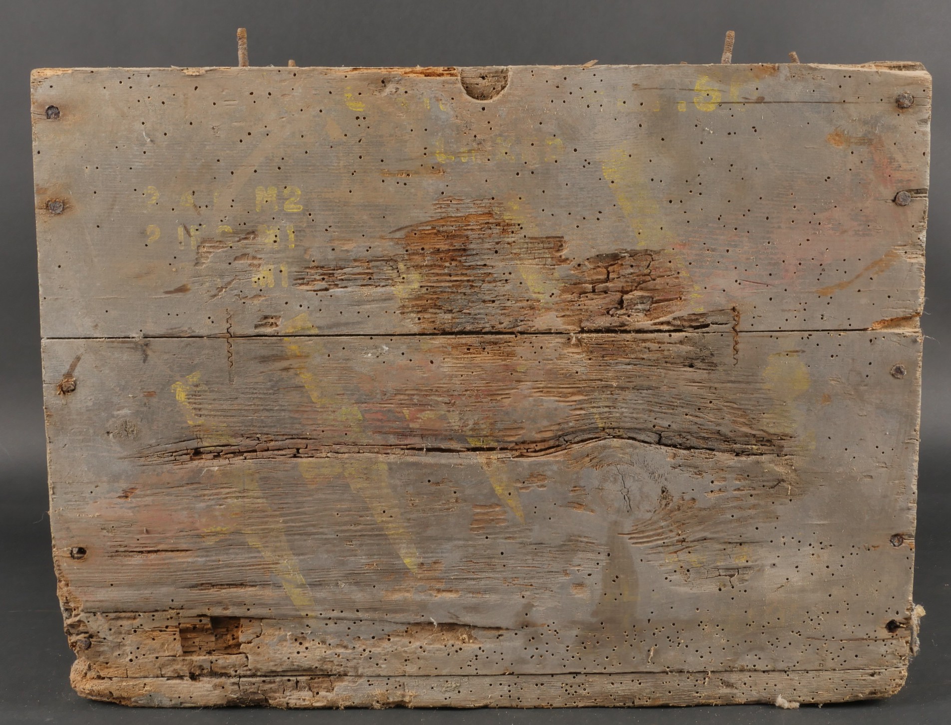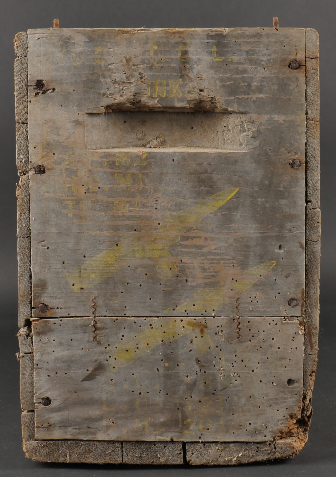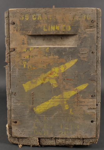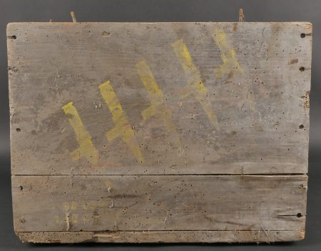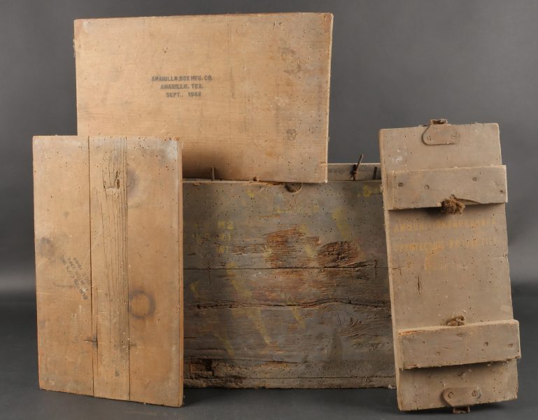 Détails de la vente >Lot de caisses et couvercles US. Caisse Cal.50 sans couvercle, couvercle de caisse de projectile, 2 couvercles datés septembre et octobre 1944