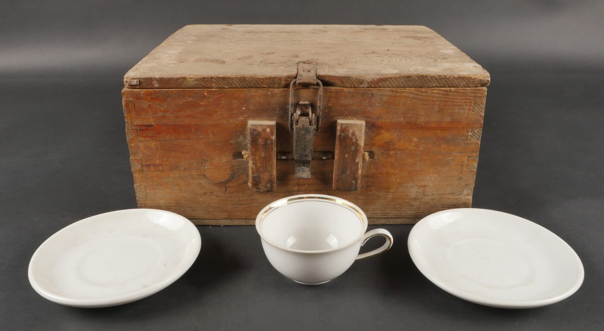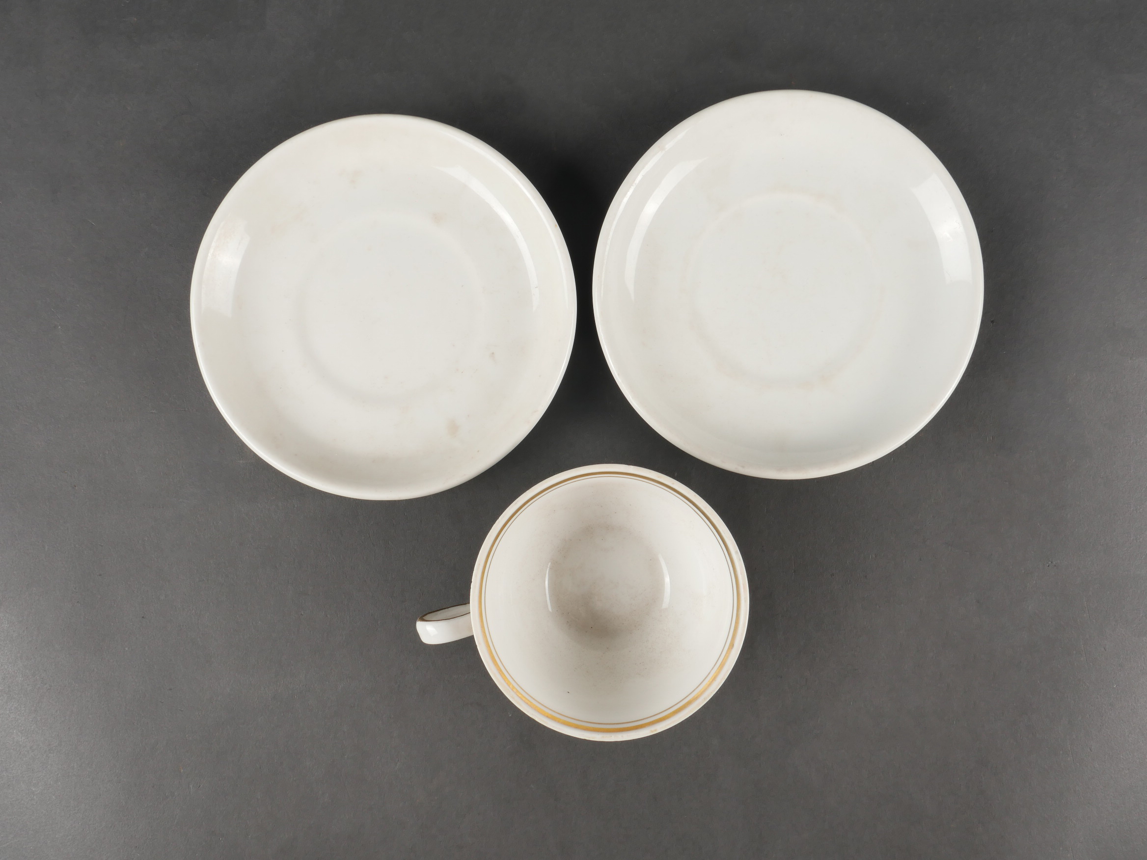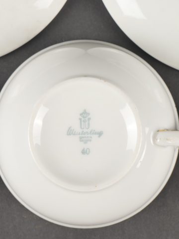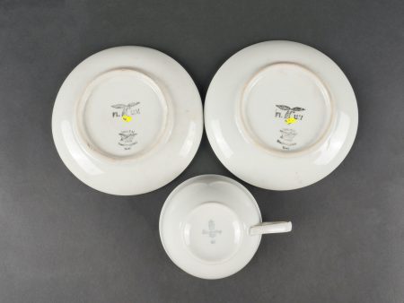 Lot porcelaines Luftwaffe. Caisse contenant 2 sous-tasses Luftwaffe et une tasse civile
