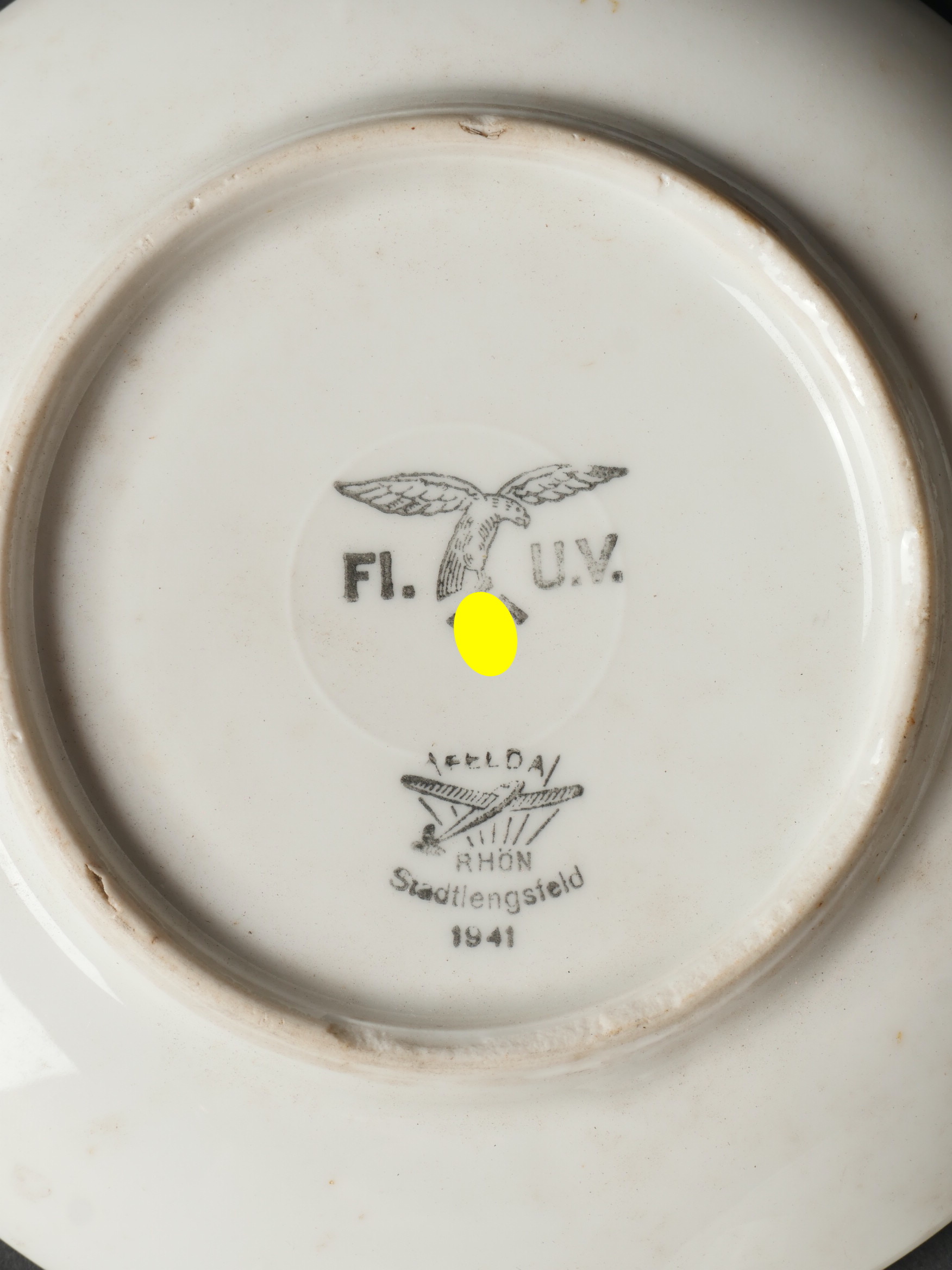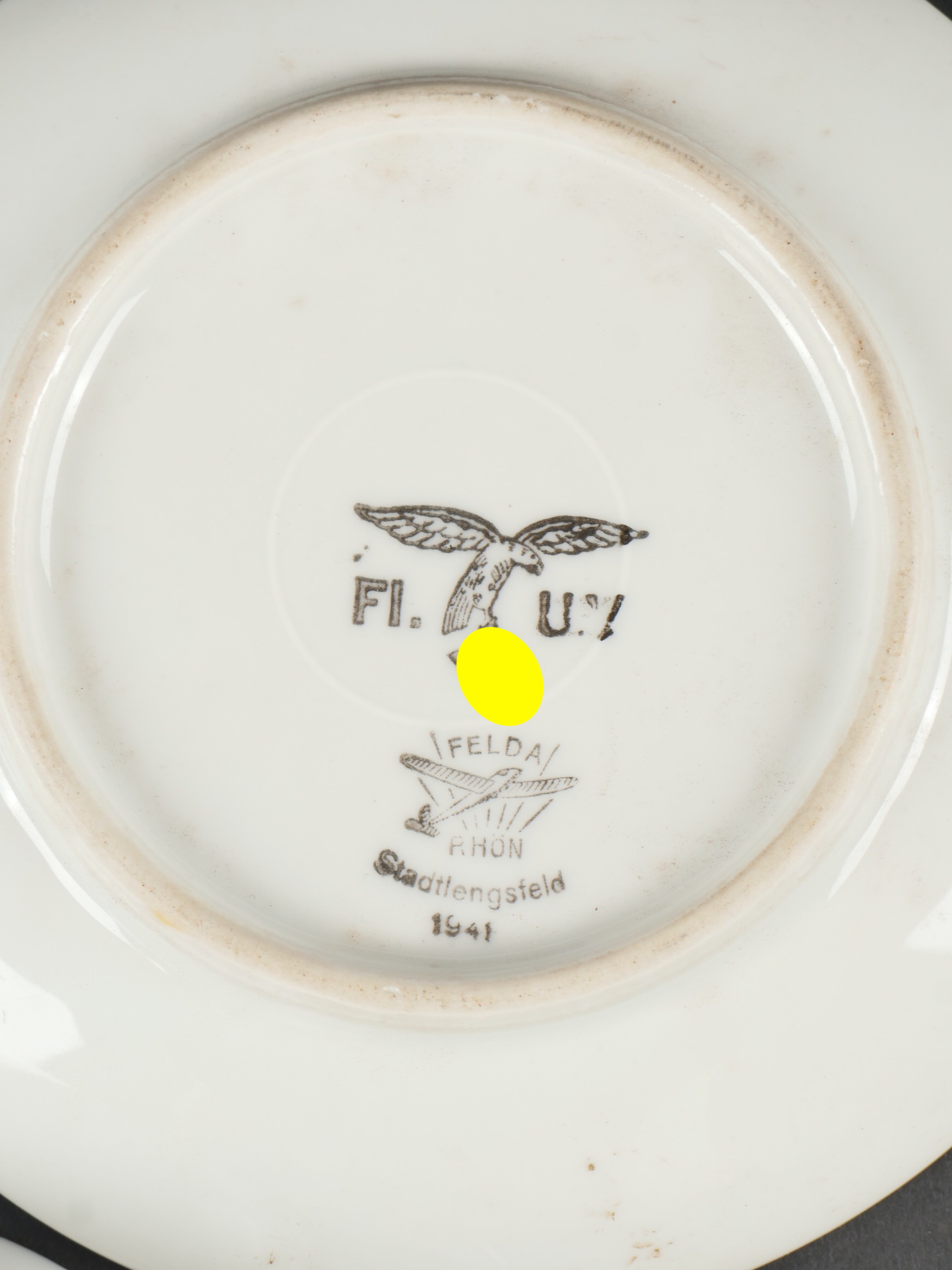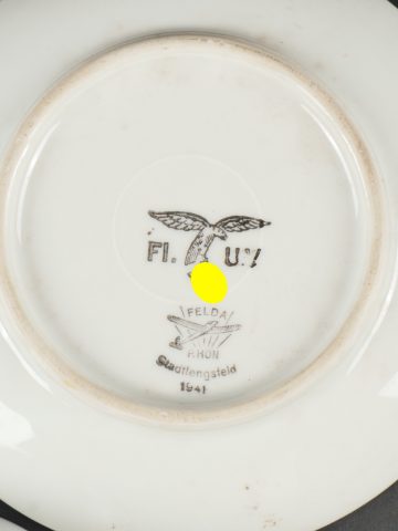 Détails de la vente >Lot porcelaines Luftwaffe. Caisse contenant 2 sous-tasses Luftwaffe et une tasse civile