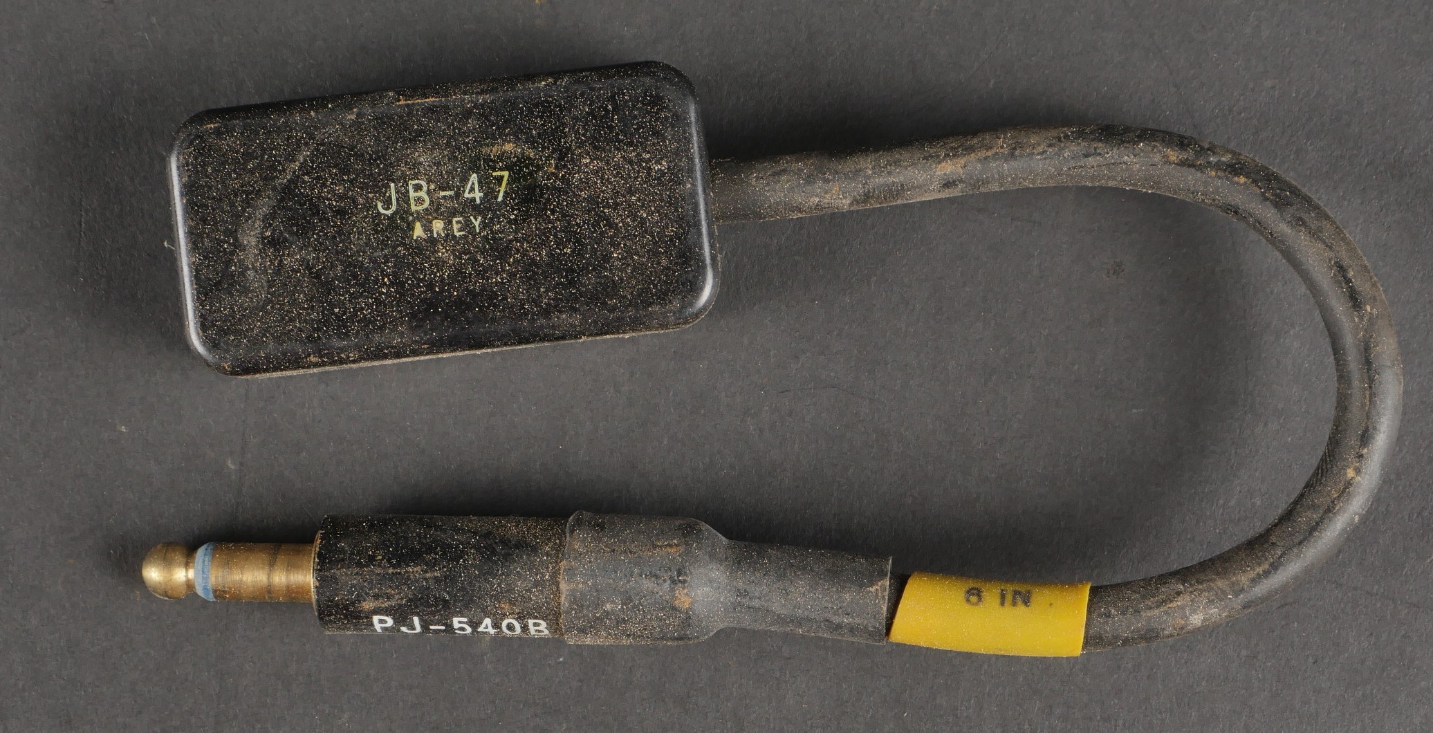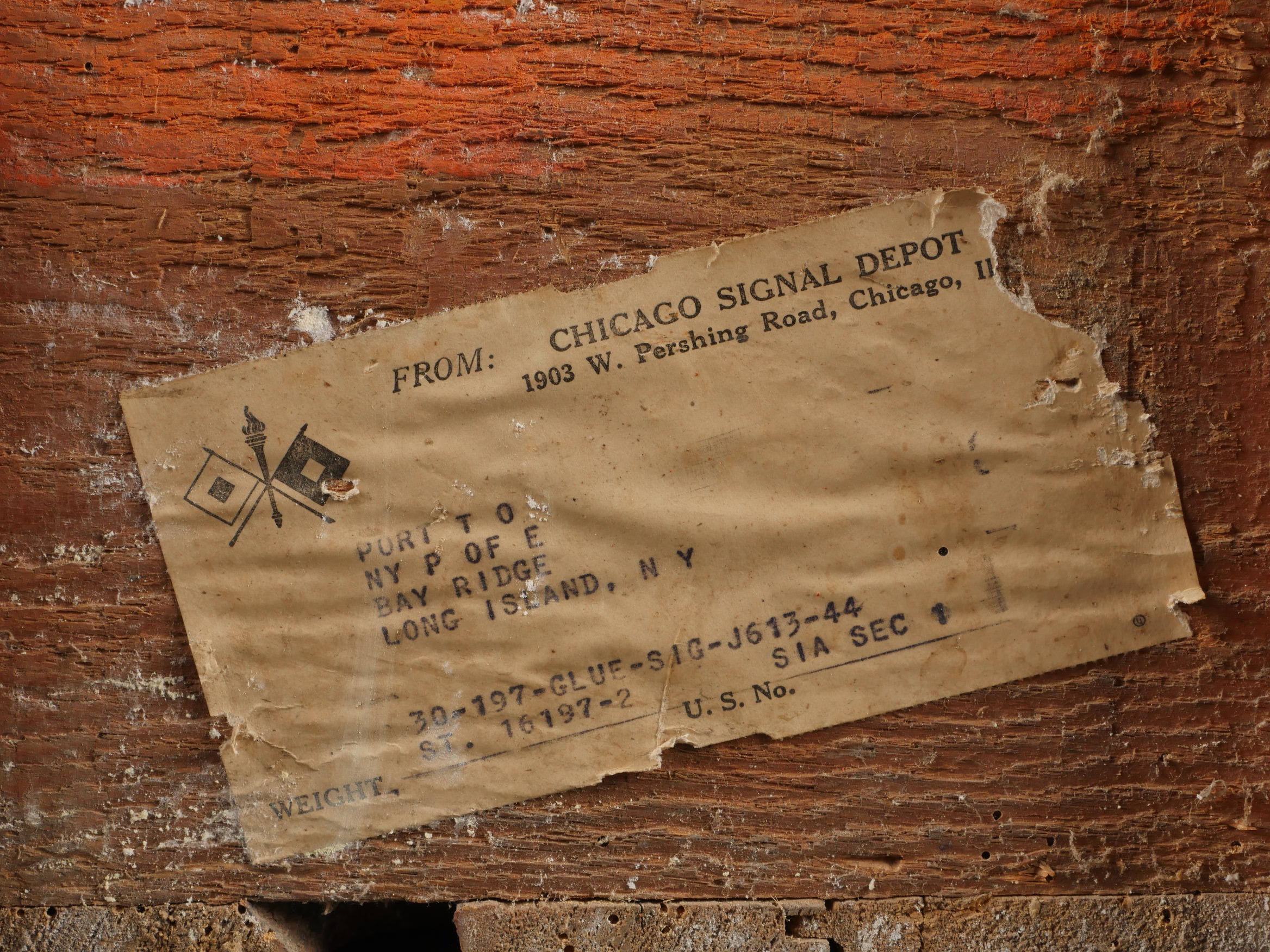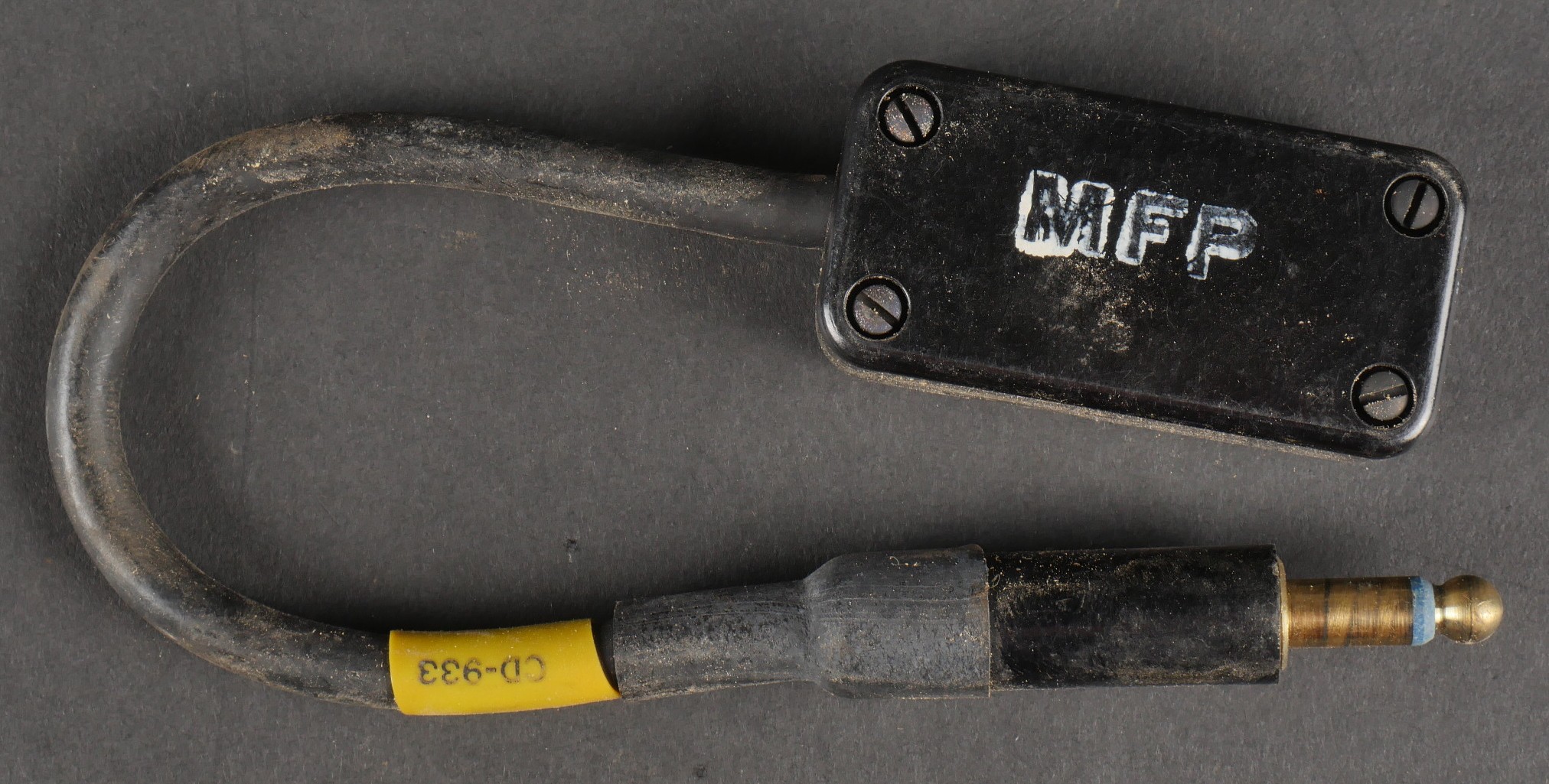 Lot US Signal Corps caisse et dispositif d’alarme. Rare caisse en bois pour batteries Signal Corps, bien marquée avec son étiquette. 2 piquets et un couvercle de boîte de Flare trip Mk 1B, dispositif d’alarme lumineux. Un connecteur ou transformateur à identifier.