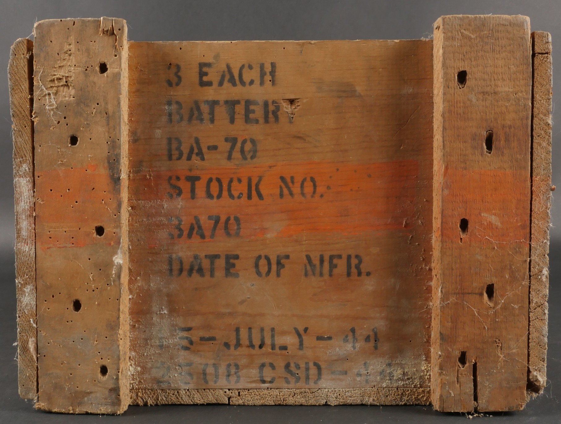 Détails de la vente >Lot US Signal Corps caisse et dispositif d’alarme. Rare caisse en bois pour batteries Signal Corps, bien marquée avec son étiquette. 2 piquets et un couvercle de boîte de Flare trip Mk... en savoir plus
