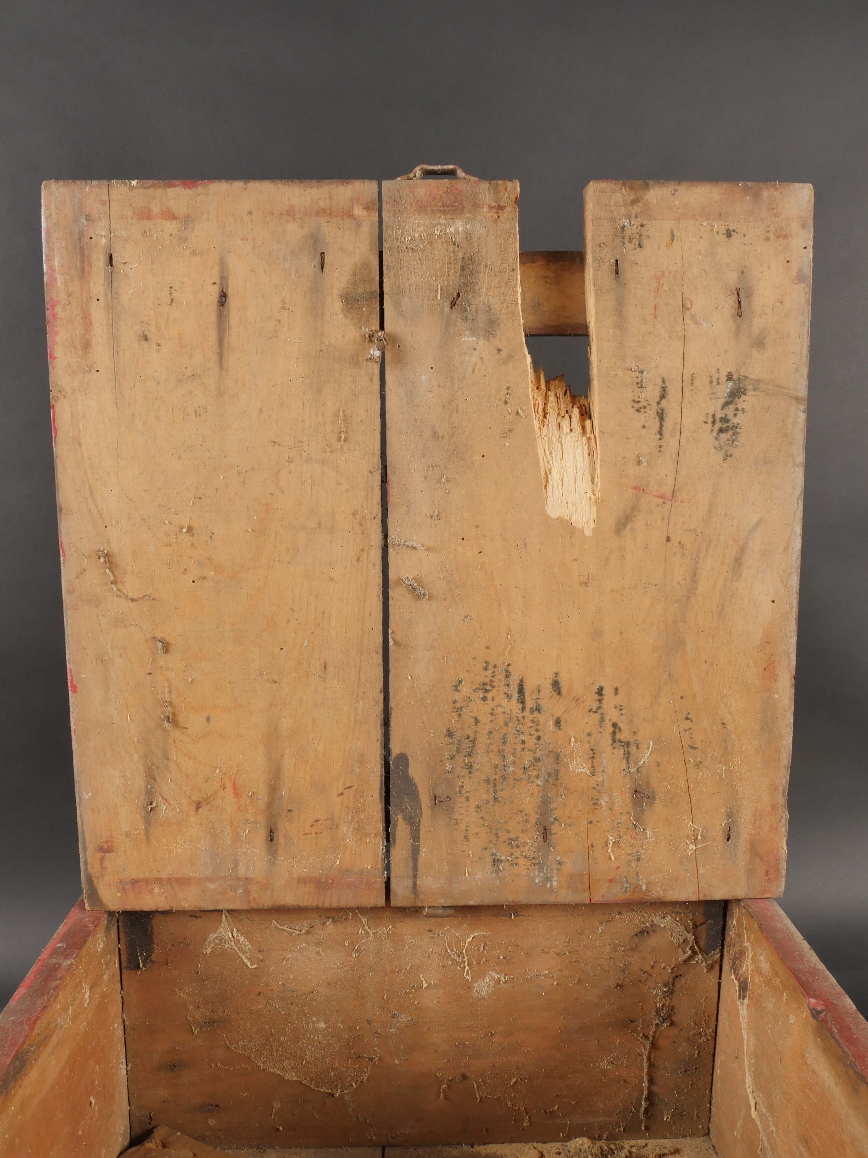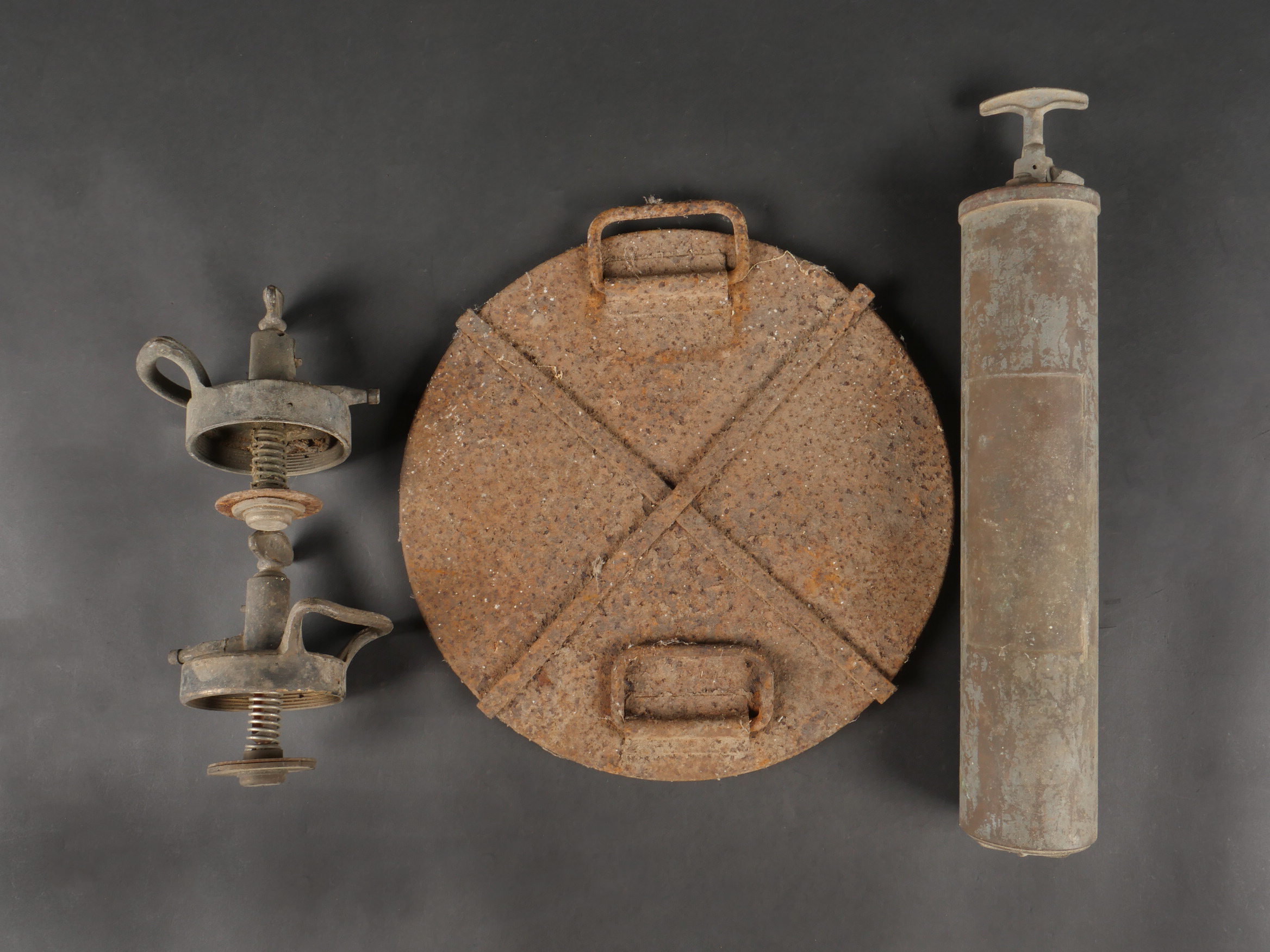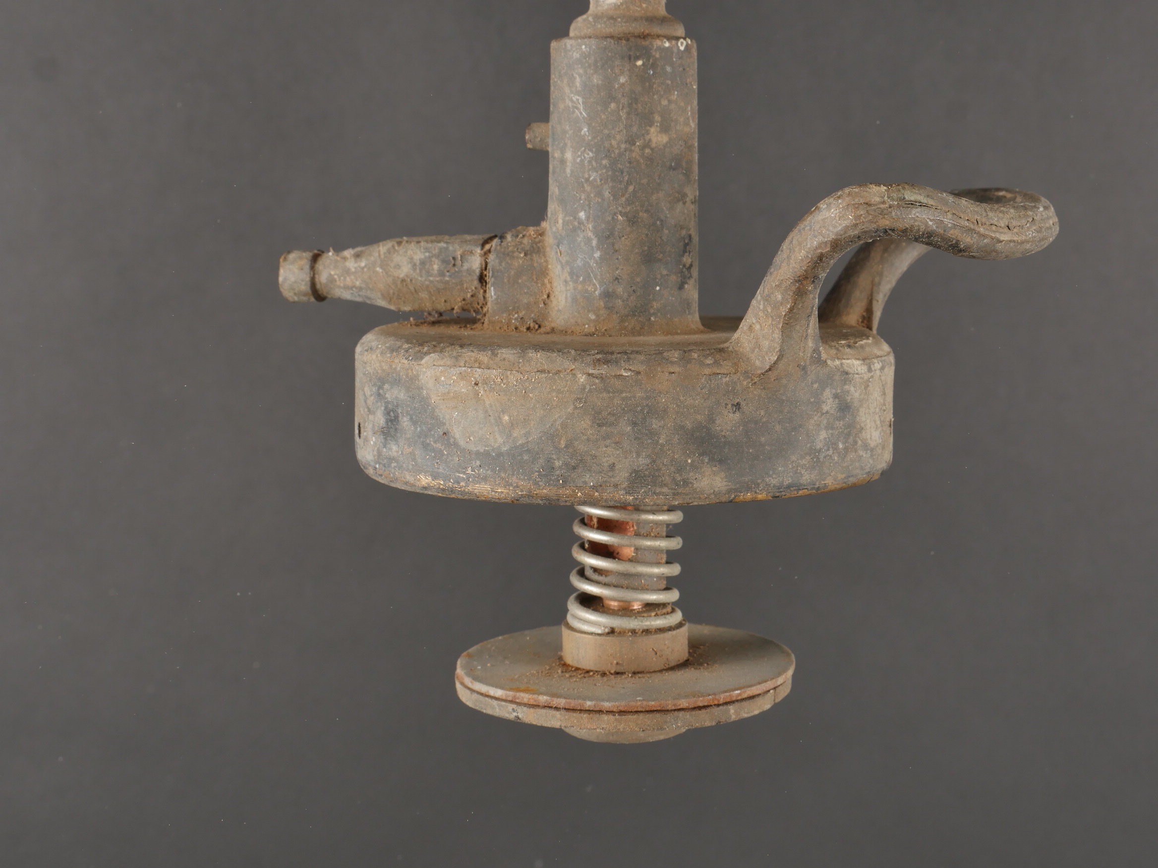 Détails de la vente >Pulvérisateur de décontamination US et caisse. Pulvérisateur, 2 têtes de pulvérisateur ou extincteur à identifier, caisse pour 25 fusées M51A et un couvercle de container