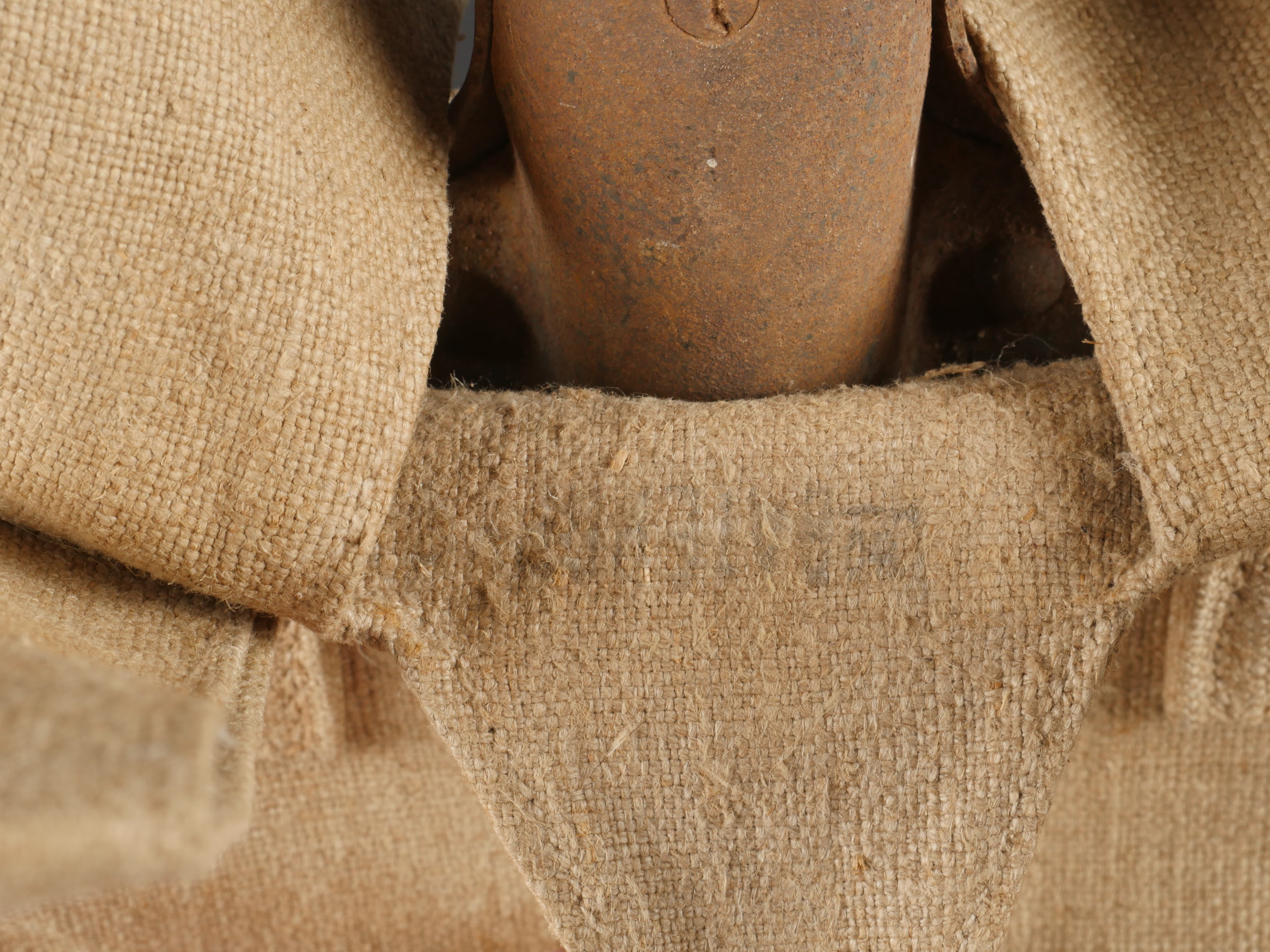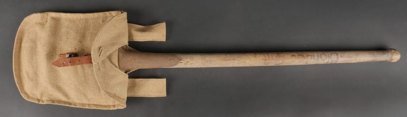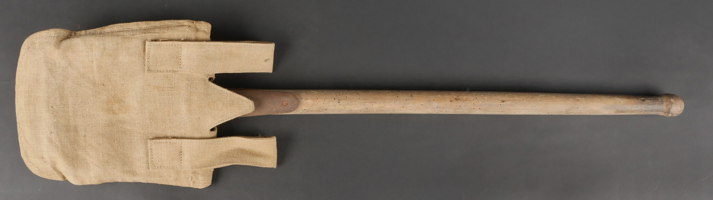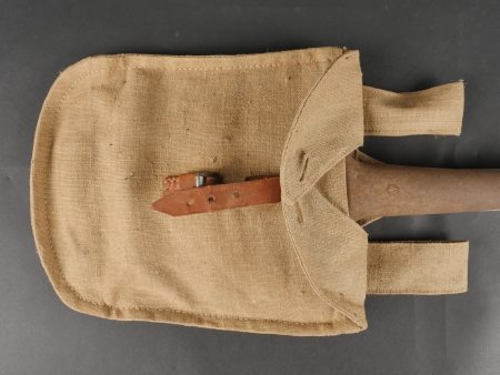 Détails de la vente >Russie housse de pelle en toile. Housse en toile écrue avec plusieurs marquages, avec à l’intérieur une pelle de parc allemande. Authenticité non garantie.