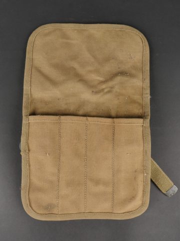 Trousse d’outillage US . Trousse en toile datée 1942 avec 2 clés à mollette, clé plate, clé coudée.