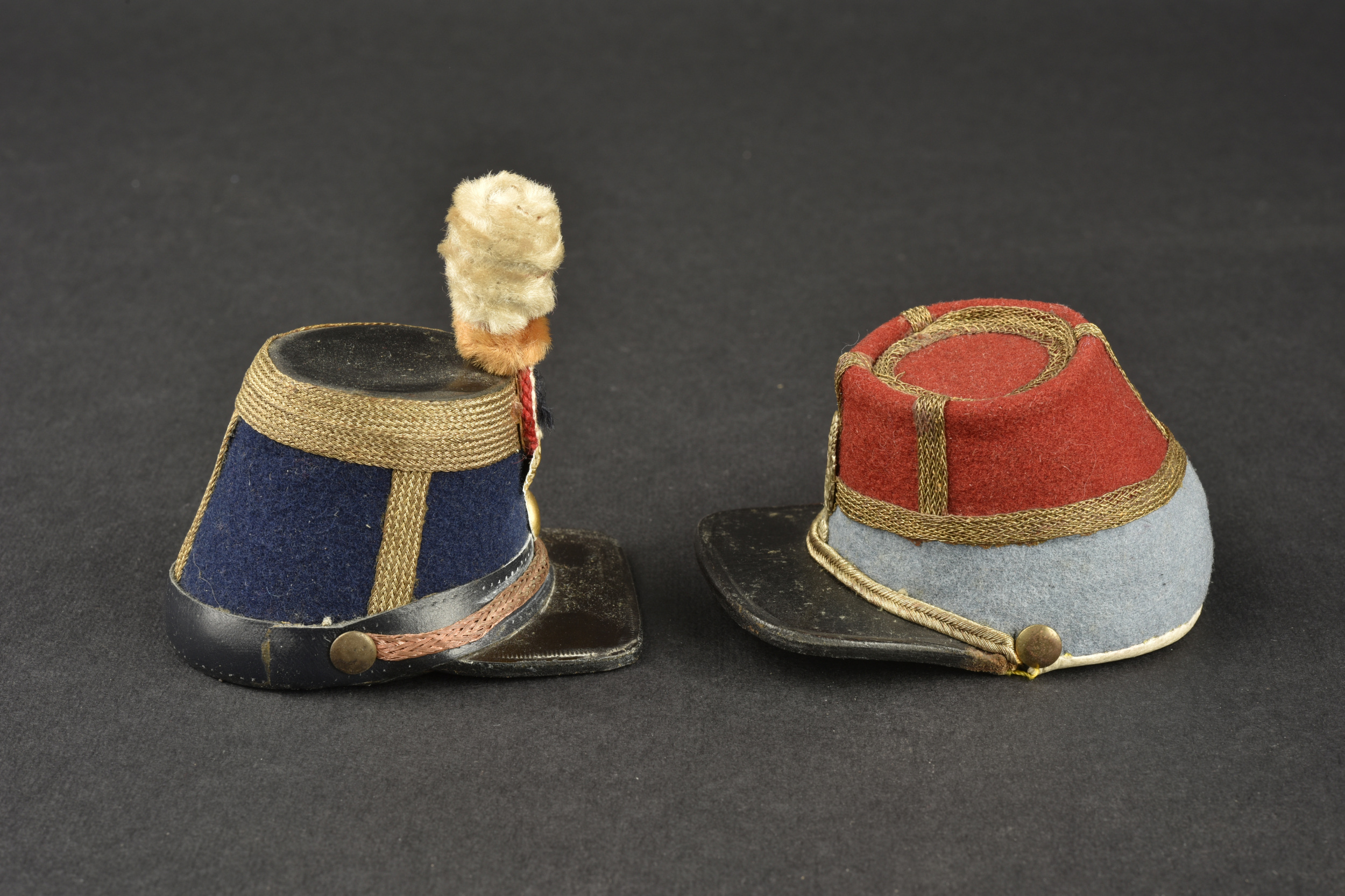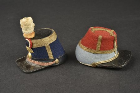 Détails de la vente >2 miniatures de képis. Une miniature de képi d’infanterie Restauration avec plumet. Une miniature de taconnet d’Afrique Saint-Cyr doublure peau de chamois. Toutes deux à visières... en savoir plus