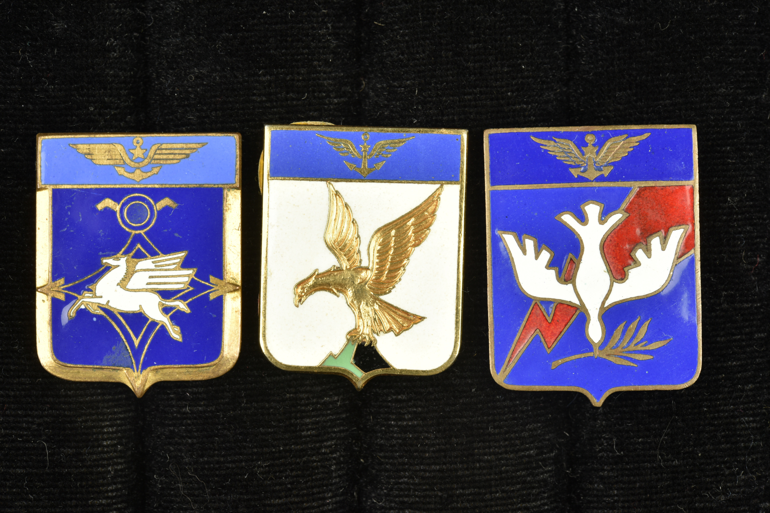 Détails de la vente >Lot de 3 insignes Flotilles Aéronavales. Flotilles 31, 32 et 33. Avec leurs attaches. Bon état