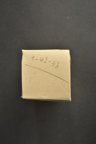 Détails de la vente >Ampoule allemande. Boite en carton complète, portant le marquage manuscrit 1-02-43. Ampoule complète, marquée EBC 3 KLF HW 560. Bel aigle Waa surmontant la lettre M de la marine, avec marquage... en savoir plus