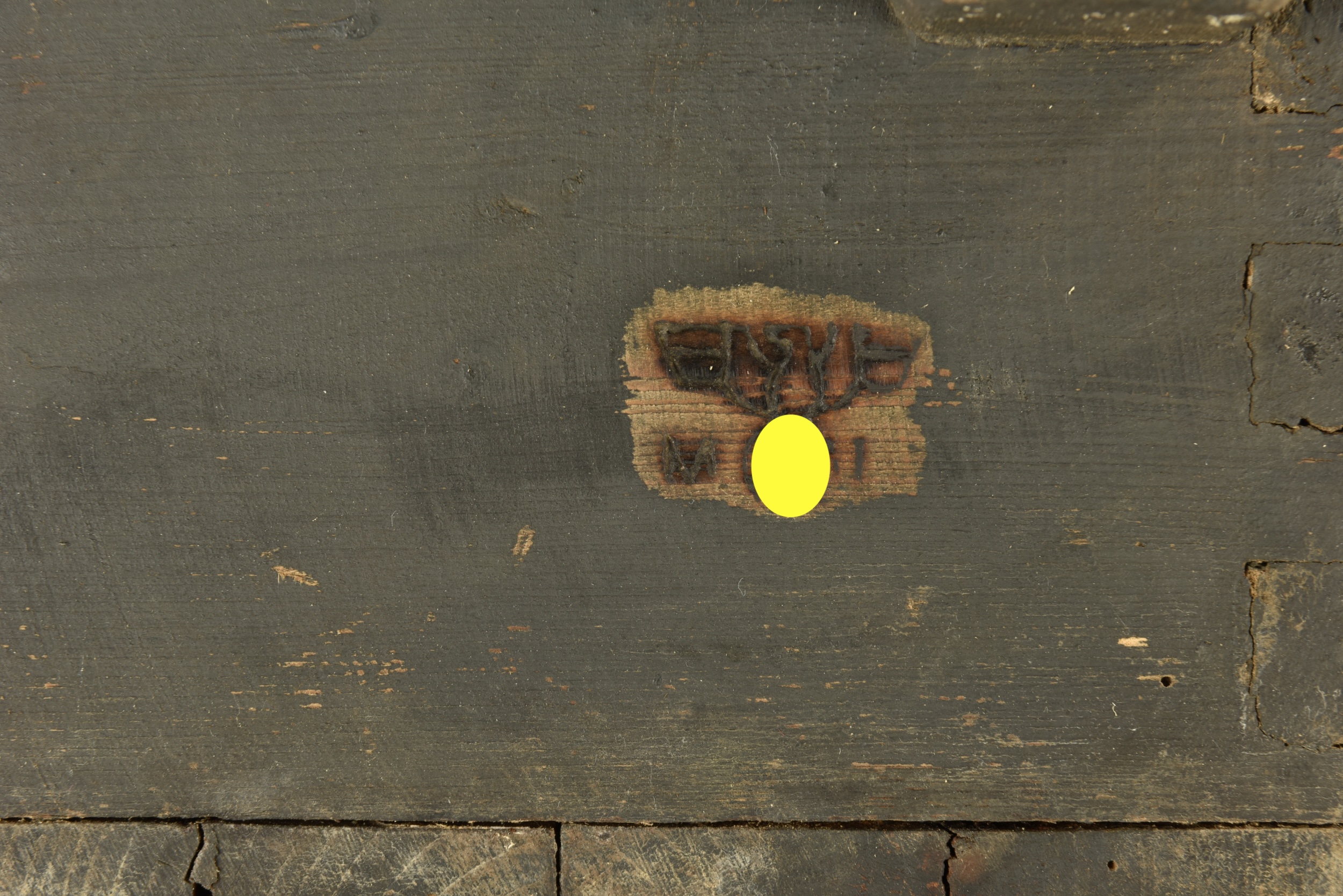 Détails de la vente >Caisse Kriegsmarine. En bois, nombreux manques et trous de vers. Couvercle complet marqué Marine Munition avec un beau marquage de la Kriegsmarine. Peinture extérieure à 70%. Poignées en bois.... en savoir plus
