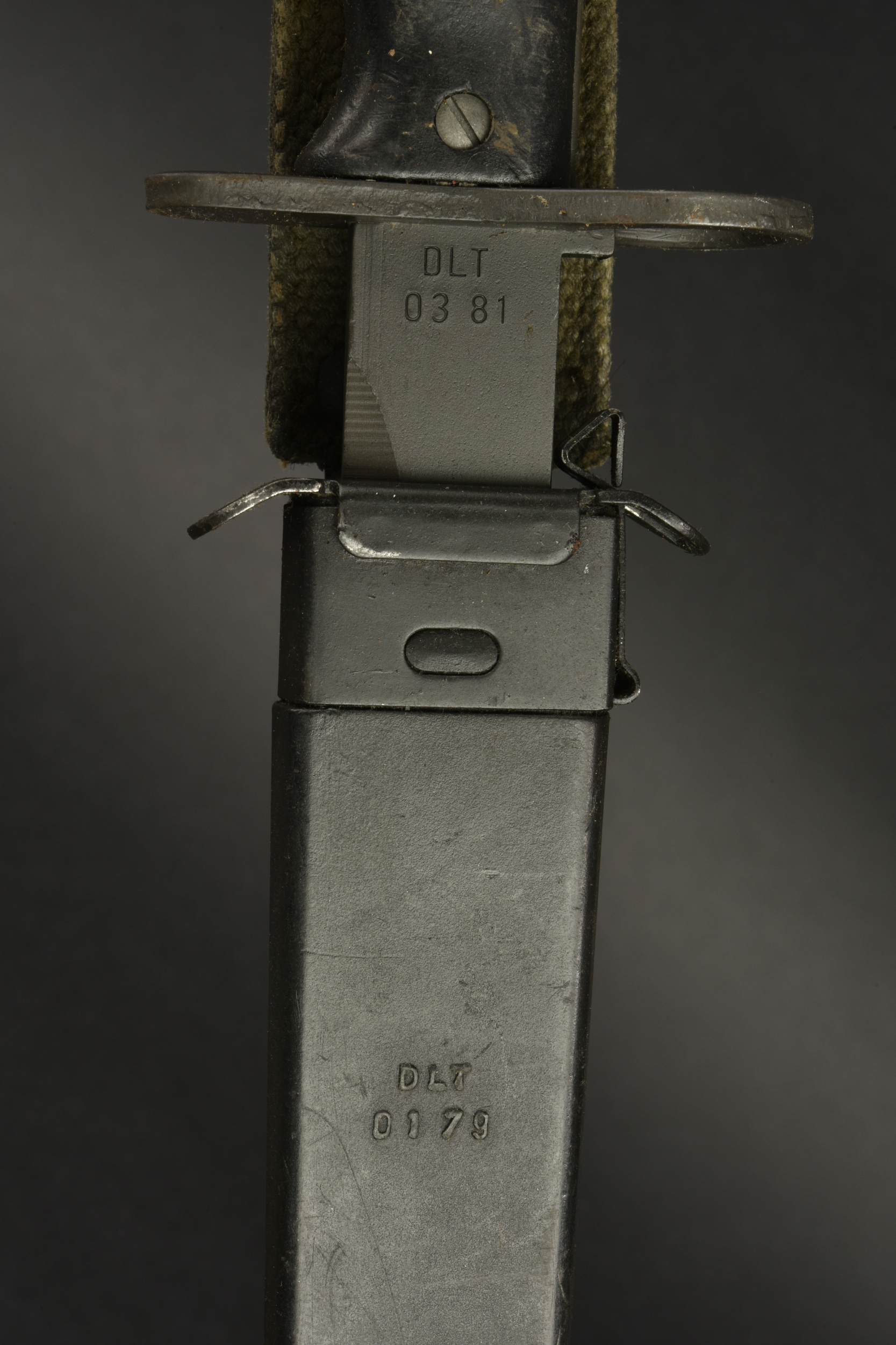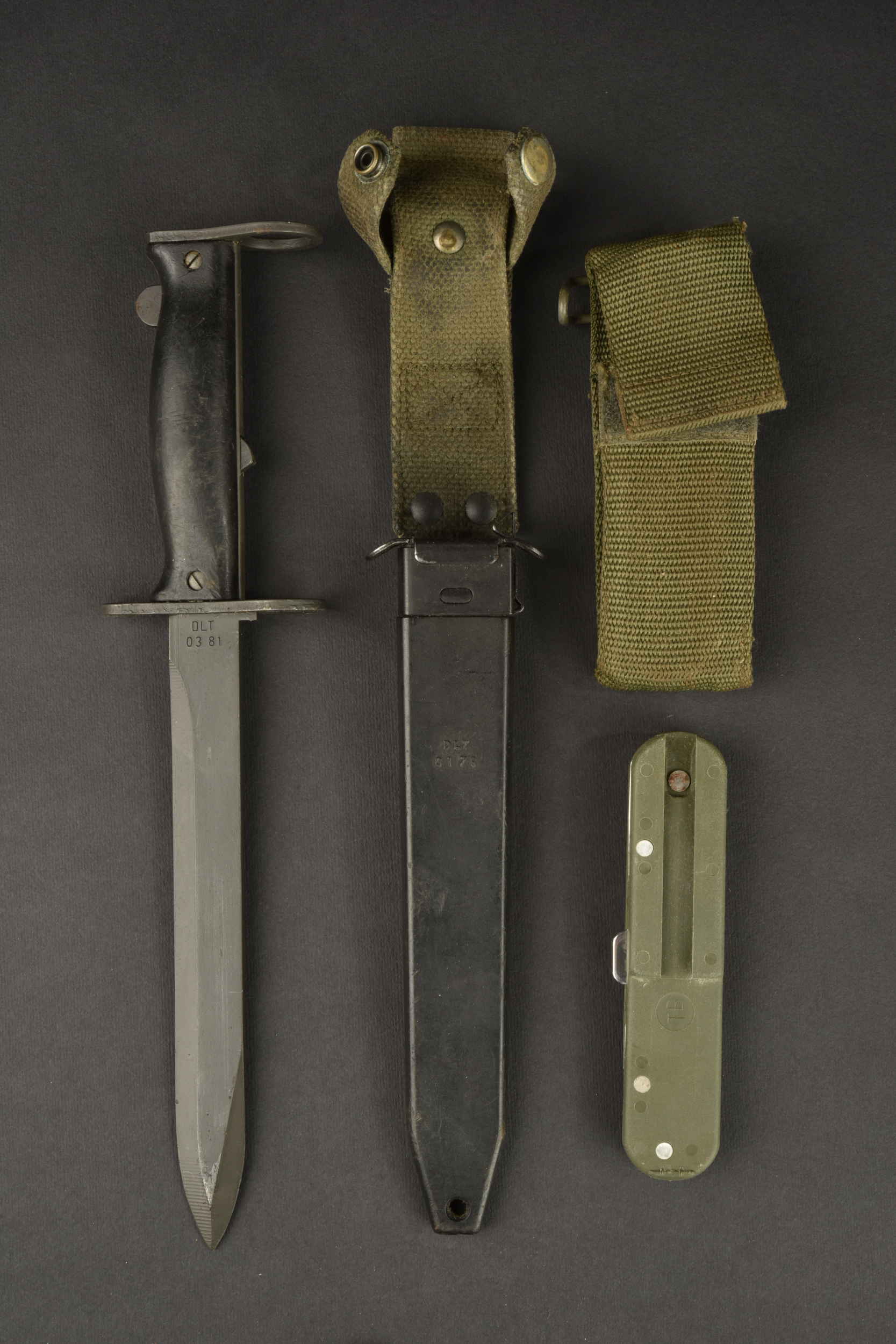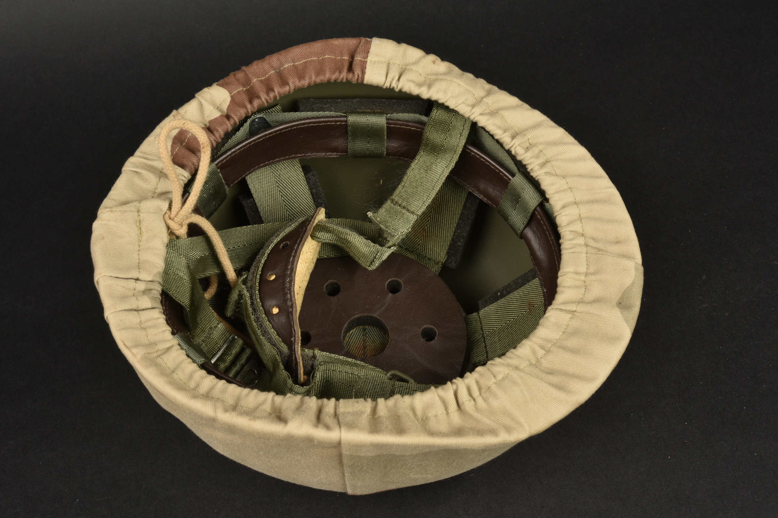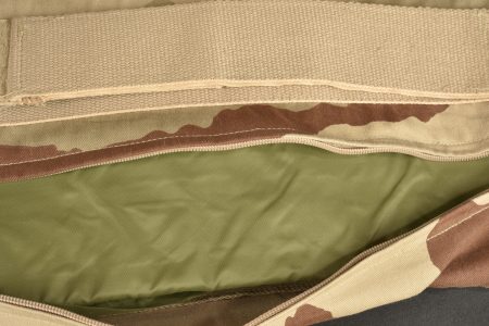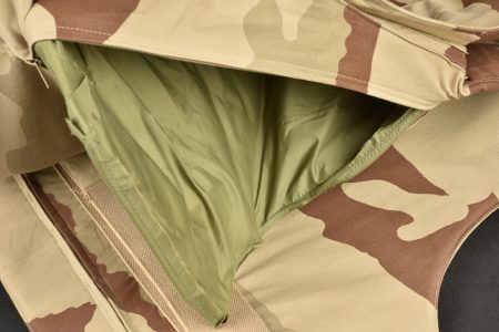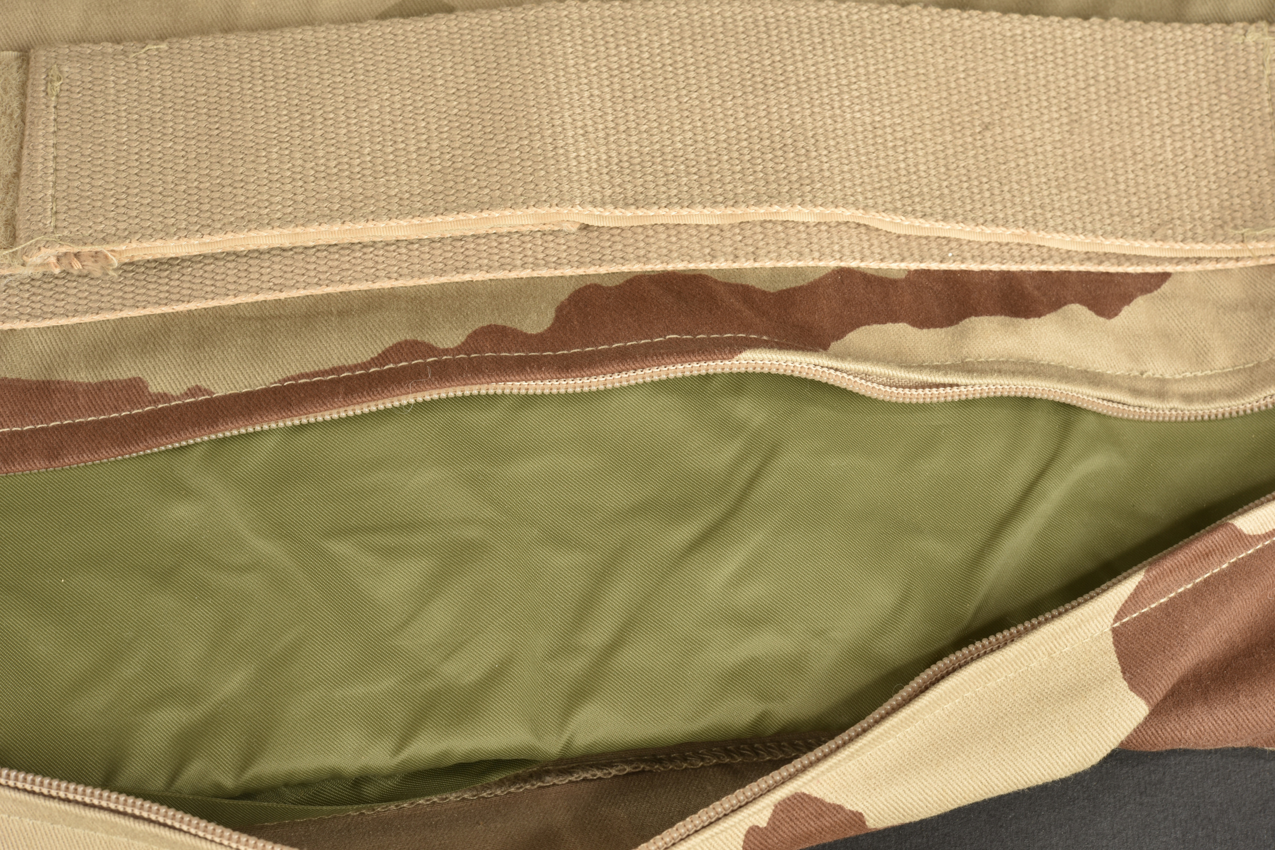 Casque français F1 et gilet pare éclats camouflage désert, lunettes et baïonnette Famas