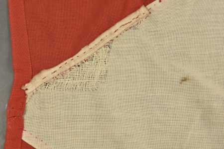 Drapeau des Forces navales de la France Libre. En tissu coton. Fabrication en plusieurs parties. Double face. Le cordon de fixation est présent, un morceau est réparé avec du scotch. Marquages... en savoir plus