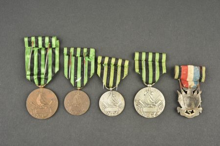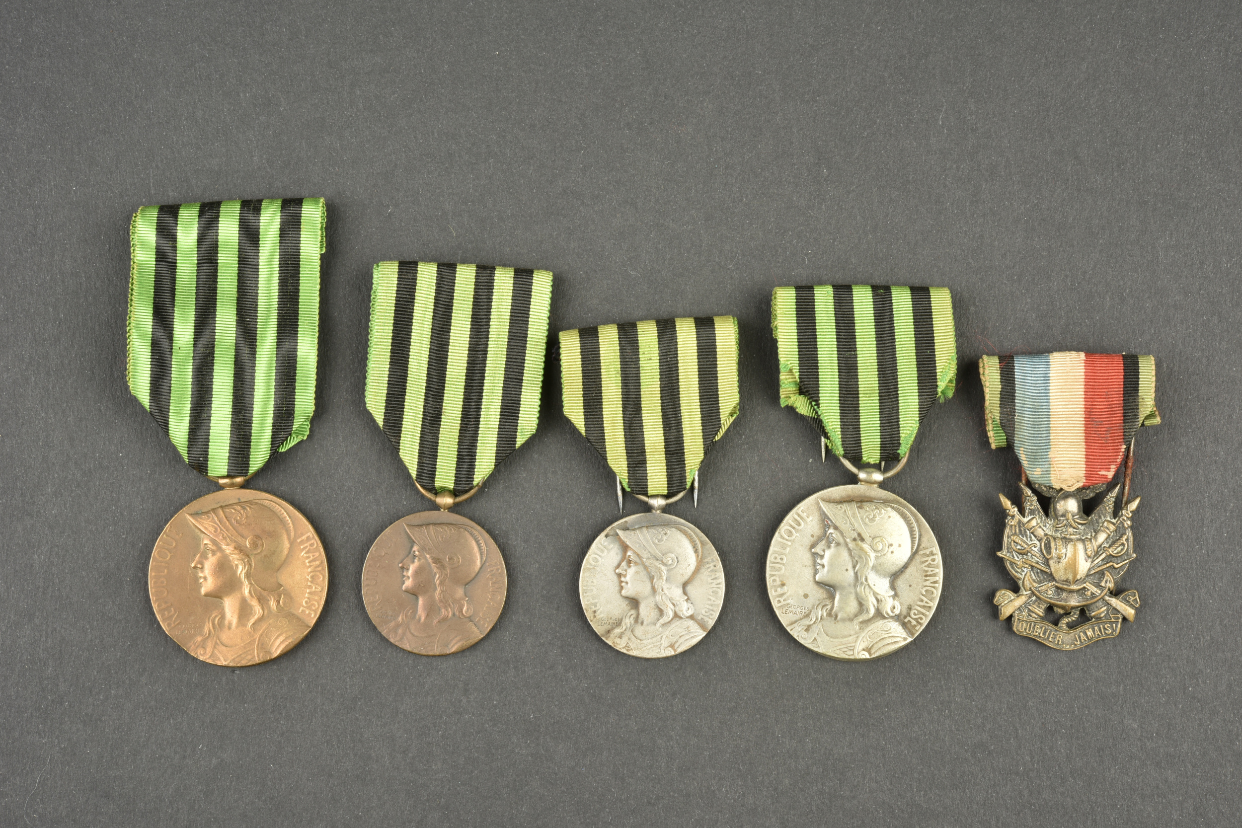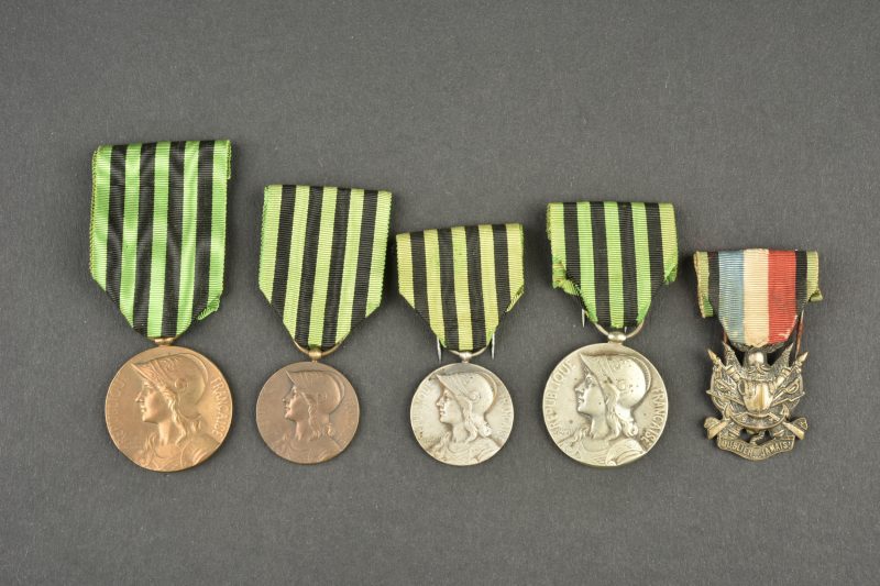 Ensemble de 5 médailles commémoratives Guerre 1870-1871. Comprenant 4 médailles commémoratives dont 2 petit module et 2 grand module, à chaque fois l’une en bronze l’autre en bronze argenté. On y joint une médaille d’ancien combattant de 1870. Avec leurs rubans et attaches