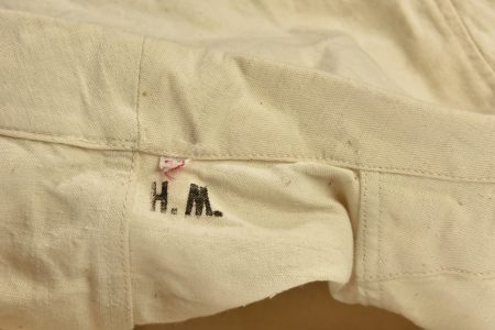 Ensemble d’infirmier. Comprenant sa coiffe avec l’insigne peint, un tablier en coton écru portant les initiales MV, sa blouse des hôpitaux militaires en toile écrue et un brassard... en savoir plus