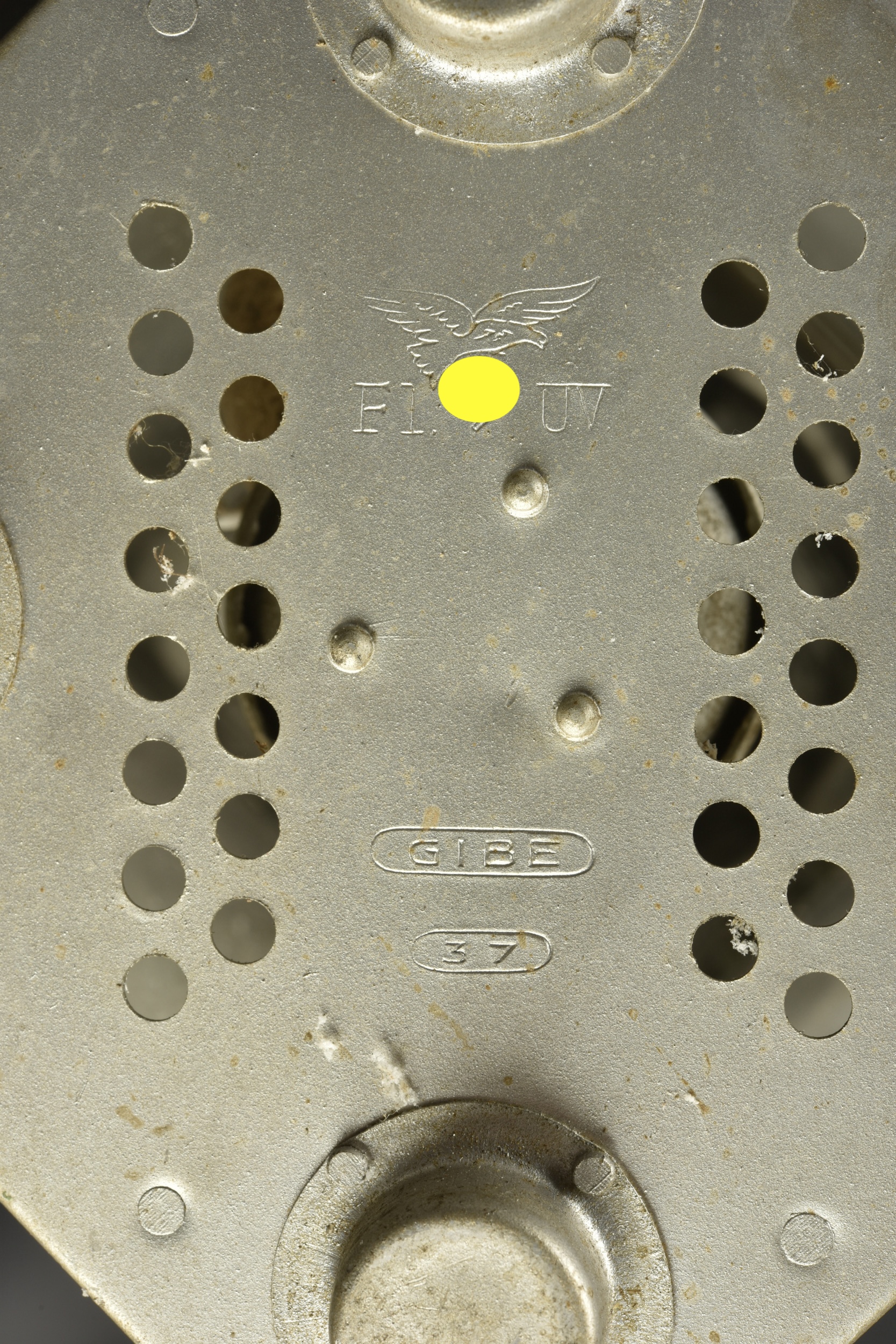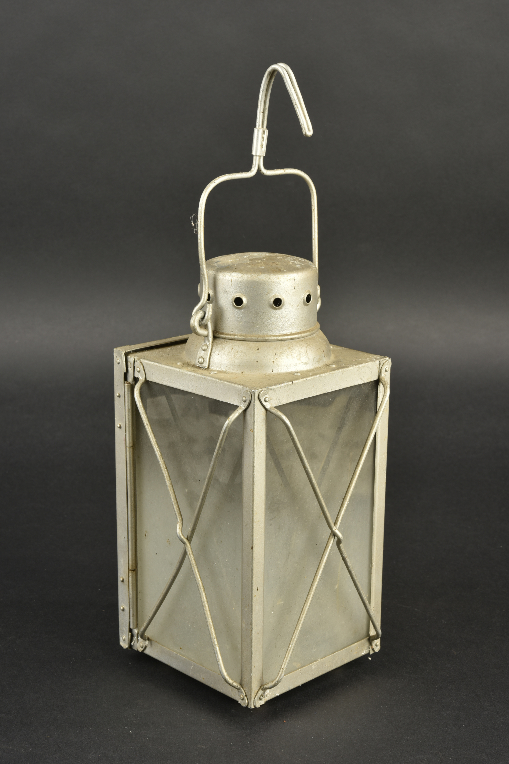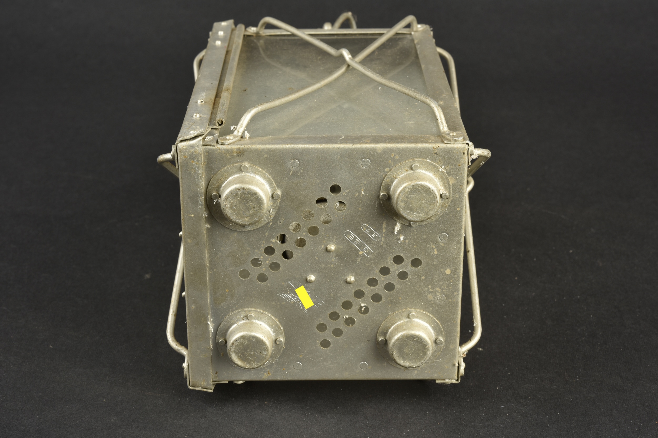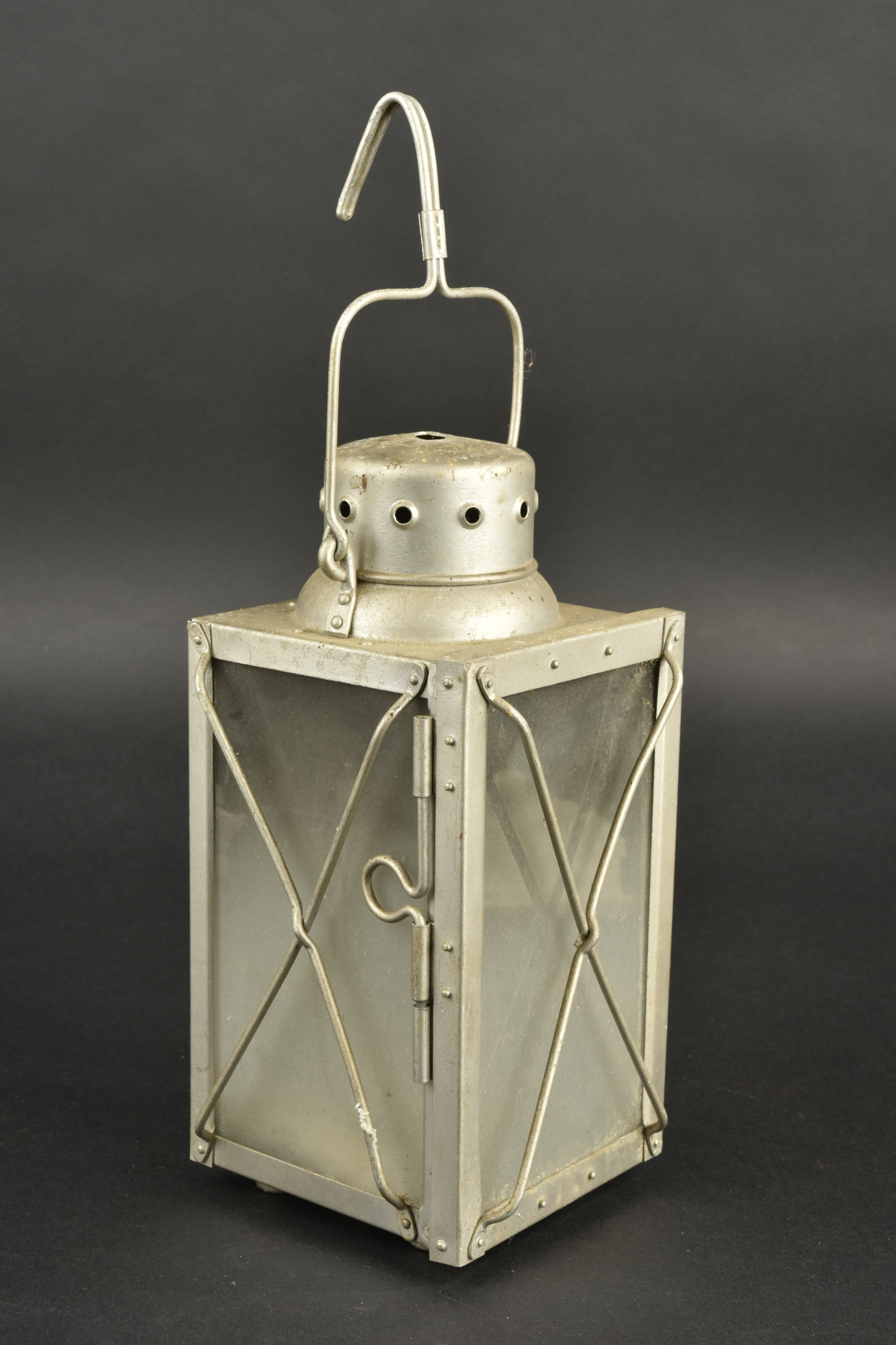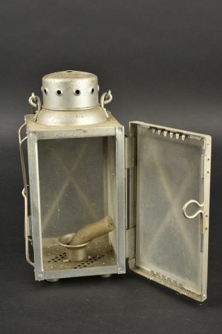 Détails de la vente >Lanterne allemande. En aluminium, les verres sont en très bon état, opaque. Le crochet est également complet. Beaux marquages de la Luftwaffe, datés 1937. A noter une certaine usure et patine... en savoir plus
