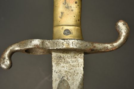 Détails de la vente >Lot de 2 baïonnettes allemandes M1871. Poignées laiton moulées. L’une avec marquage sur la croisière du 105e Régiment d’Infanterie saxon. L’autre repeinte avec peinture... en savoir plus