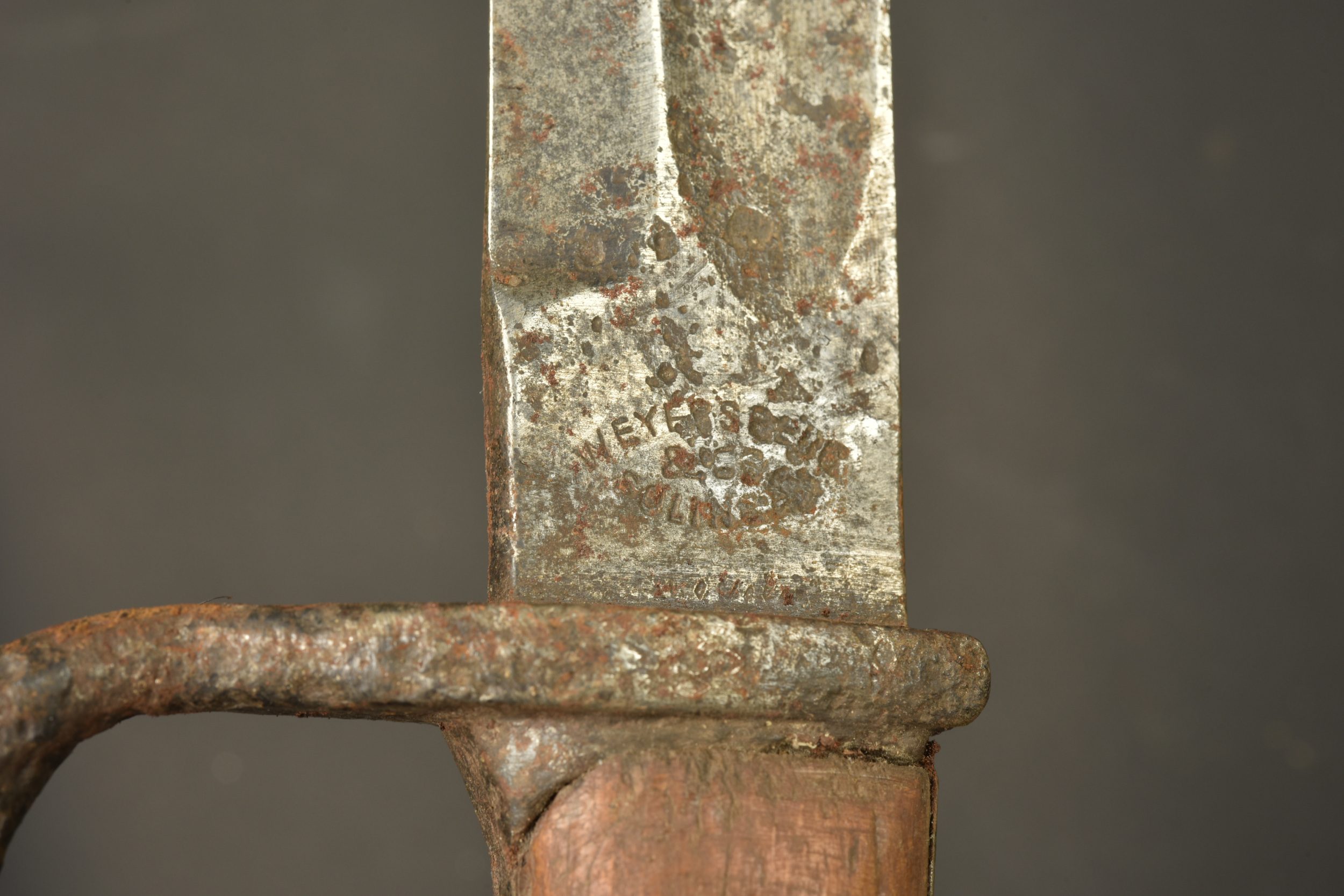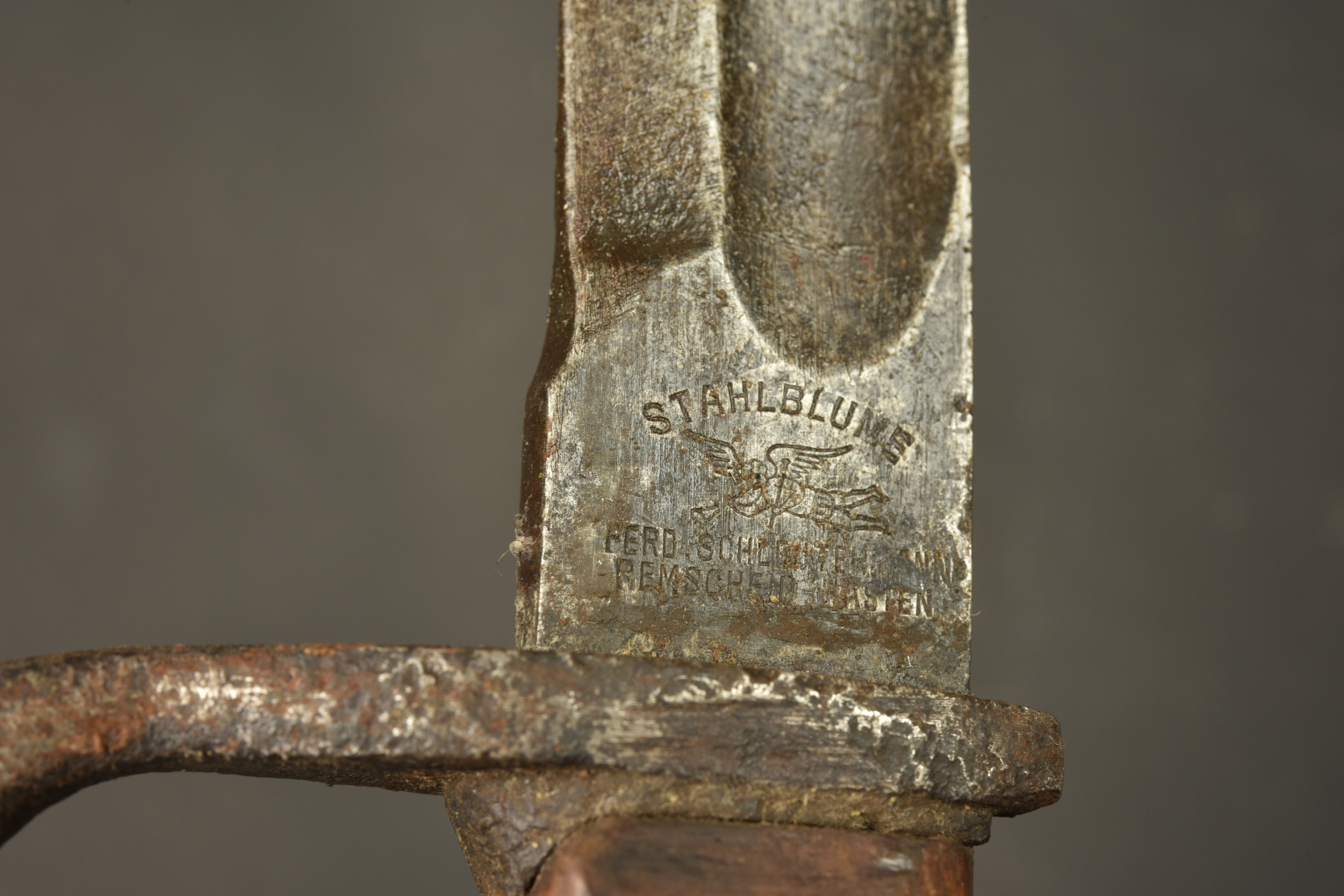Détails de la vente >Lot de 5 baïonnettes allemandes 98-05. Une avec ses plaquettes, lame oxydée, son fourreau oxydé et un porte fourreau cuir, abimé. Une avec plaquettes artisanales postérieures, avec fourreau.... en savoir plus