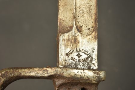 Lot de 5 baïonnettes allemandes 98-05. Une avec ses plaquettes, lame oxydée, son fourreau oxydé et un porte fourreau cuir, abimé. Une avec plaquettes artisanales postérieures, avec fourreau.... en savoir plus