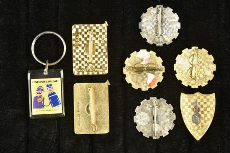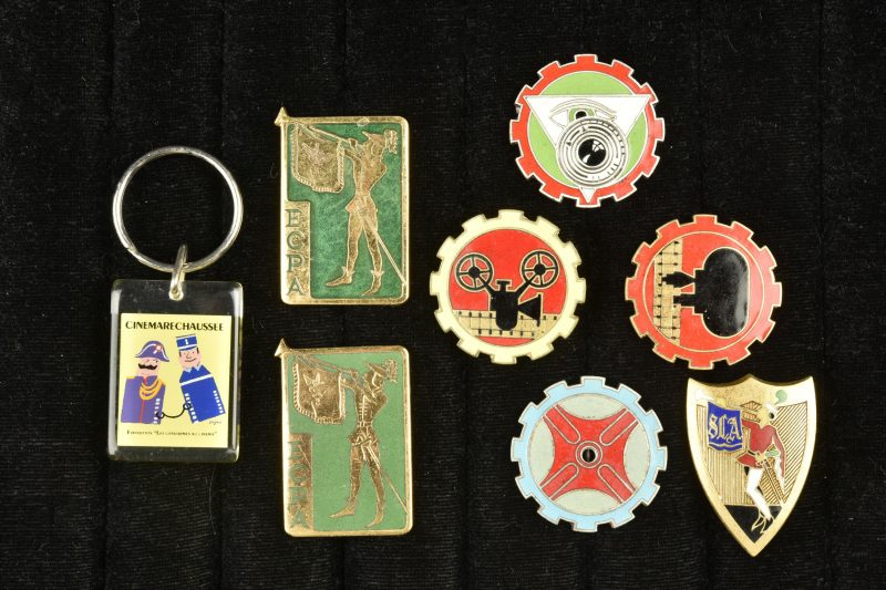 Lot de 7 insignes Services Cinématographique et Photographiques des Armées. Un insigne SCA sans attache, 2 insignes ECPA. Insignes de spécialités Dépanneur, Opérateur, Caméraman, Photographe. En bon état avec leurs attaches. On y joint un porte clés CinéMaréchaussée