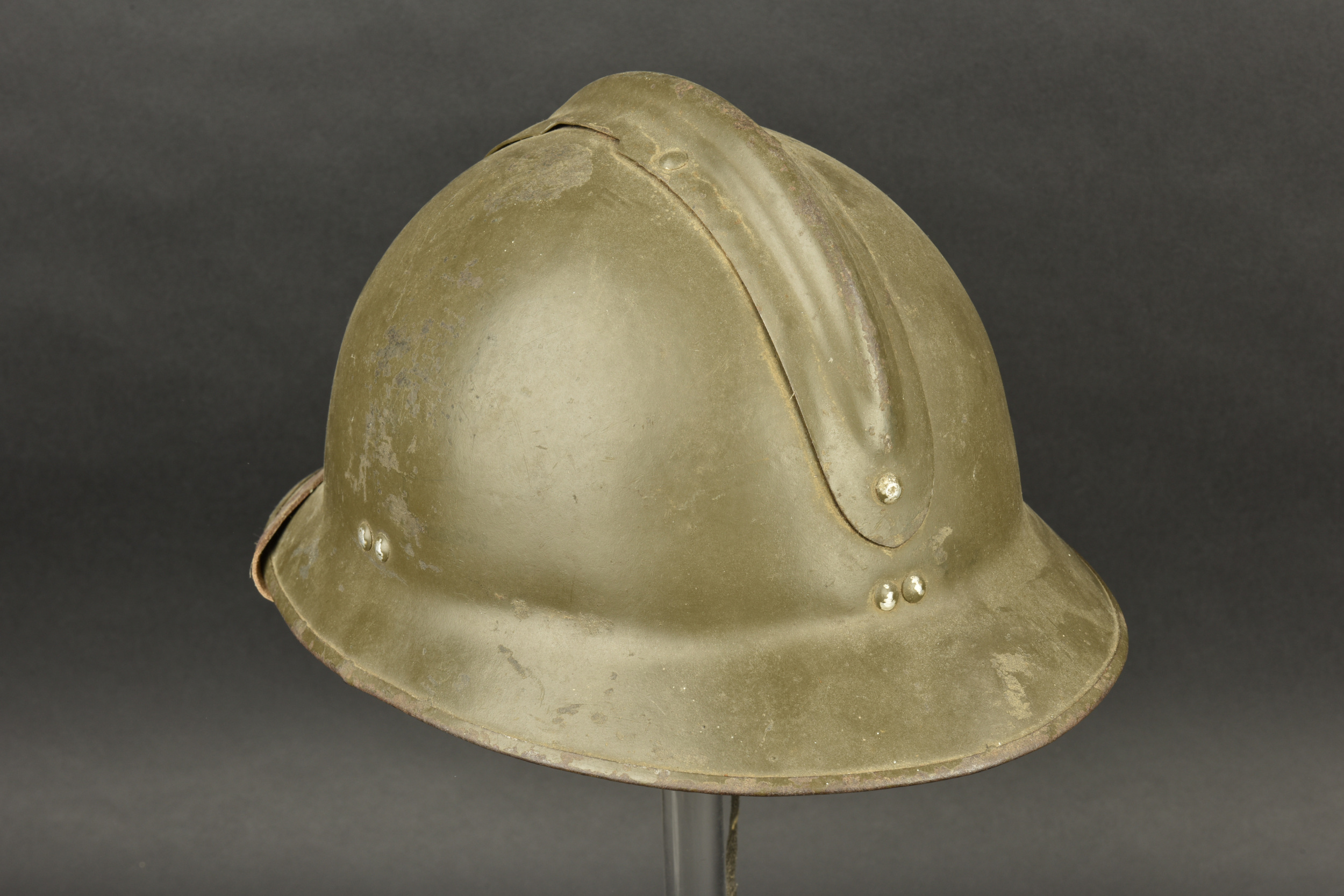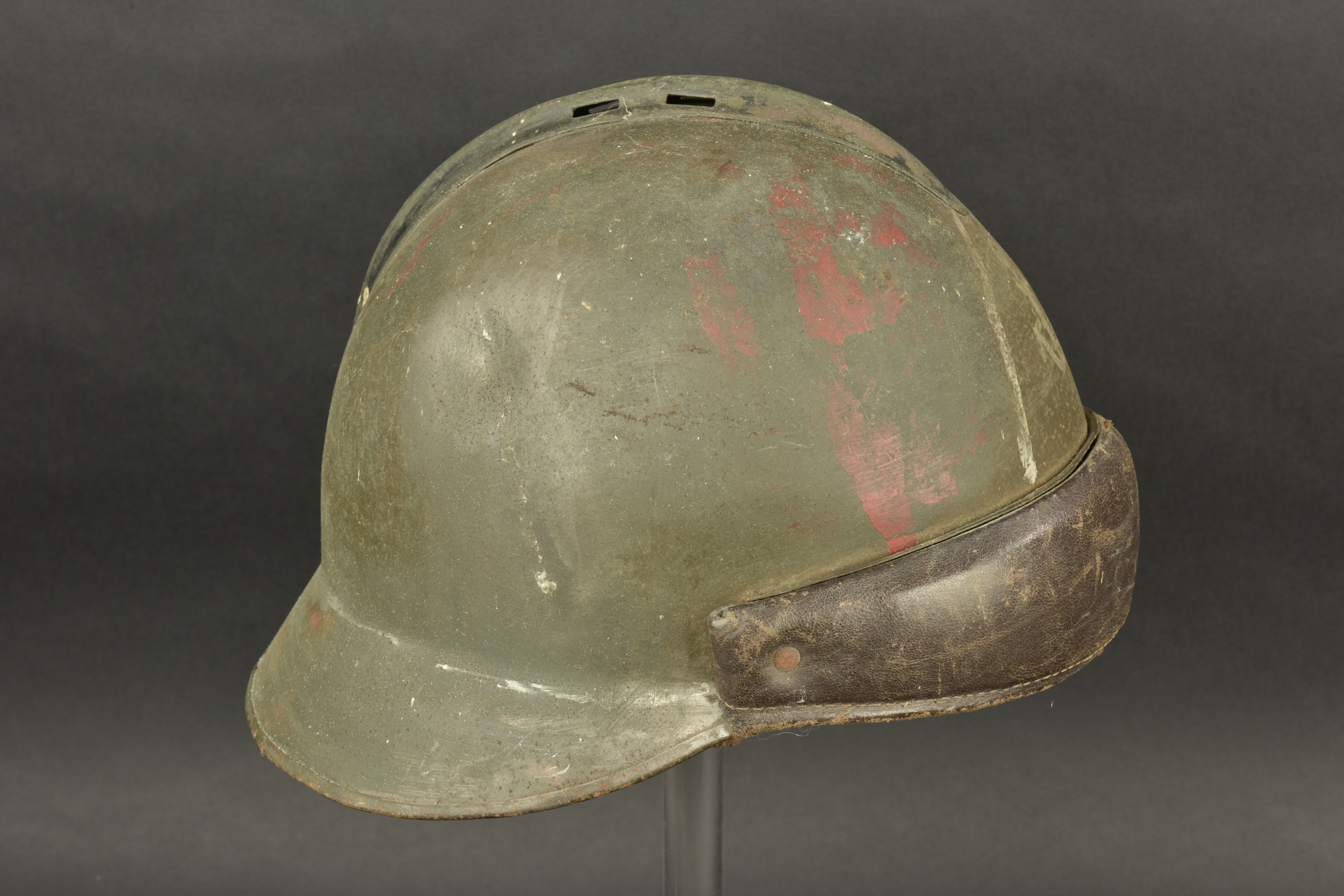 Détails de la vente >Lot de casques. Comprenant un casque modèle 1945 Jeanne d’Arc en peinture kaki d’origine, insigne frontal de l’infanterie coloniale peint surmonté d’un arc de cercle.... en savoir plus