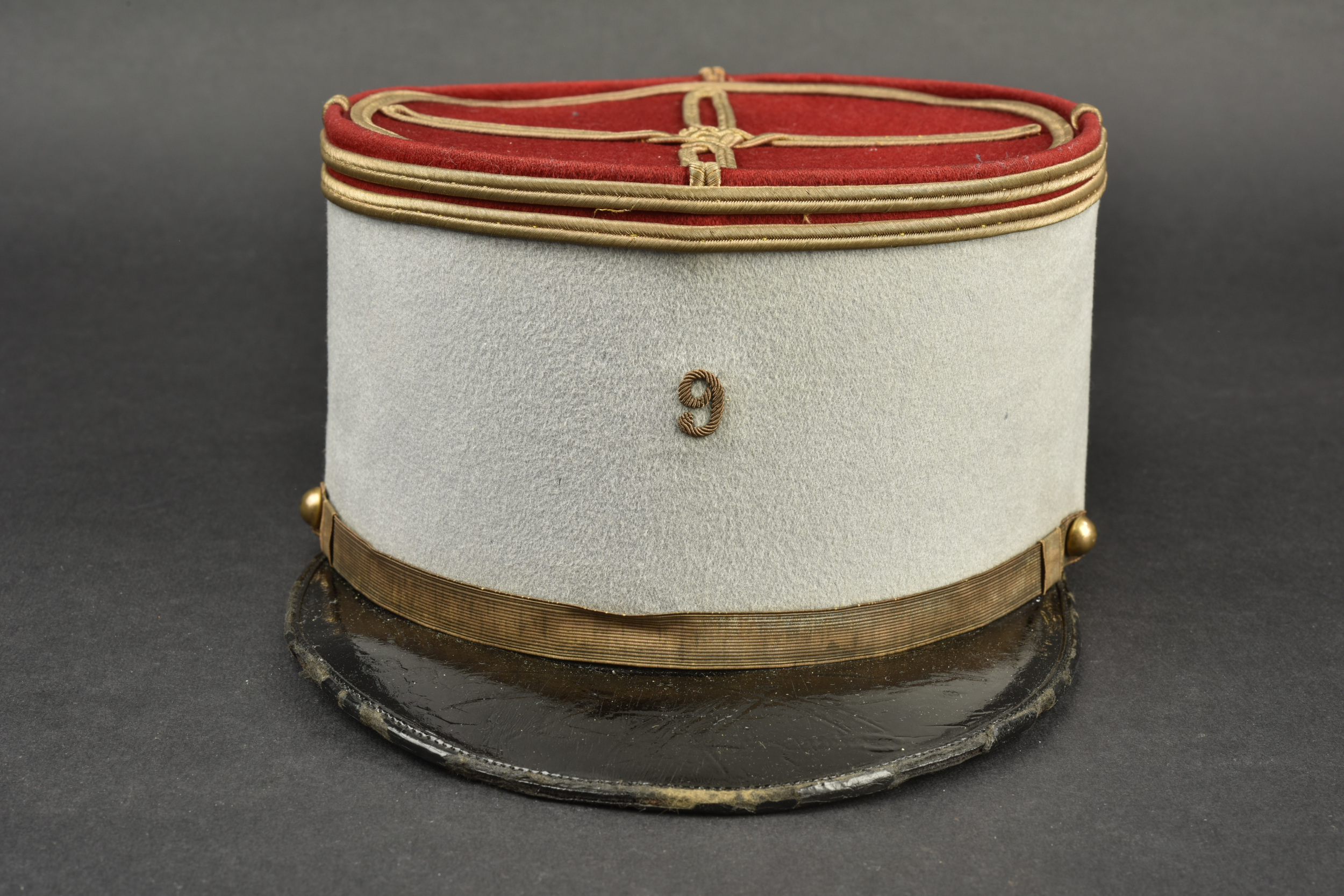 Détails de la vente >Lot divers. Comprenant un képi modèle 1935 du 9ème tirailleur ou spahis algérien, plateau rouge en drap garance, grades de lieutenant, chiffre 9 brodé cannetille, boutons dorés lisses... en savoir plus