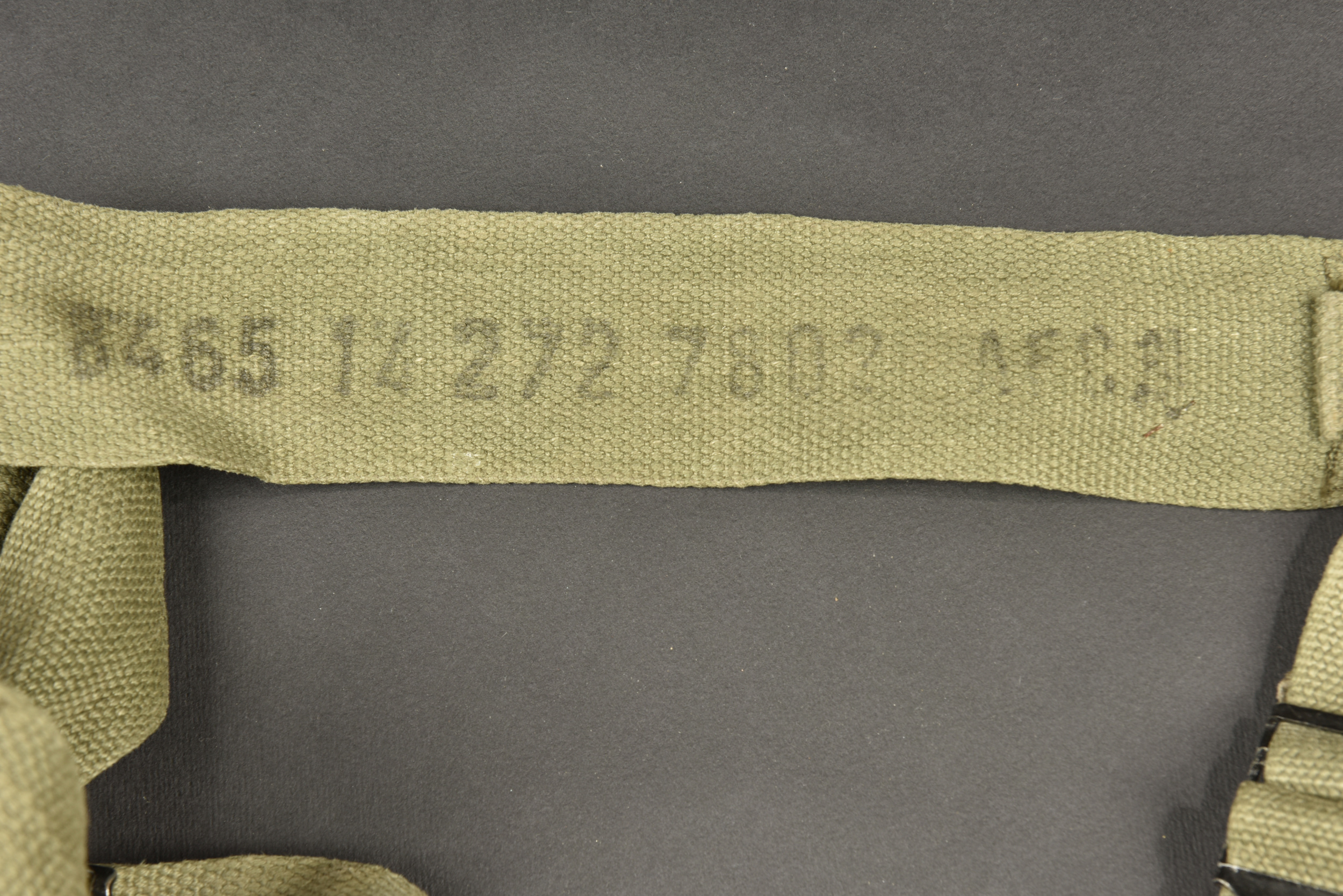 Lot TAP. Comprenant un foulard camouflé. Un brelage TAP 50/53. Un ceinturon TAP 53 Rapco. Une paire de cartouchières MAS 36 TAP modèle 50/51. Un pantalon 47/59 TTA camouflé. Une parka de... en savoir plus