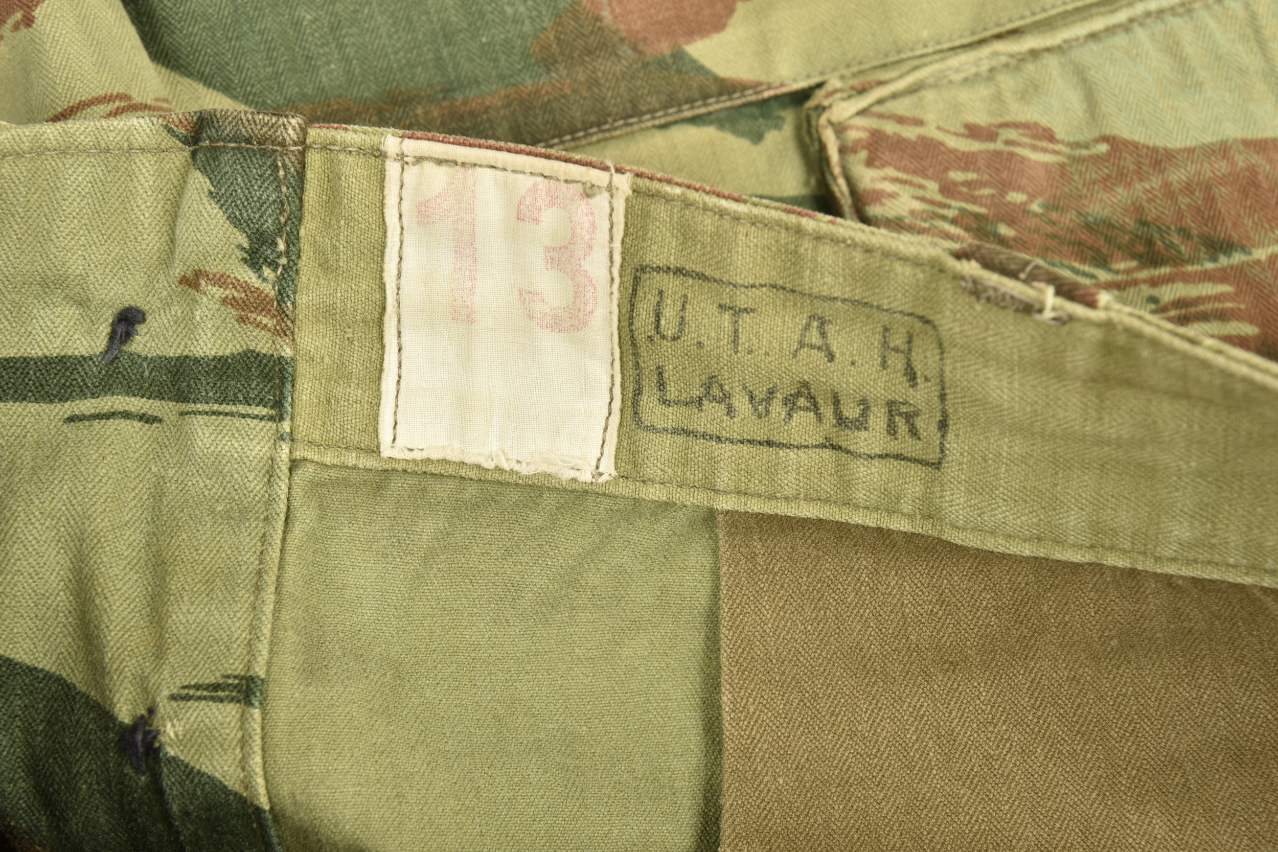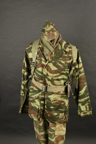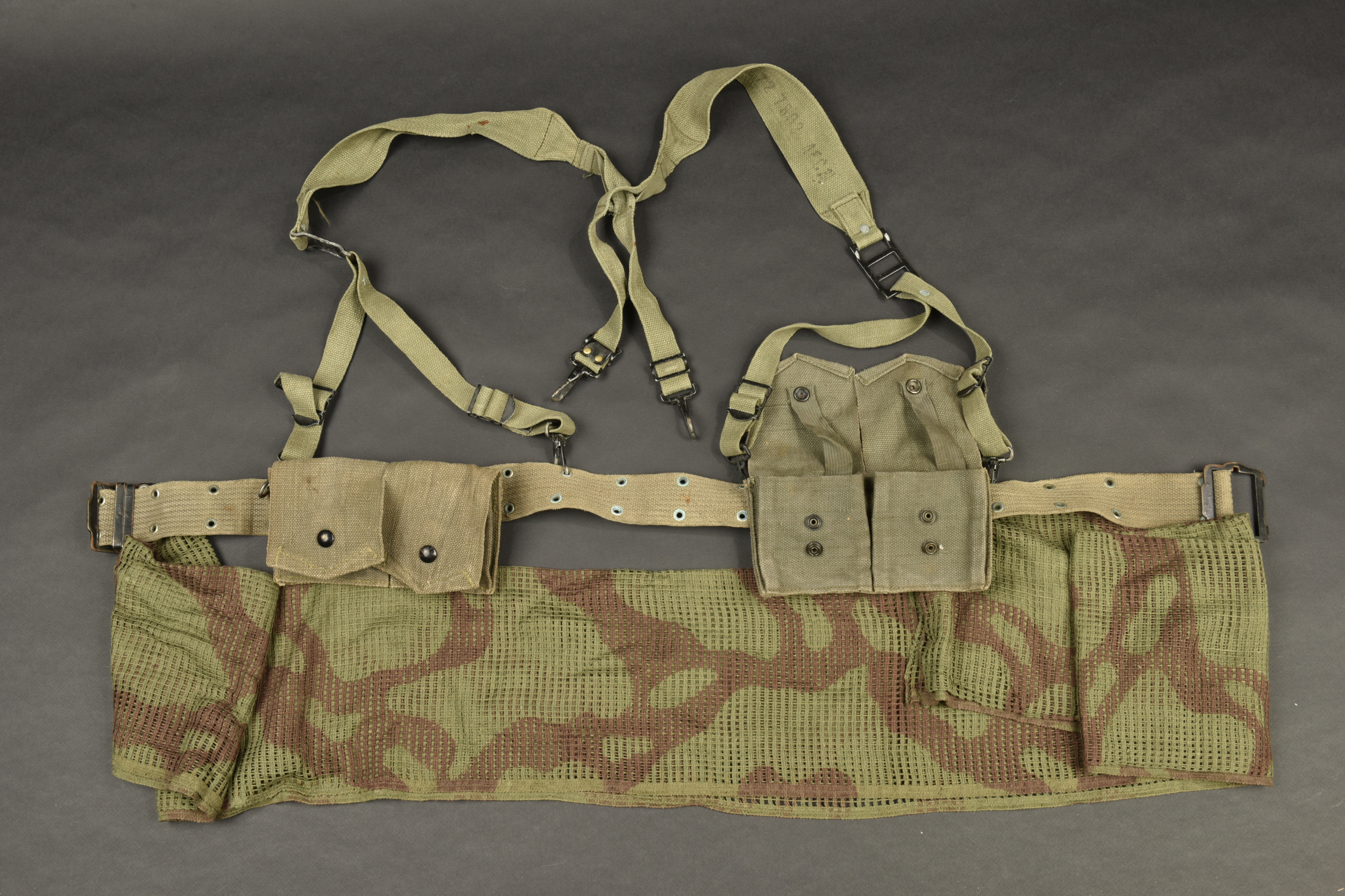 Détails de la vente >Lot TAP. Comprenant un foulard camouflé. Un brelage TAP 50/53. Un ceinturon TAP 53 Rapco. Une paire de cartouchières MAS 36 TAP modèle 50/51. Un pantalon 47/59 TTA camouflé. Une parka de... en savoir plus
