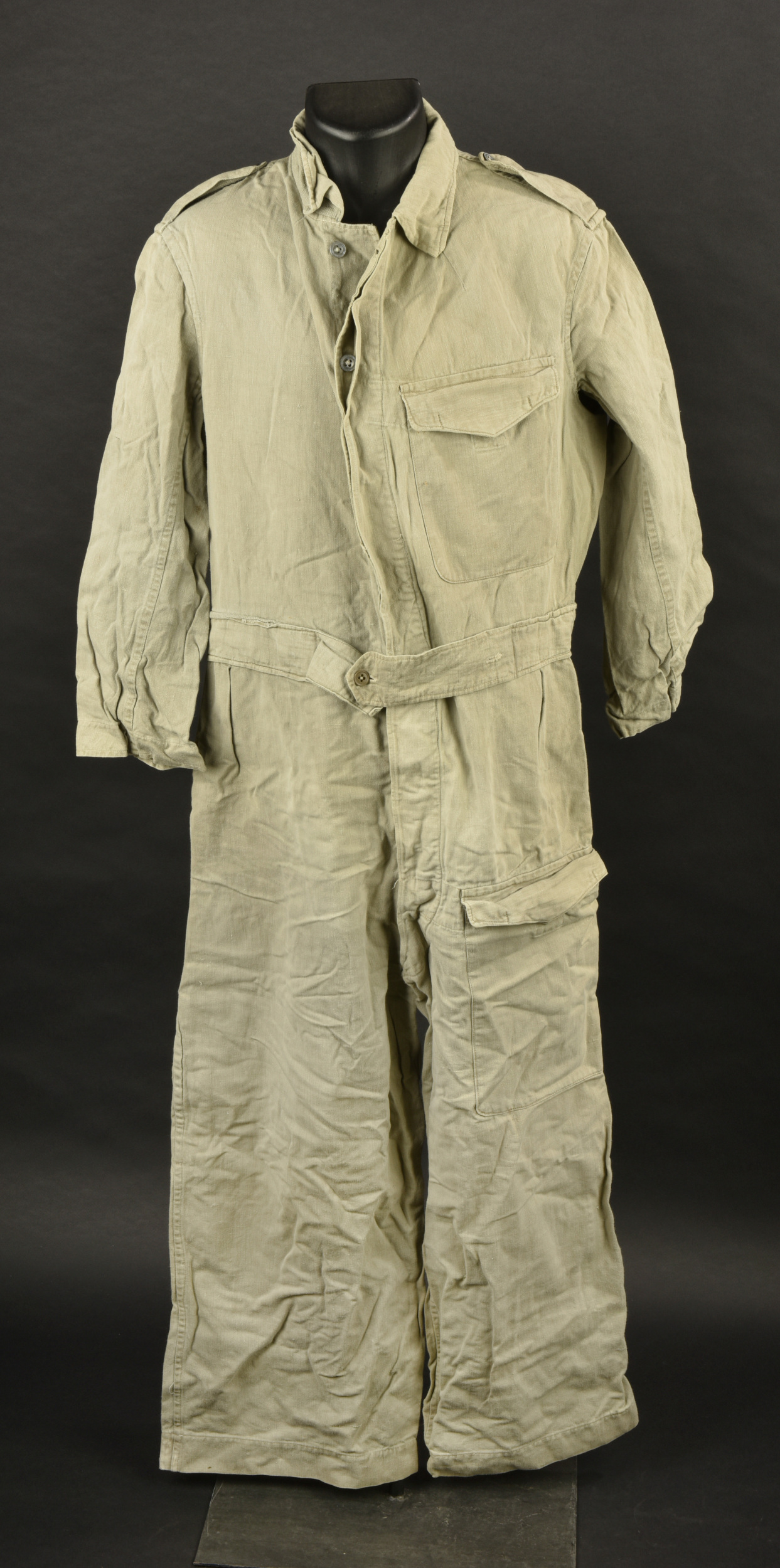 Lot uniformes Extrême Orient. Comprenant une combinaison britannique en tissu kaki datée 1945, deux boutons absents. Ce type de combinaison fut notamment porté par le commando Ponchardier. Un... en savoir plus