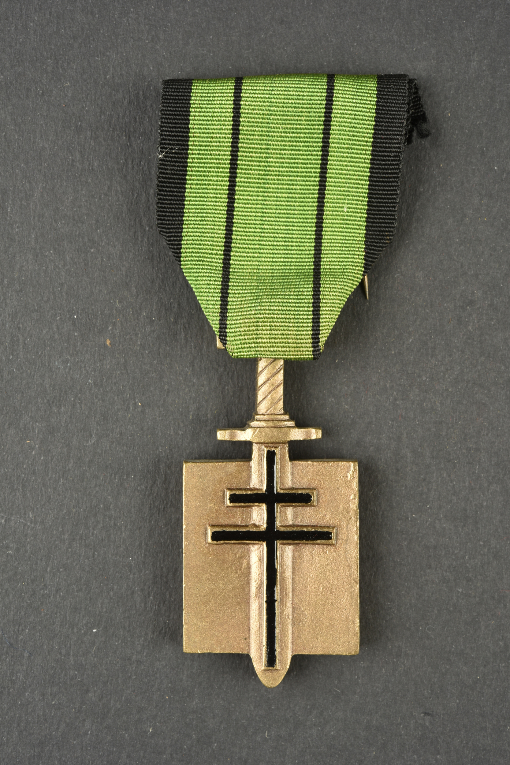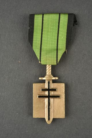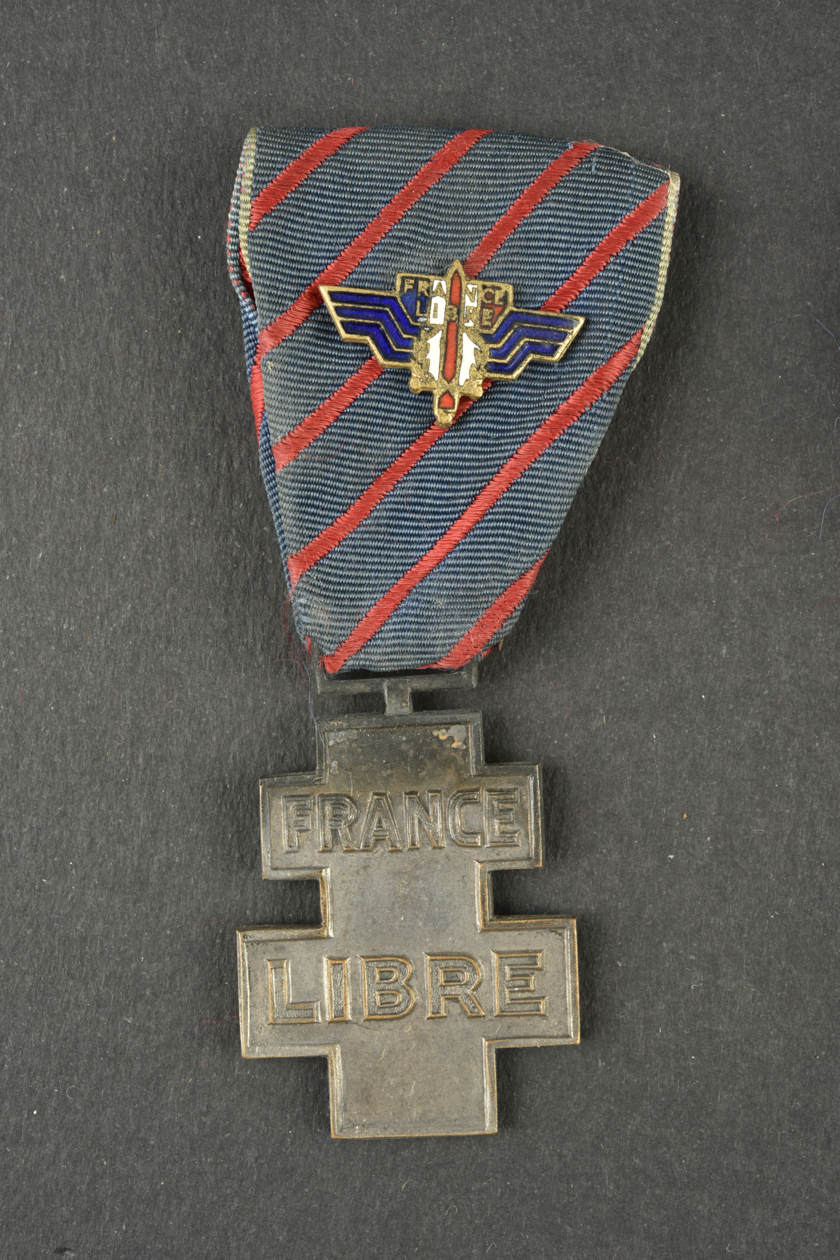 Détails de la vente >Médaille de la France Libre et Ordre de la Libération. Médaille de la France Libre avec miniature de l’insigne sur le ruban, une seconde marquée Corne d’Abondance, une reproduction... en savoir plus