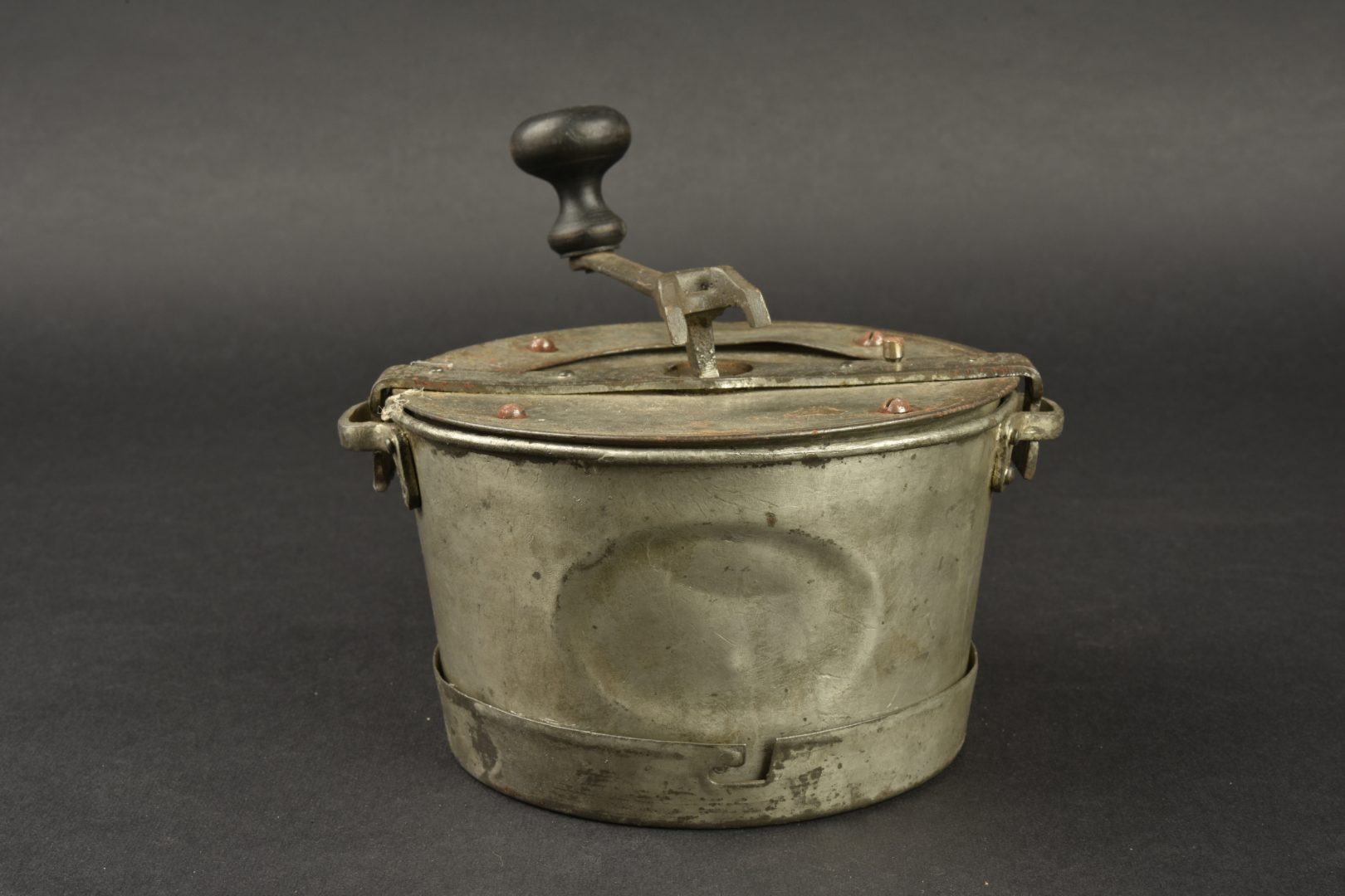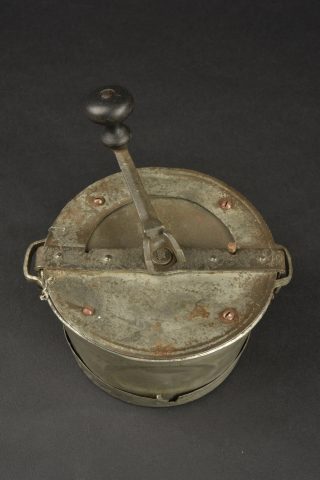 Détails de la vente >Moulin à café Klepper. Moulin à café de Poilu, avec son tamis, son plat inférieur, sa manivelle. Têton d’ouverture du clapet remplacé. Bon état