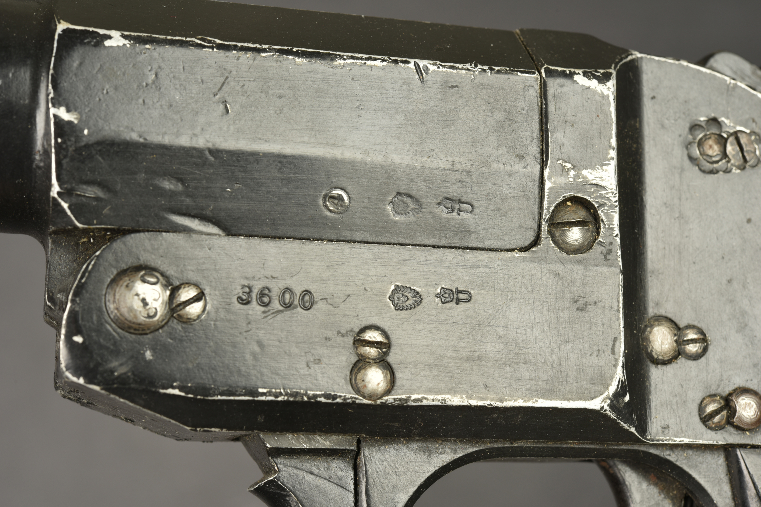Pistolet lance fusées 1001 de la NVA. Peu courant Signalpistole 1001 de l’ex-Allemagne de l’Est, conception basée sur le Modell 1928. En aluminium peint en noir. Marqué 1001 sur le côté droit. Côté gauche numéro de série 3600 et poinçons de réception. Usure d’usage Mécanisme fonctionnel. Détention et acquisition libre à personne majeure.
