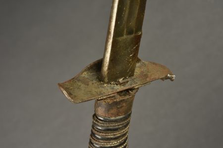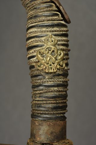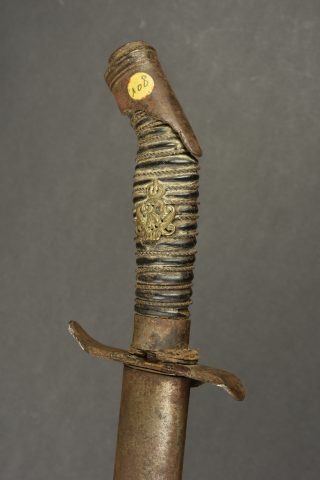 Poignard artisanal sur base d’un sabre d’officier allemand. Poignée et lame d’un sabre d’officier prussien IOD 1889 fabrication de guerre en fer, avec monogramme WRII sur... en savoir plus