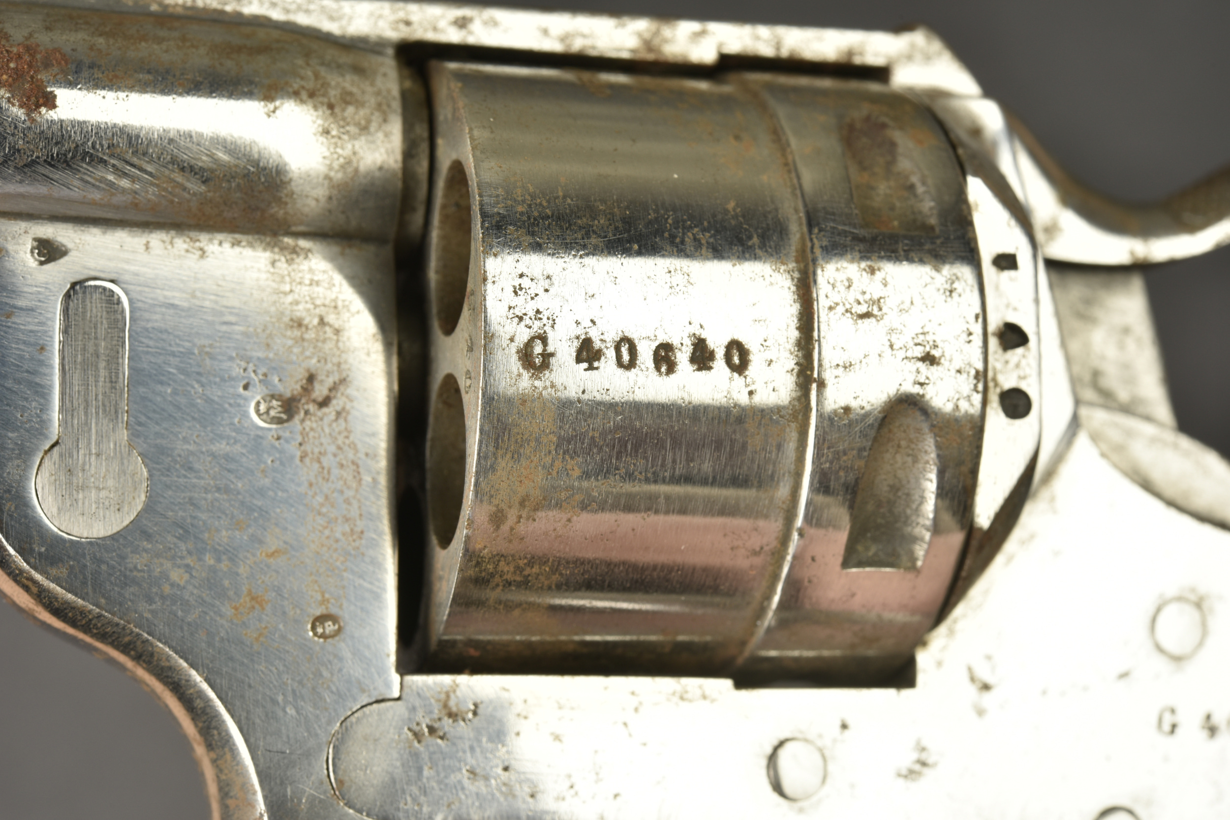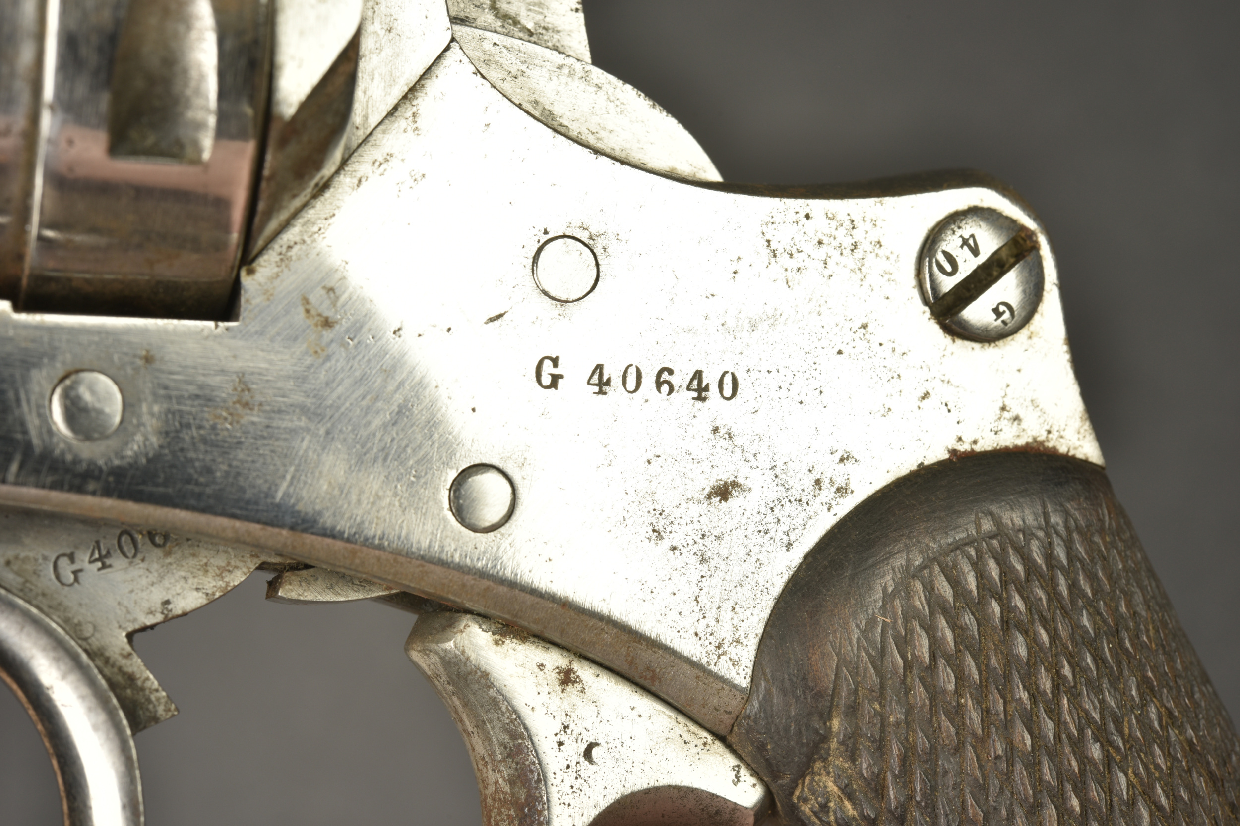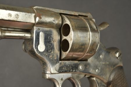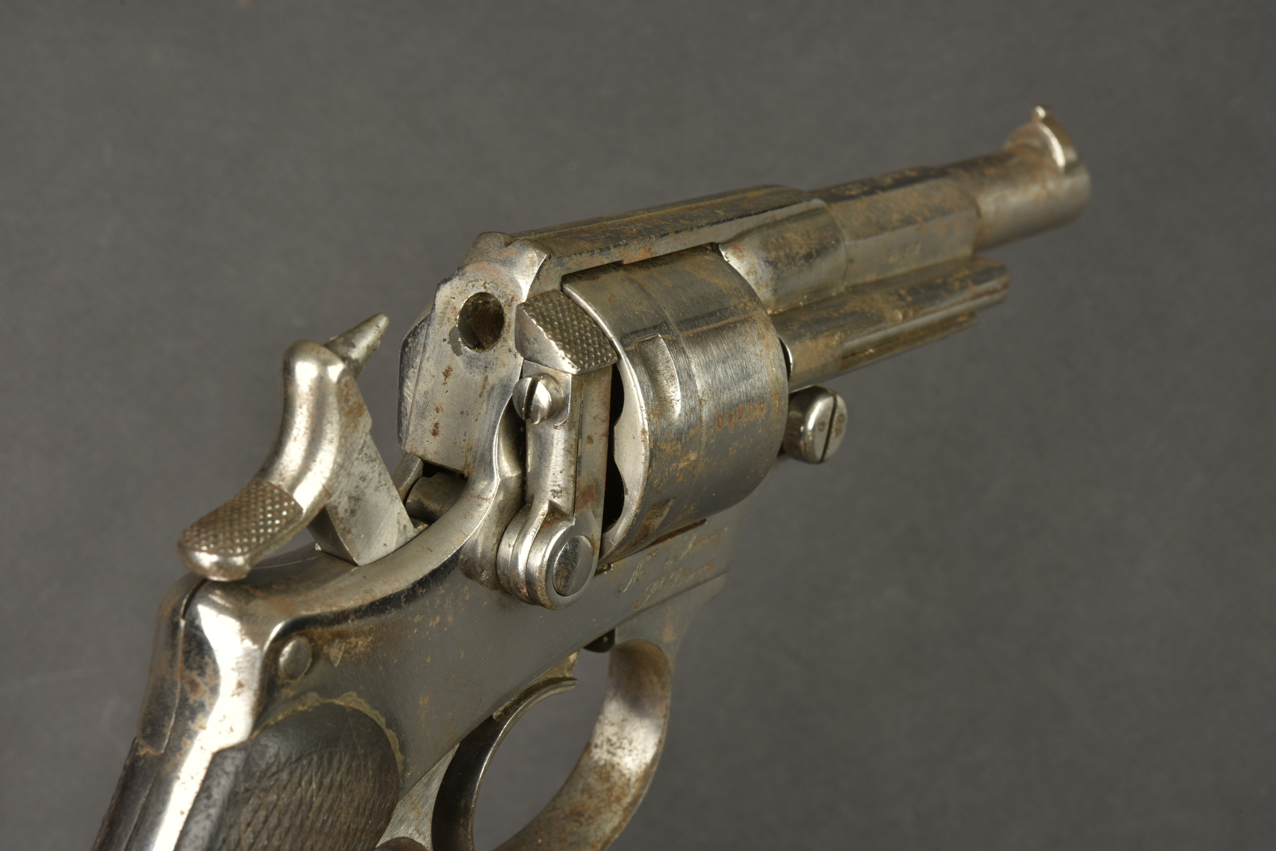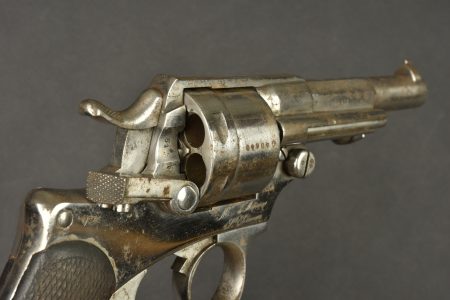 Détails de la vente >Revolver d’ordonnance modèle 1873. En acier poli, rouille superficielle facilement nettoyable. Manufacture d’armes de St Etienne, daté 1877. Toutes pièces au même numéro de série... en savoir plus