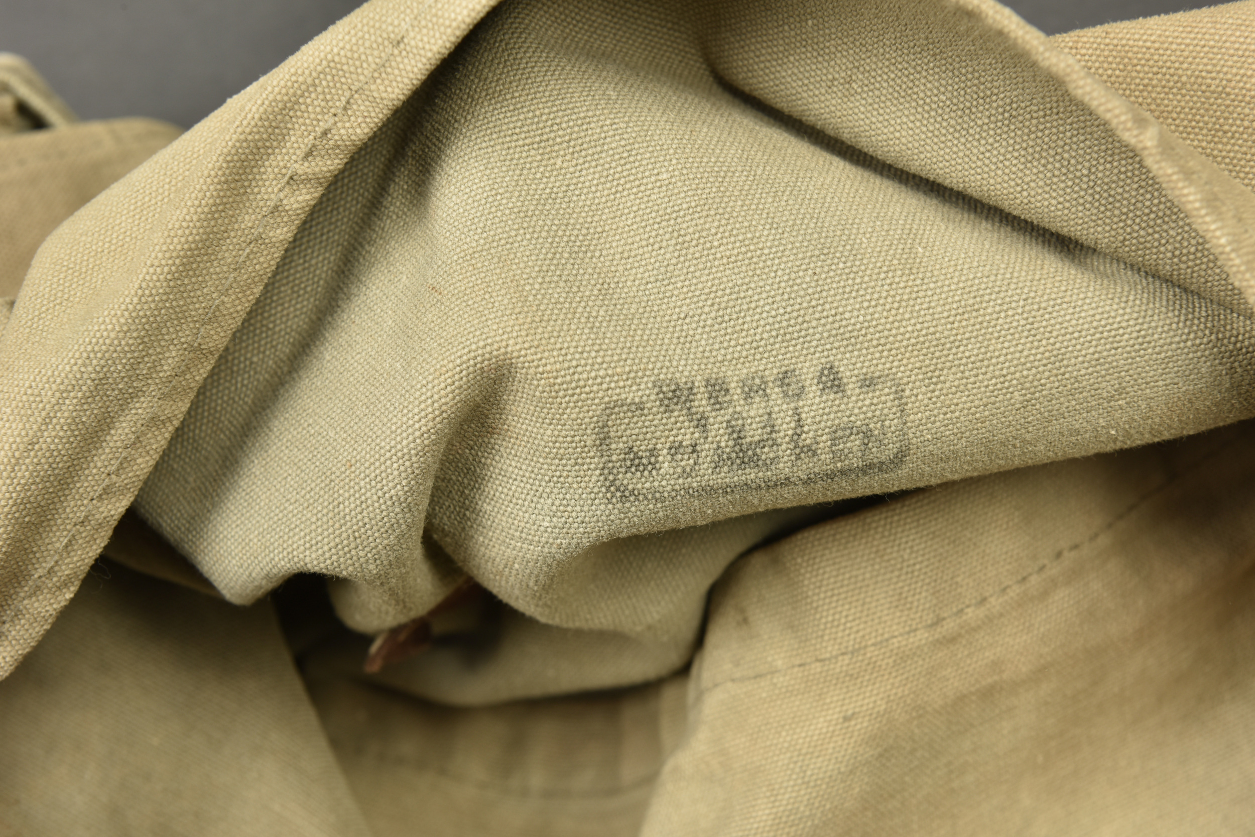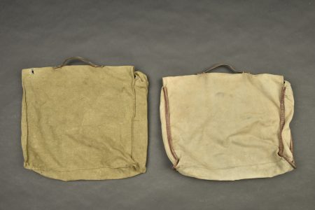 Détails de la vente >Sacoches allemande. Comprenant une sacoche en toile Feldgrau, les attaches en cuirs sont présentes. Sans marquages visibles. Une sacoche en toile grise et cuir marron, les sangles sont... en savoir plus