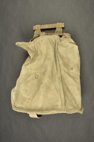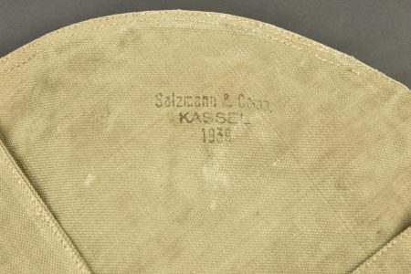 Vache à eau allemande. En épaisse toile Feldgrau. Les poignées de transport sont en bois. Fabrication Salzmann Kassel 1938. A noter une certaine usure et patine de la pièce, ainsi que quelques tâches et accrocs. Etat II+.