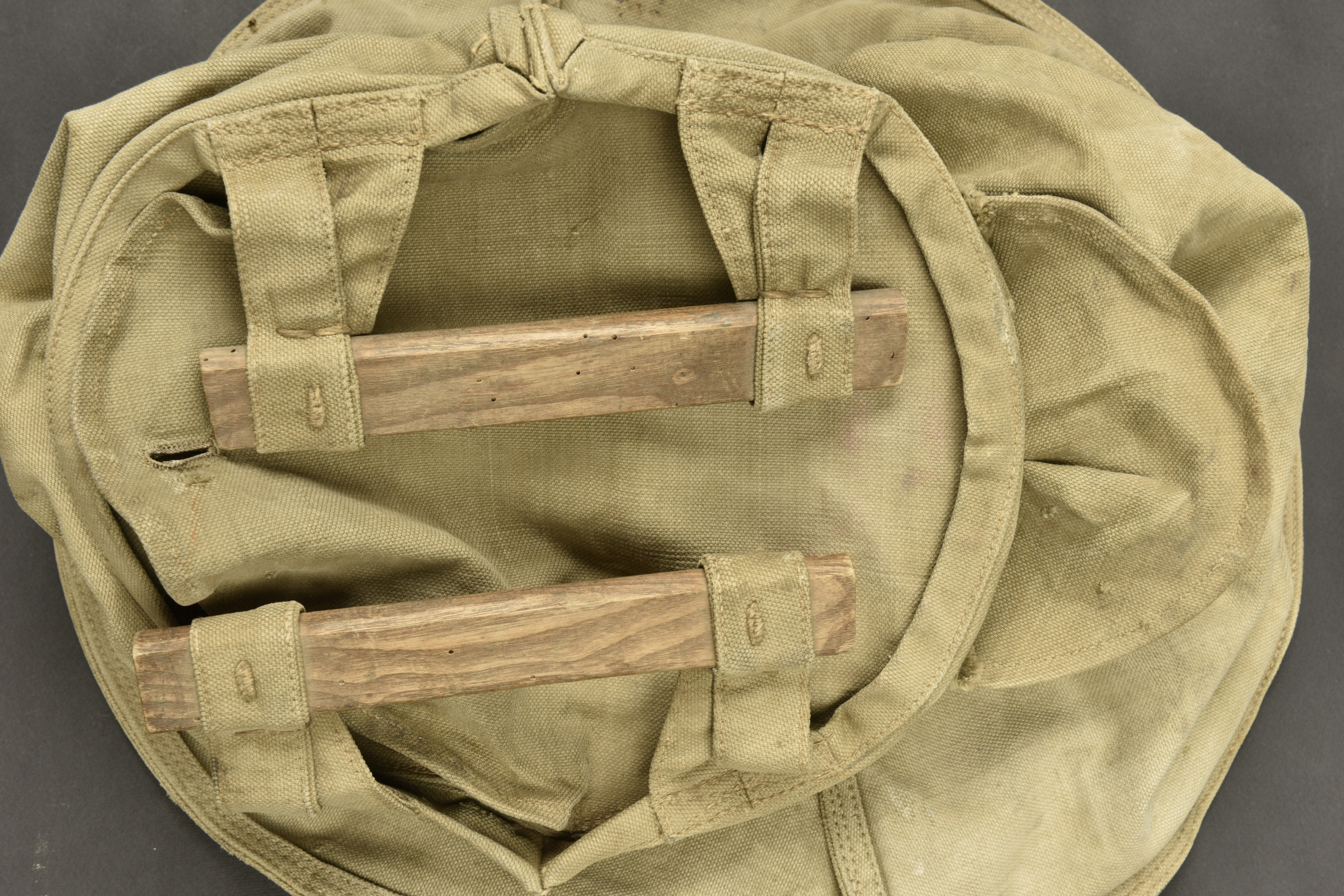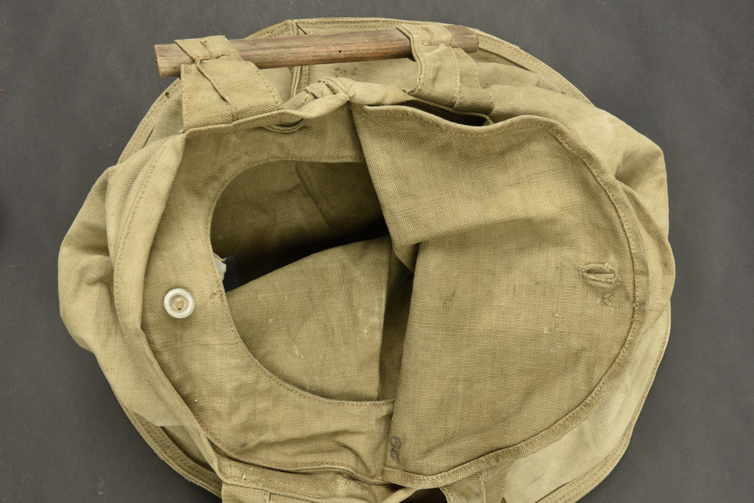 Vache à eau allemande. En épaisse toile Feldgrau. Les poignées de transport sont en bois. Fabrication Salzmann Kassel 1938. A noter une certaine usure et patine de la pièce, ainsi que quelques... en savoir plus