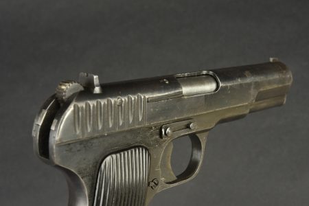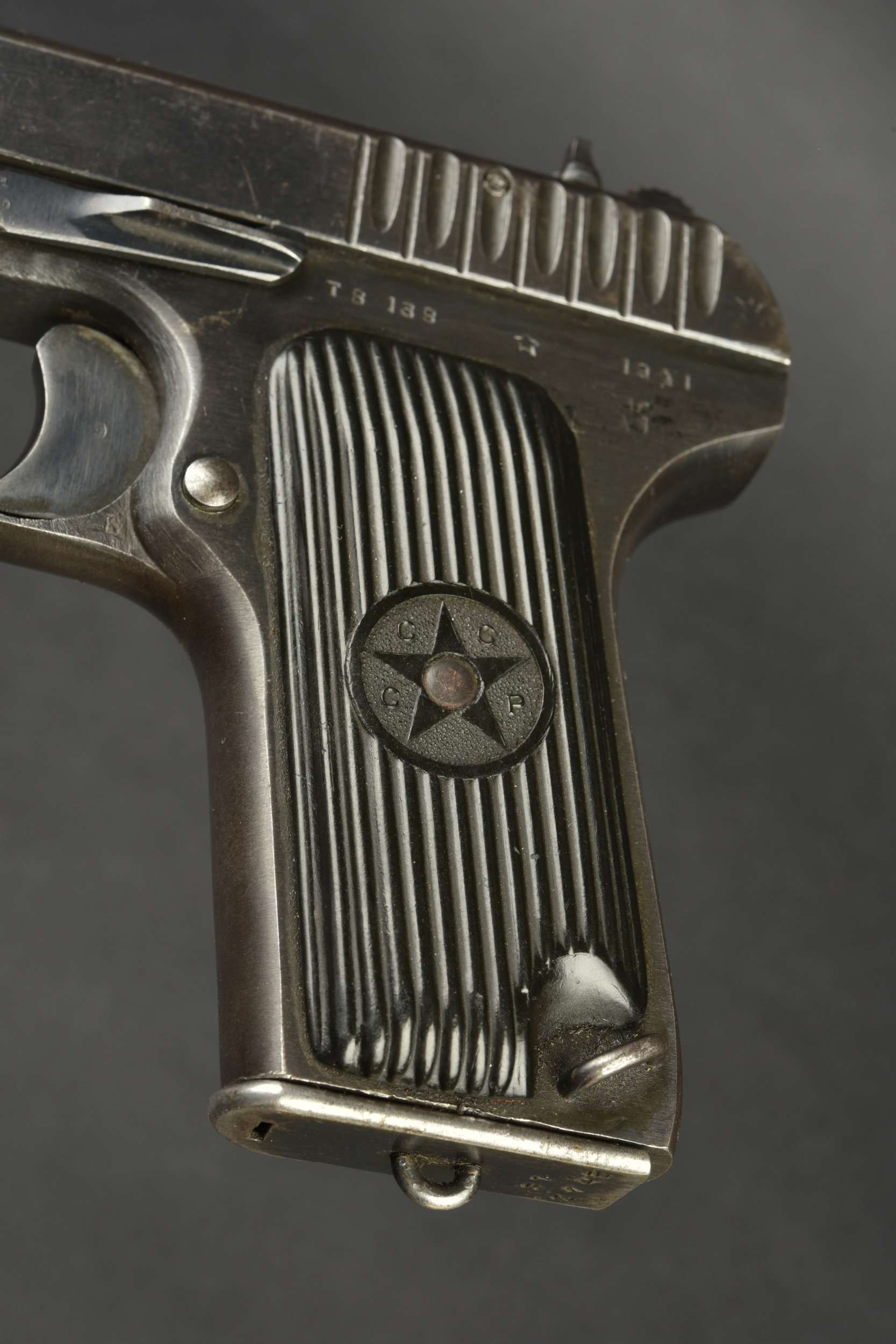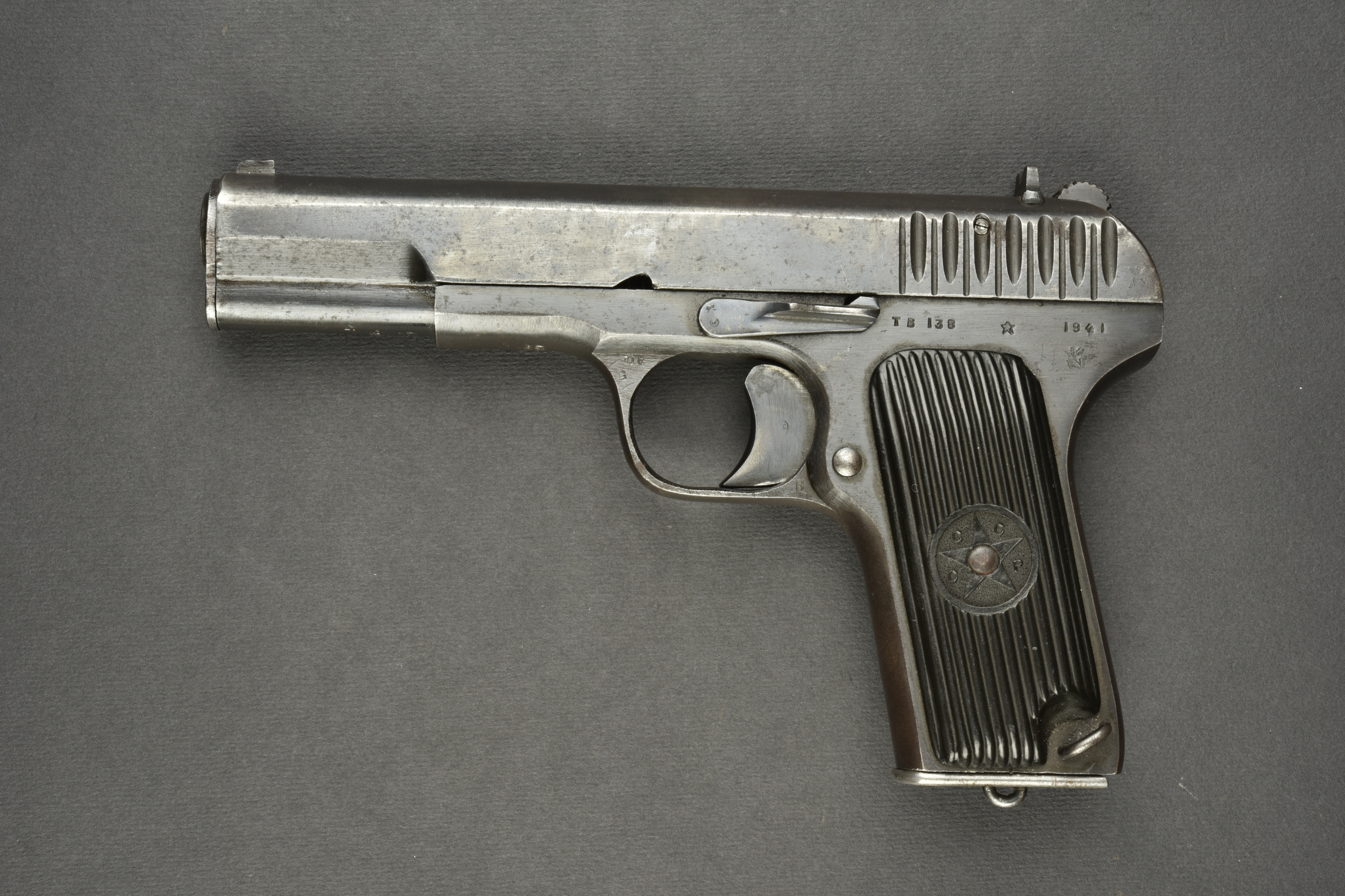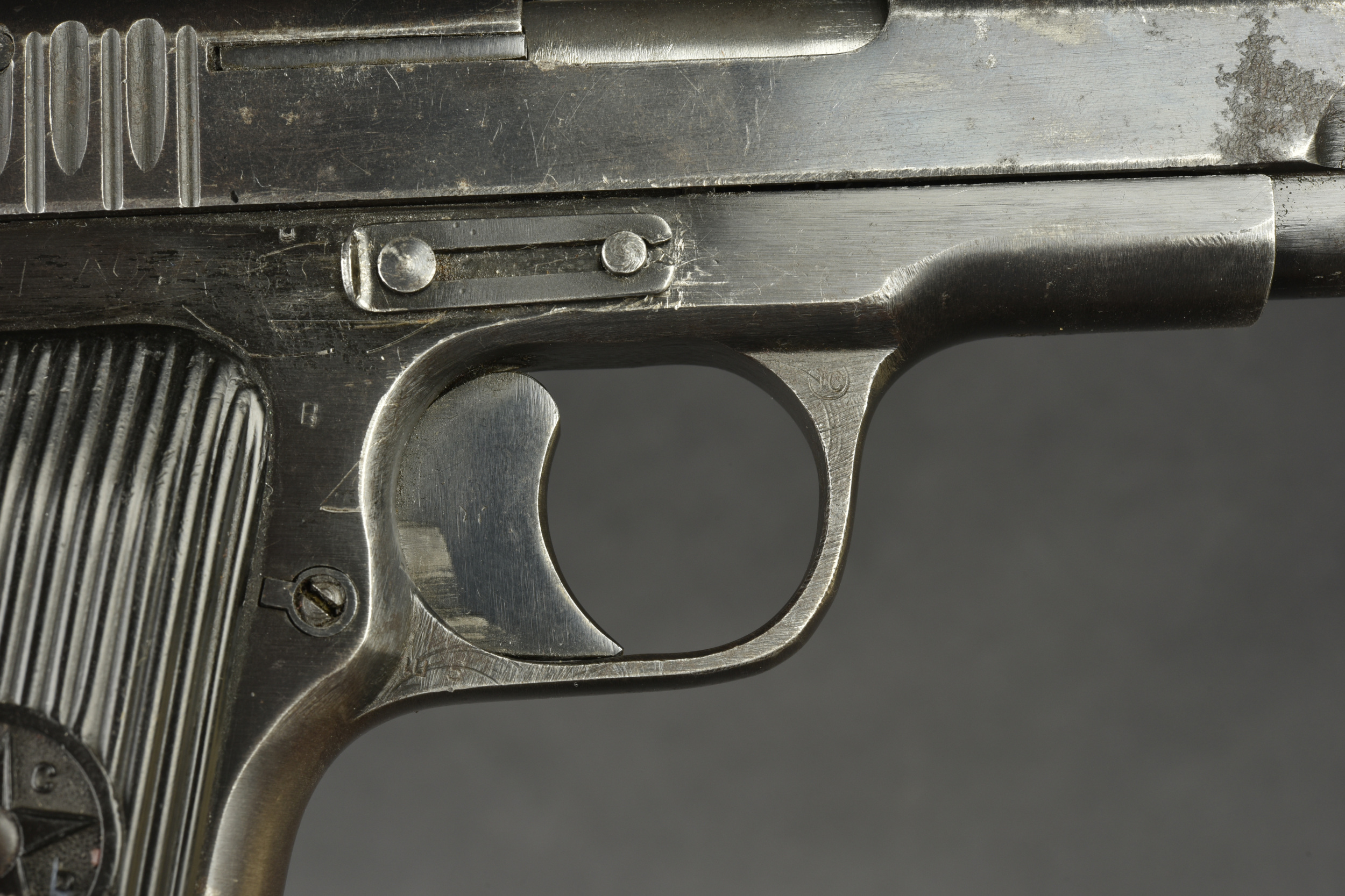 Pistolet TT33. Bronzage à 80%. Plaquette en bakélite noire. Chargeur bloqué par la neutralisation. Culasse rendue mobile par une neutralisation +. Daté 1941. Numéro TB 138. Catégorie C9.... en savoir plus