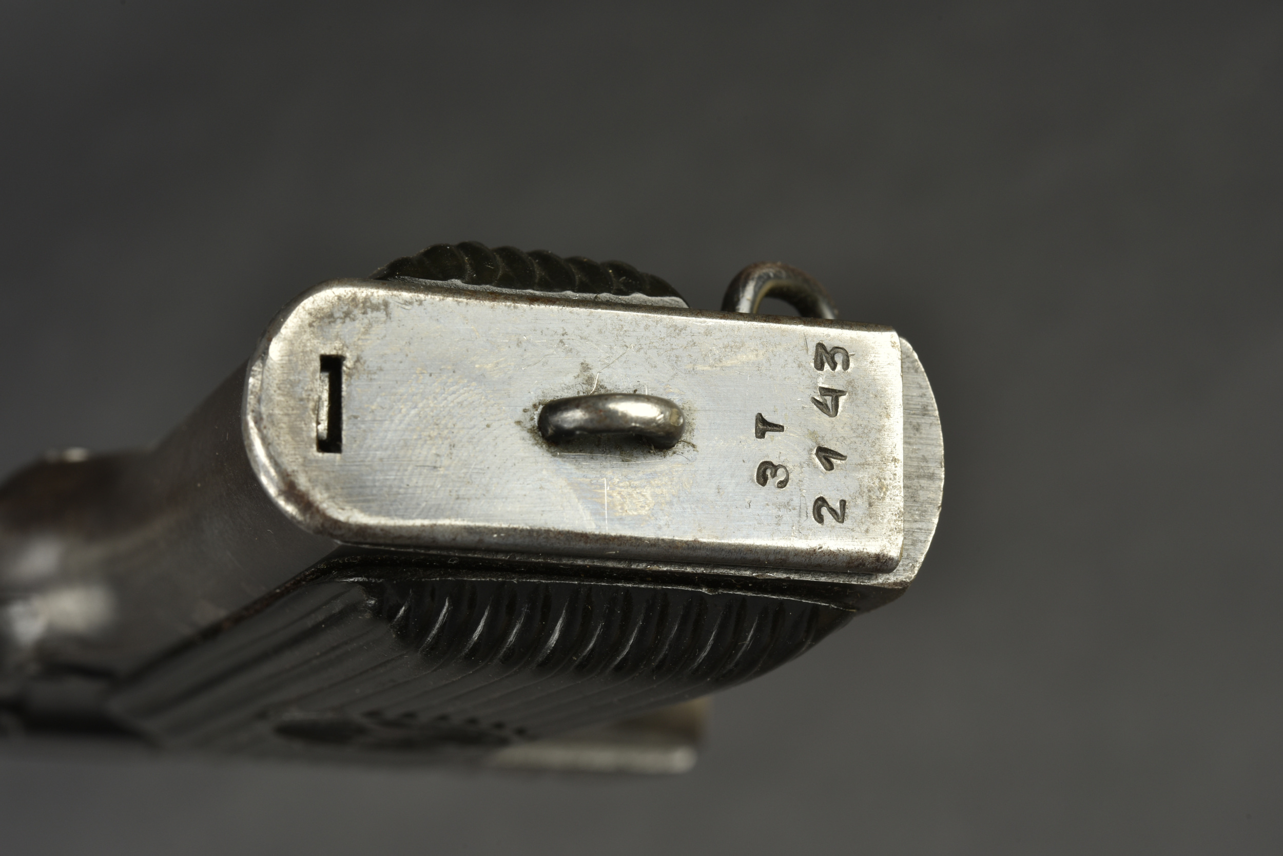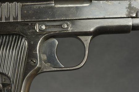 Pistolet TT33. Bronzage à 80%. Plaquette en bakélite noire. Chargeur bloqué par la neutralisation. Culasse rendue mobile par une neutralisation +. Daté 1941. Numéro TB 138. Catégorie C9. Arme neutralisée aux nouvelles normes européenne par le Banc d’épreuve de Saint Etienne. Cette arme doit être déclarée avec Cerfa et certificat médical de moins de 1 mois ou licence de tir tamponnée ou permis de chasse valide (art R312-56). La délivrance de l’arme n’aura lieu qu’après consultation du fichier Finadia. L’inscription de l’acheteur sur ce fichier entrainera automatiquement la nullité de la vente. A noter une certaine usure et patine de la pièce. Etat II+.