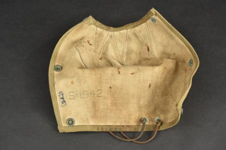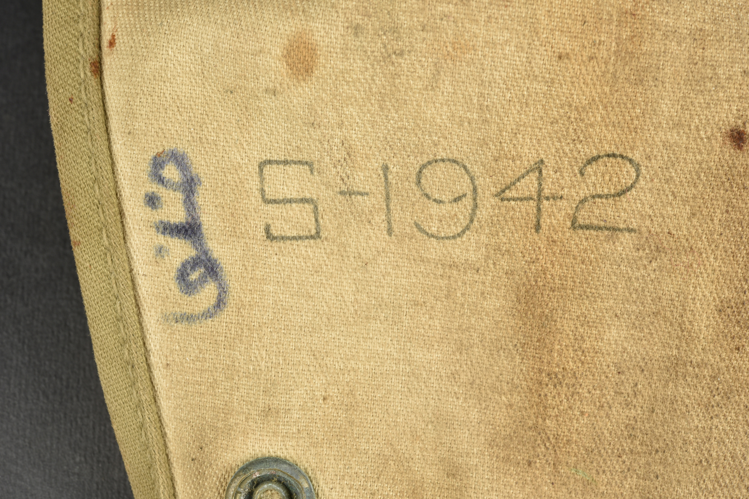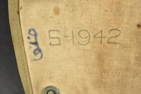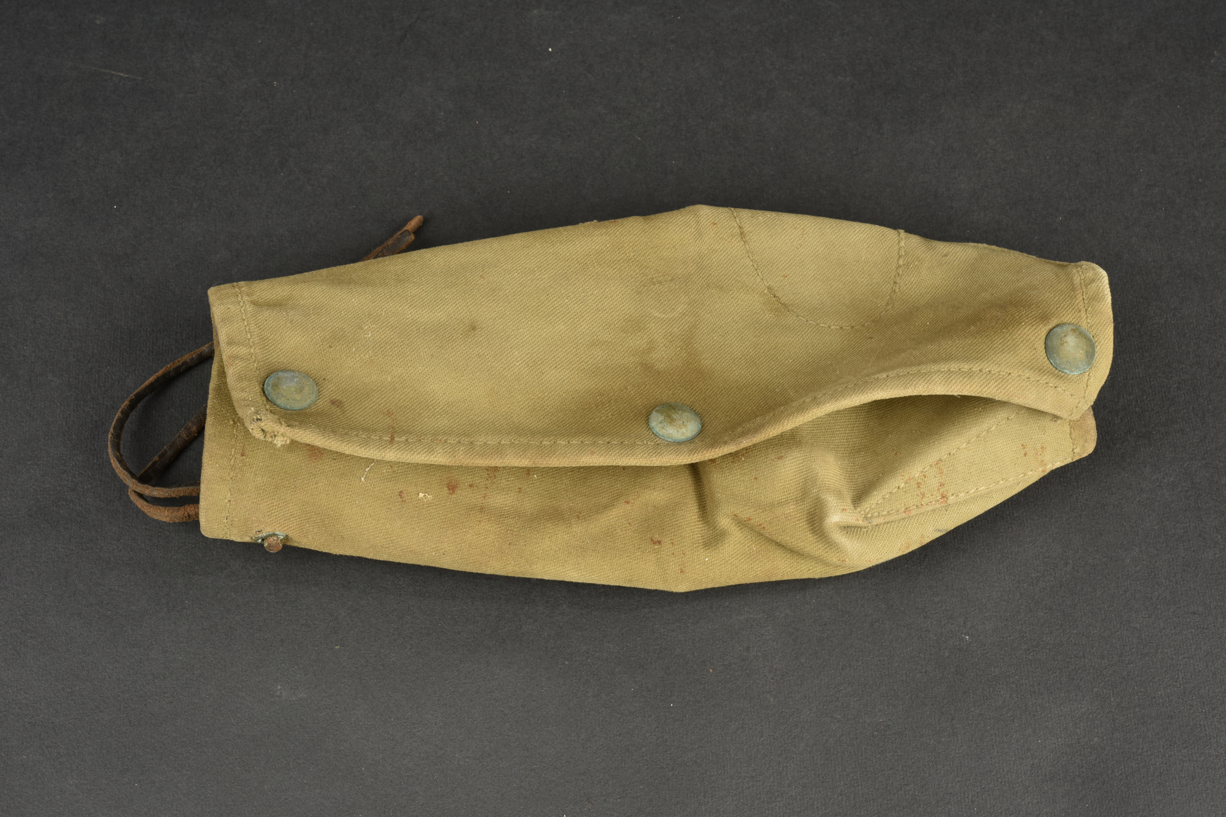 Couvre culasse d’un fusil Lee Enfield. En épaisse toile kaki, les boutons pressions sont fonctionnels. Les cordons en cuir sont complets. Fabrication S-1942. A noter une certaine usure et patine de la pièce, ainsi que des tâches. Etat II+.