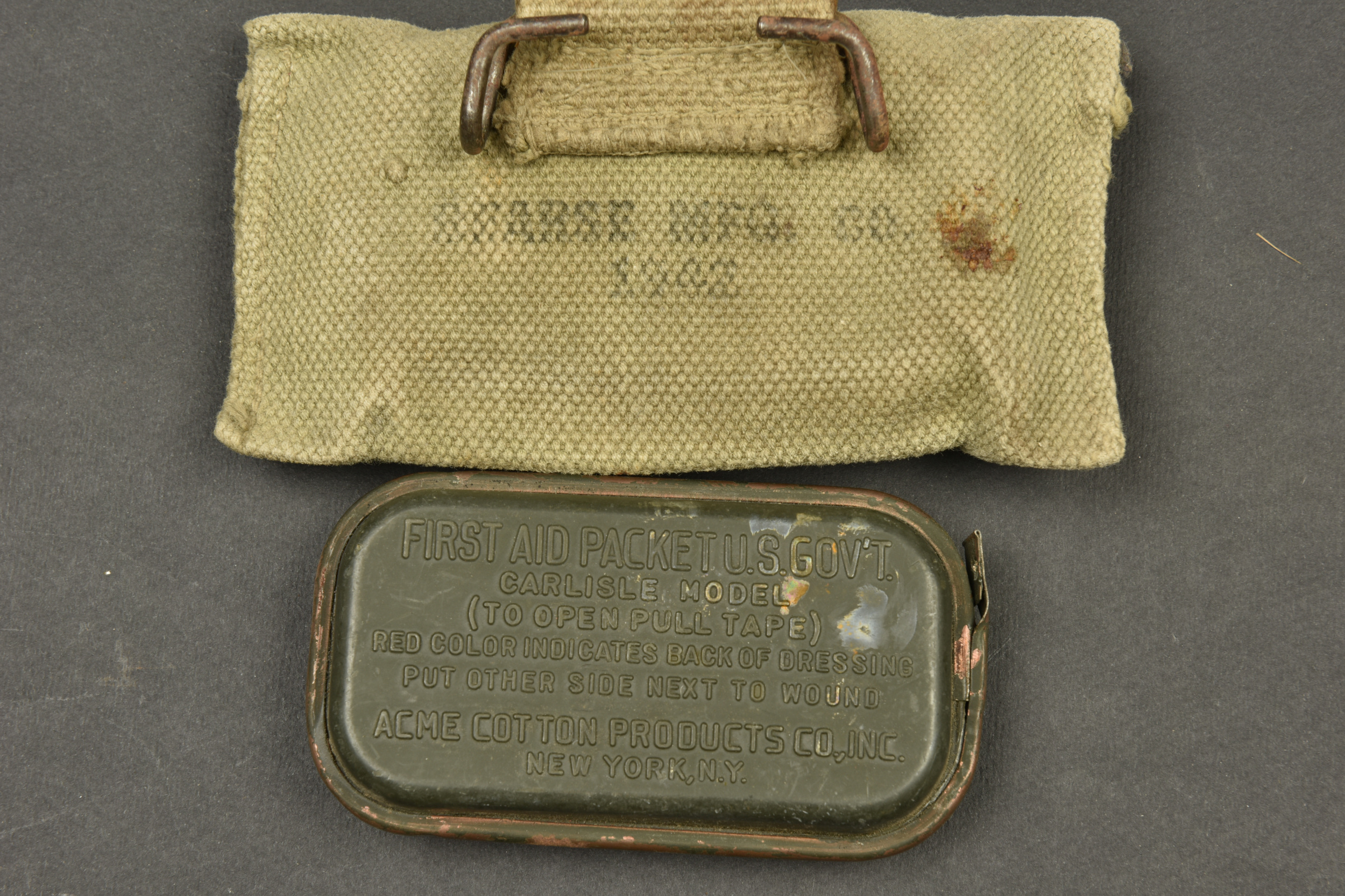 Détails de la vente >Accessoires US. Comprenant trois préservatifs de fouille. Un sachet complet, marqué Pro Kit Individual Chemical Prophylatic Packet. Un jeu de carte Caravan, nombreuses réparations au scotch.... en savoir plus