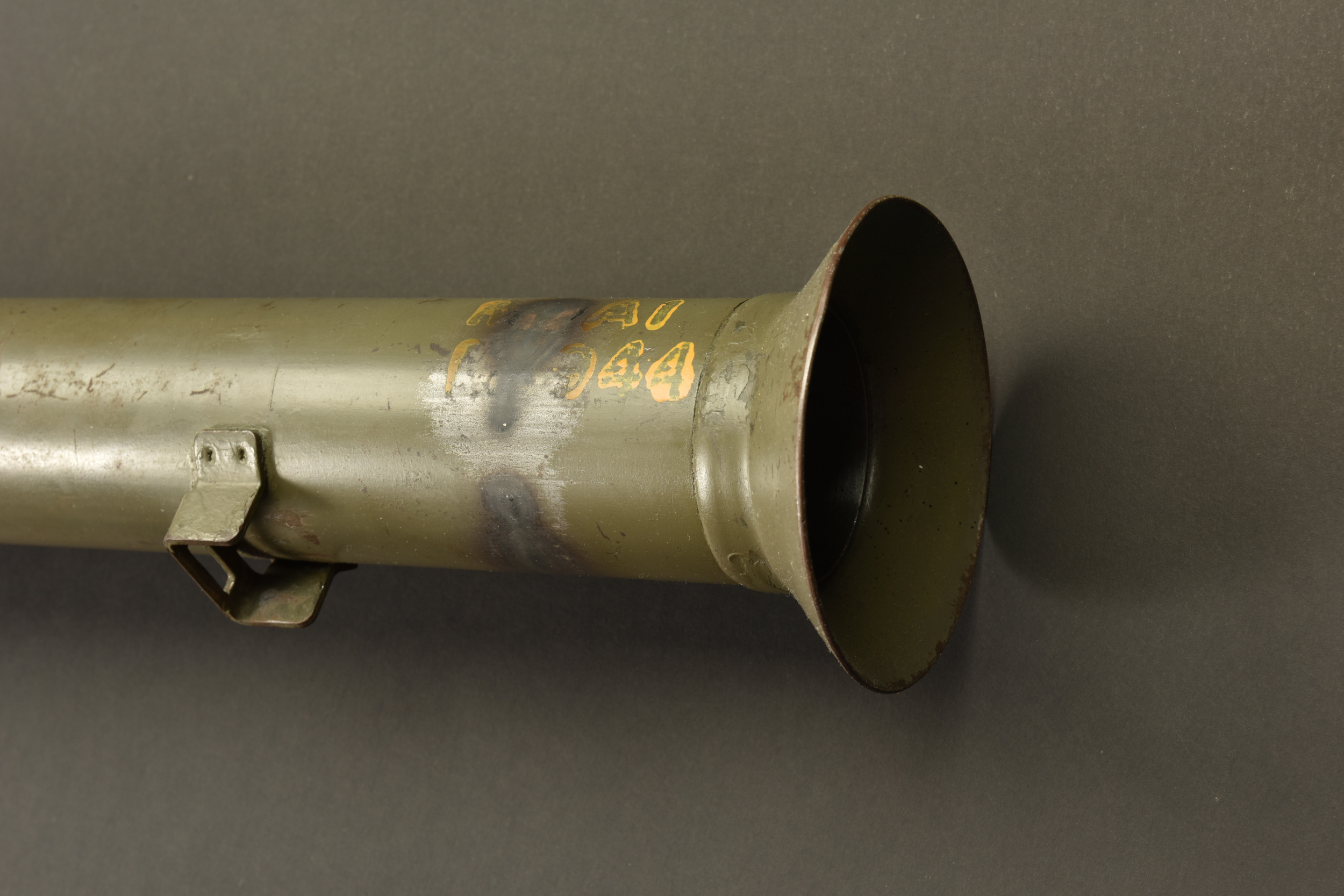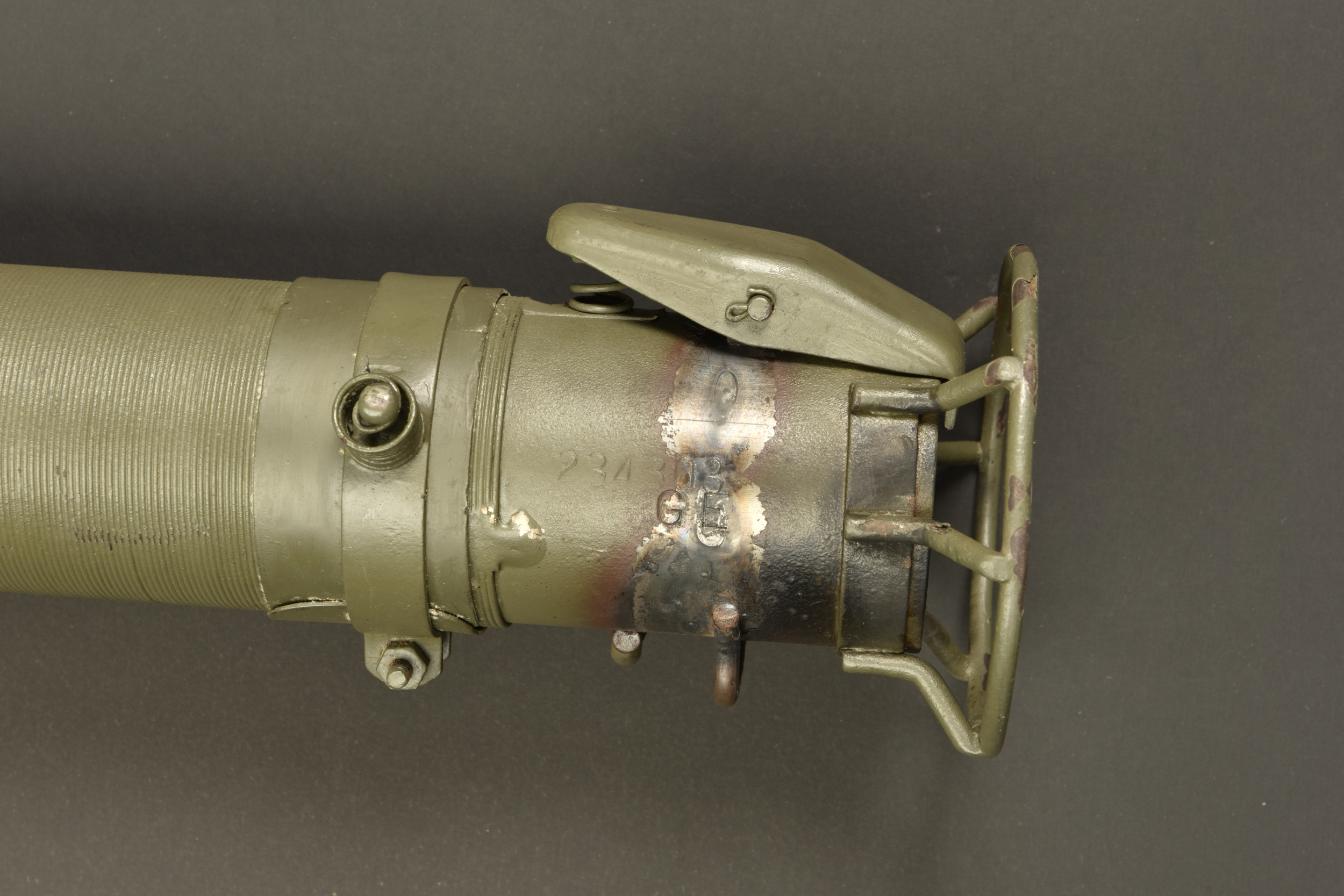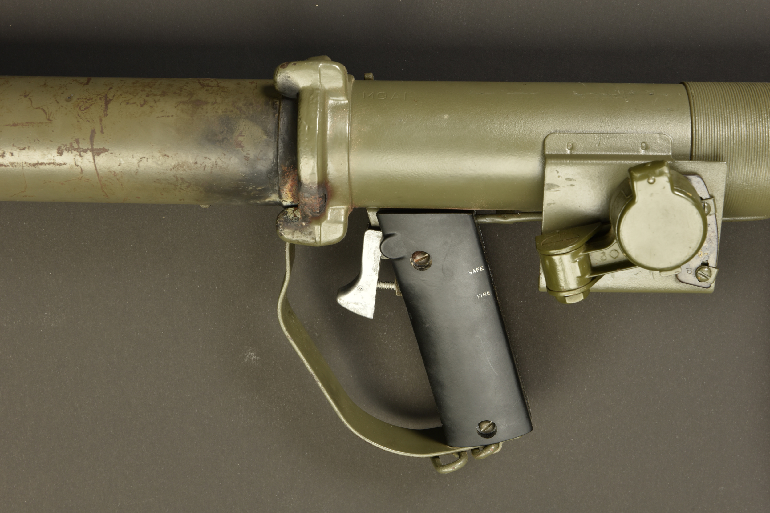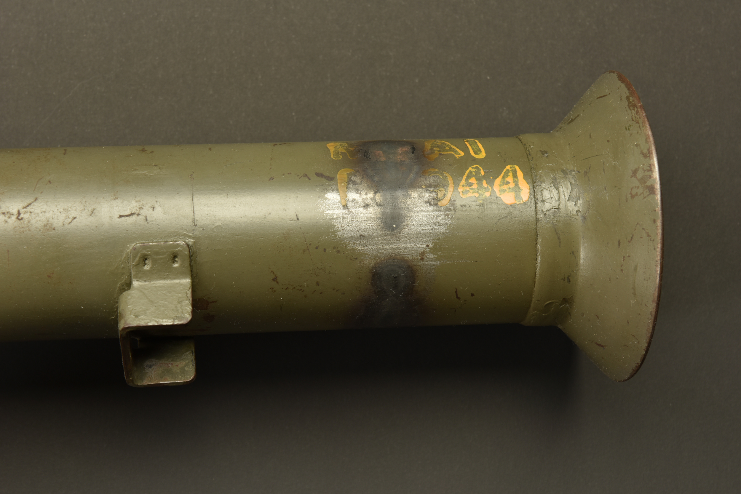 Détails de la vente >Bazooka US M9A1. En métal. Peinture kaki postérieure. Modèle normalement démontable mais scellé par la neutralisation. Poignée en bakélite noire. Epaulière en métal. Numéro 234303.... en savoir plus