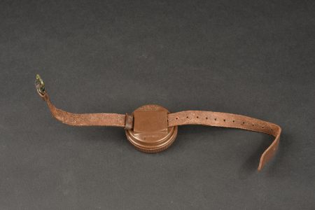 Boussole de poignet Taylor US WW2. Boussole en bakélite marron, fonctionnelle, bracelet en cuir. Fabrication Taylor Rochester N.Y. et Model, US Army Compass Wrist Liquid Filled. Oxydation sur la... en savoir plus