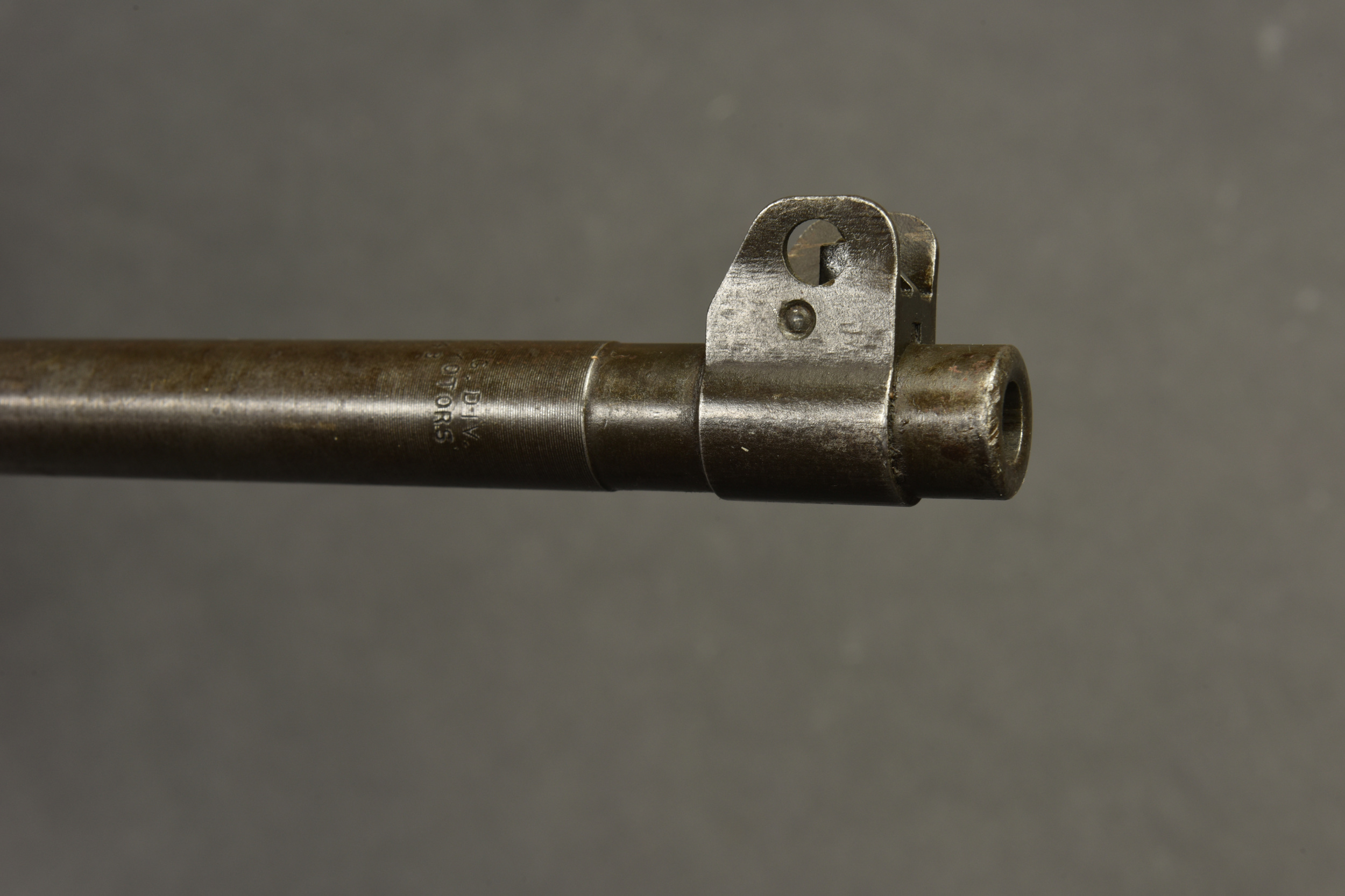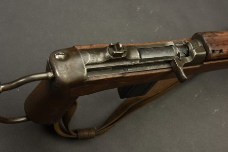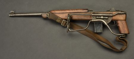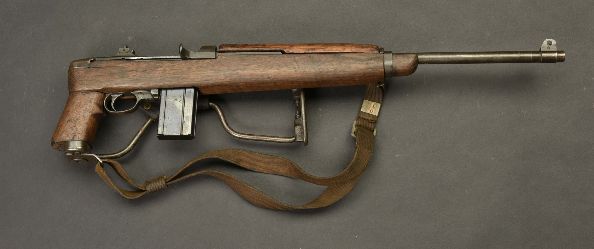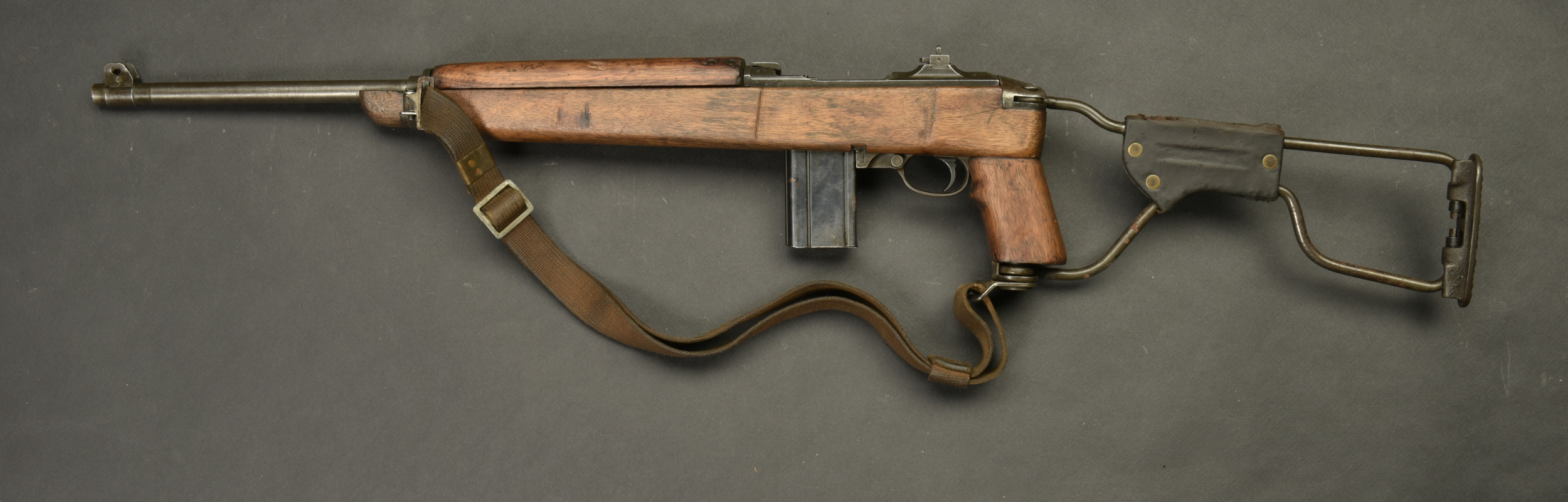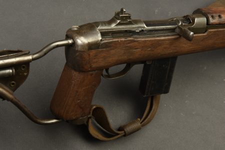 Carabine USM1A1. Garnitures métalliques en très bon état. Canon de fabrication General Motors, daté du mois de septembre 1943. Fabrication Inland Division. Numéro 832834. Chargeur présent bloquée par la neutralisation. Hausse en L. Culasse mobile par une neutralisation +. Belle crosse en bois. Crosse en métal pliante, complète, numéro 2576 11 12. Appuie joue en cuir présent, mais incomplet, et fortement graissé. Bretelle en toile postérieure. Catégorie C9. Arme neutralisée aux nouvelles normes européenne par le Banc d’épreuve de Saint Etienne. Cette arme doit être déclarée avec Cerfa et certificat médical de moins de 1 mois ou licence de tir tamponnée ou permis de chasse valide (art R312-56). La délivrance de l’arme n’aura lieu qu’après consultation du fichier Finadia. L’inscription de l’acheteur sur ce fichier entrainera automatiquement la nullité de la vente. A noter une certaine usure et patine de la pièce. Etat II+.
