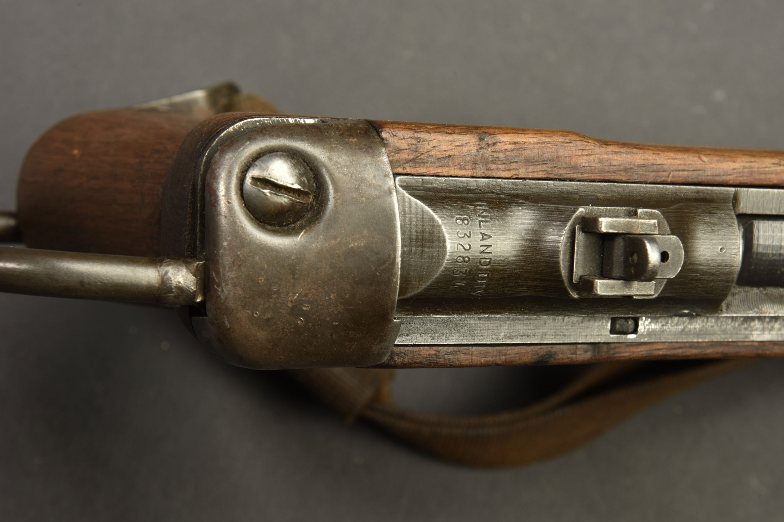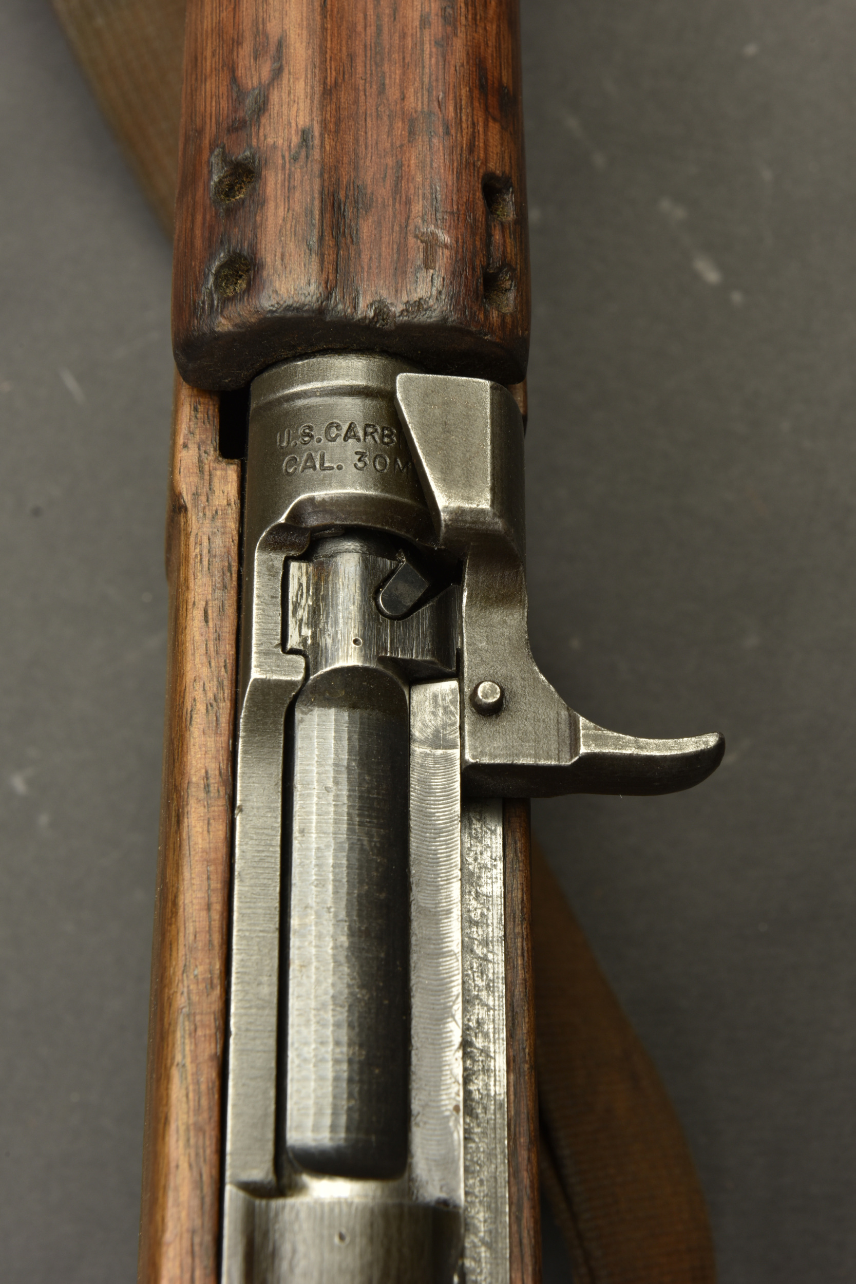 Détails de la vente >Carabine USM1A1. Garnitures métalliques en très bon état. Canon de fabrication General Motors, daté du mois de septembre 1943. Fabrication Inland Division. Numéro 832834. Chargeur présent... en savoir plus
