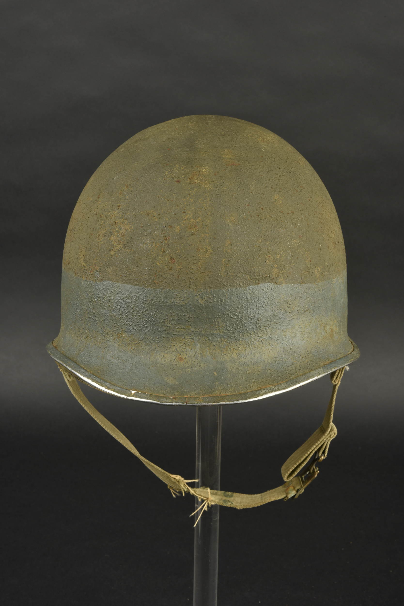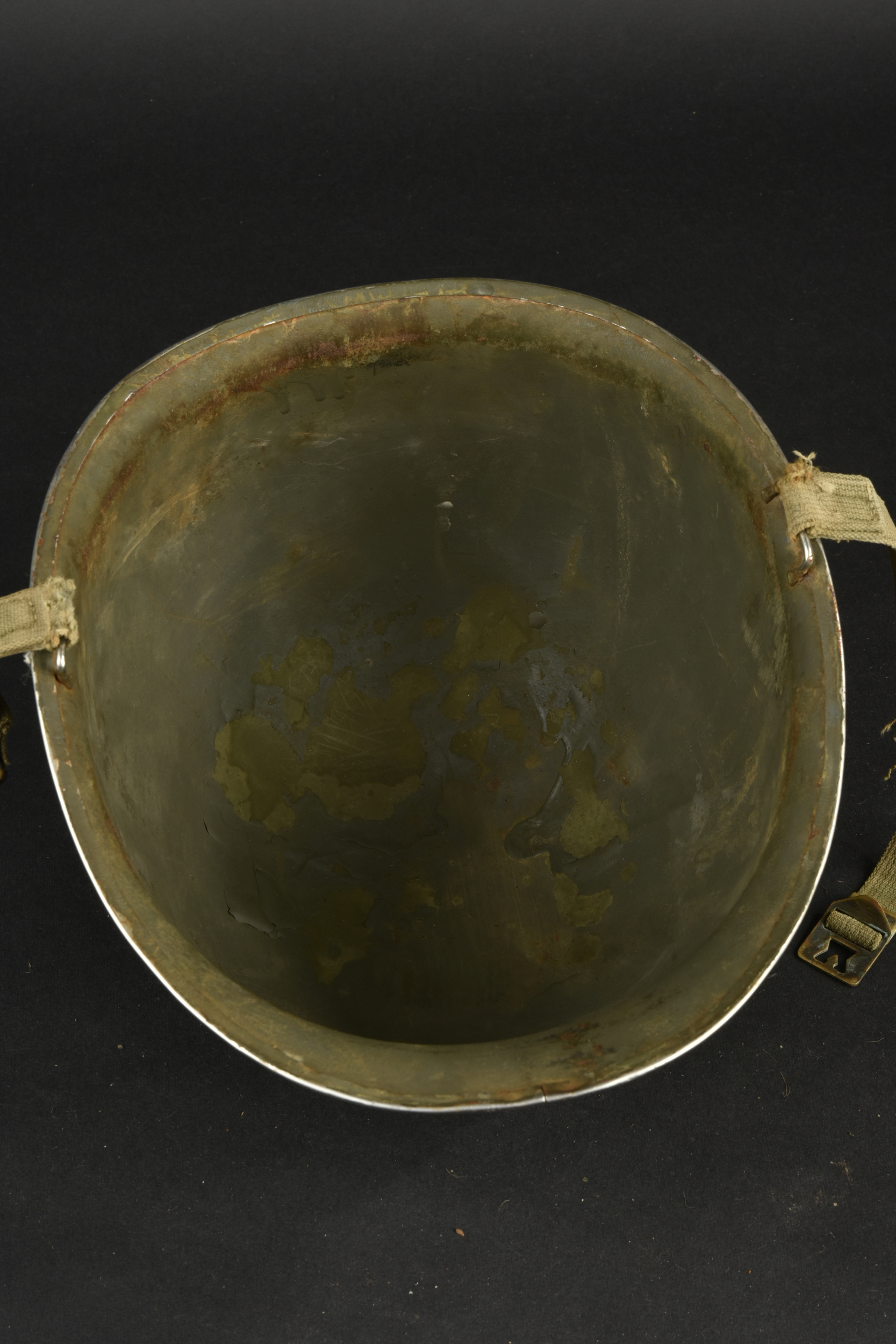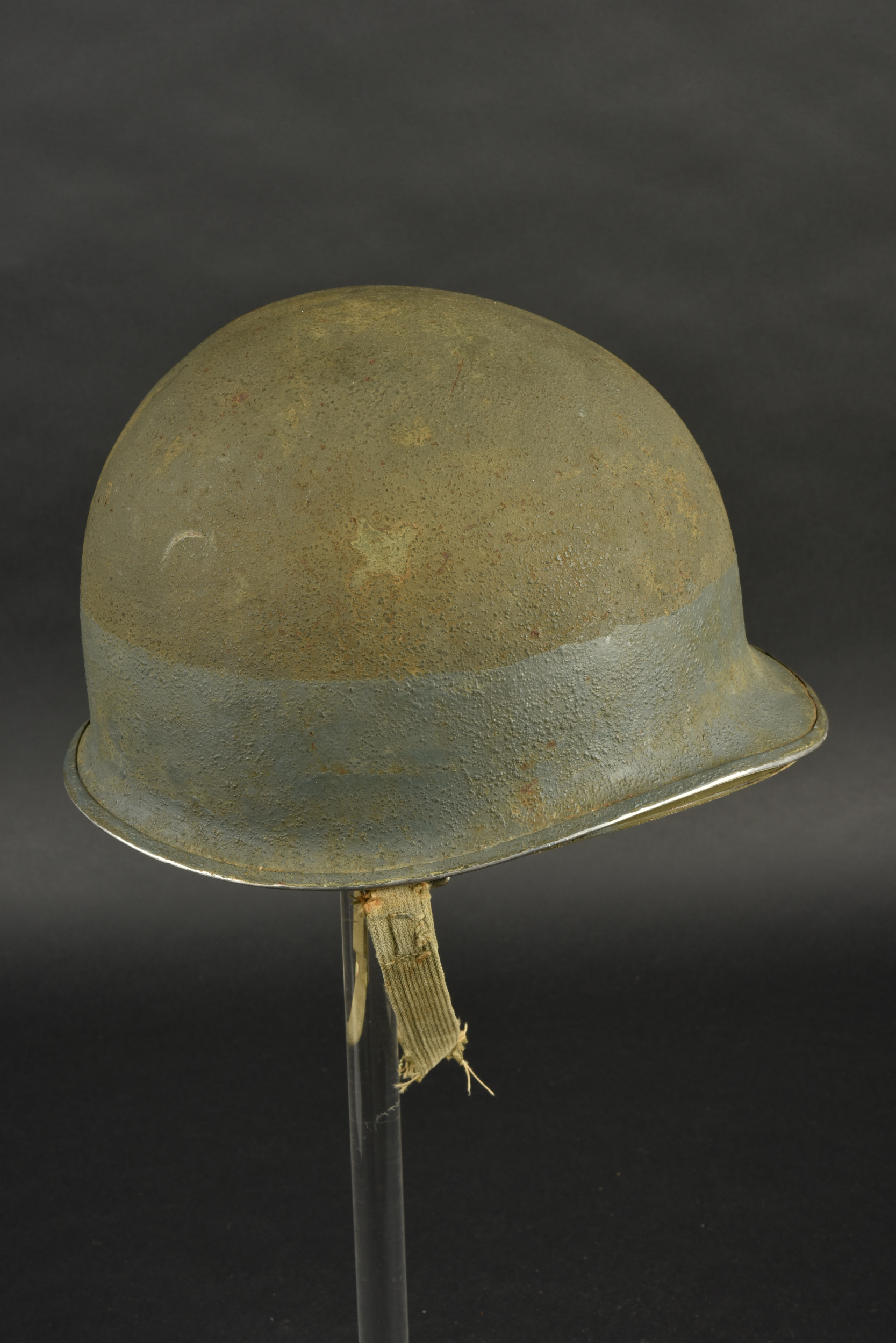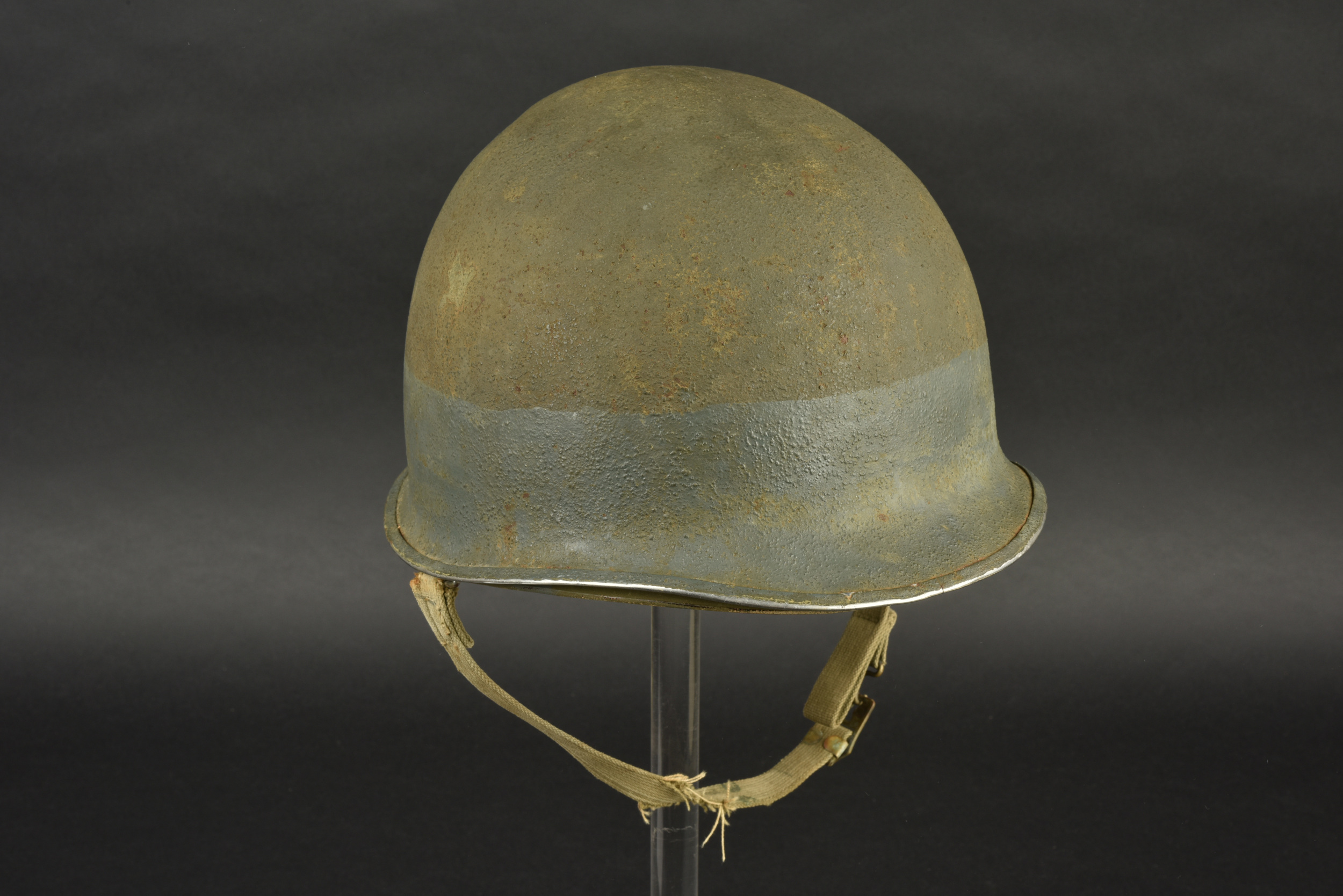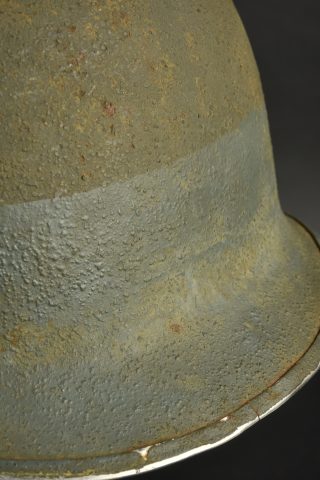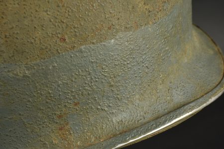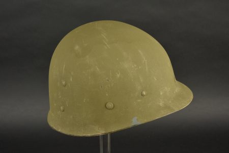 Détails de la vente >Casque US Navy. Coque de casque USM1, numéro de lot illisible. Intérieur de la coque disposant de plusieurs couches de peinture kaki. Peinture extérieur à 80%. Bande bleue faisant le tour de... en savoir plus