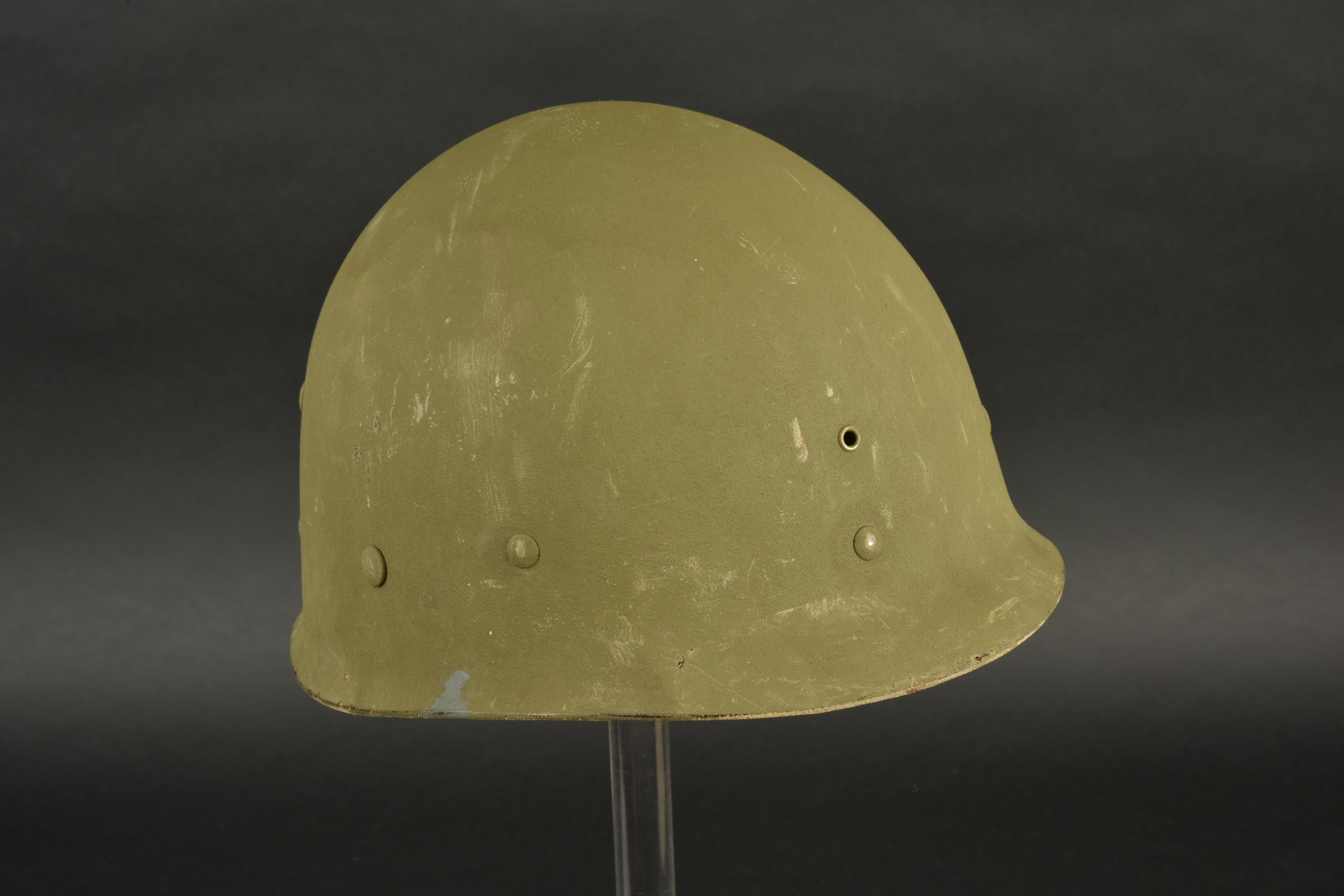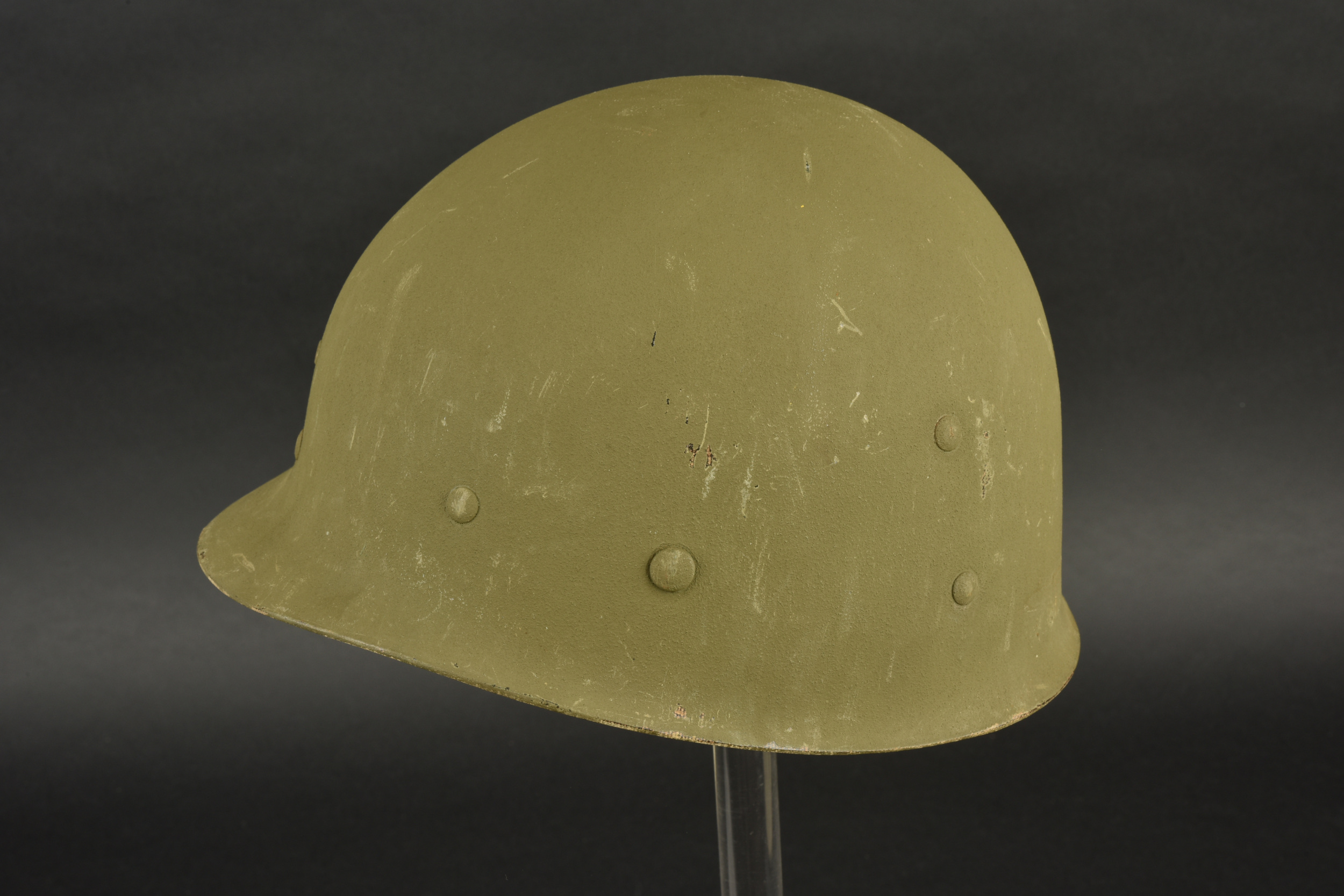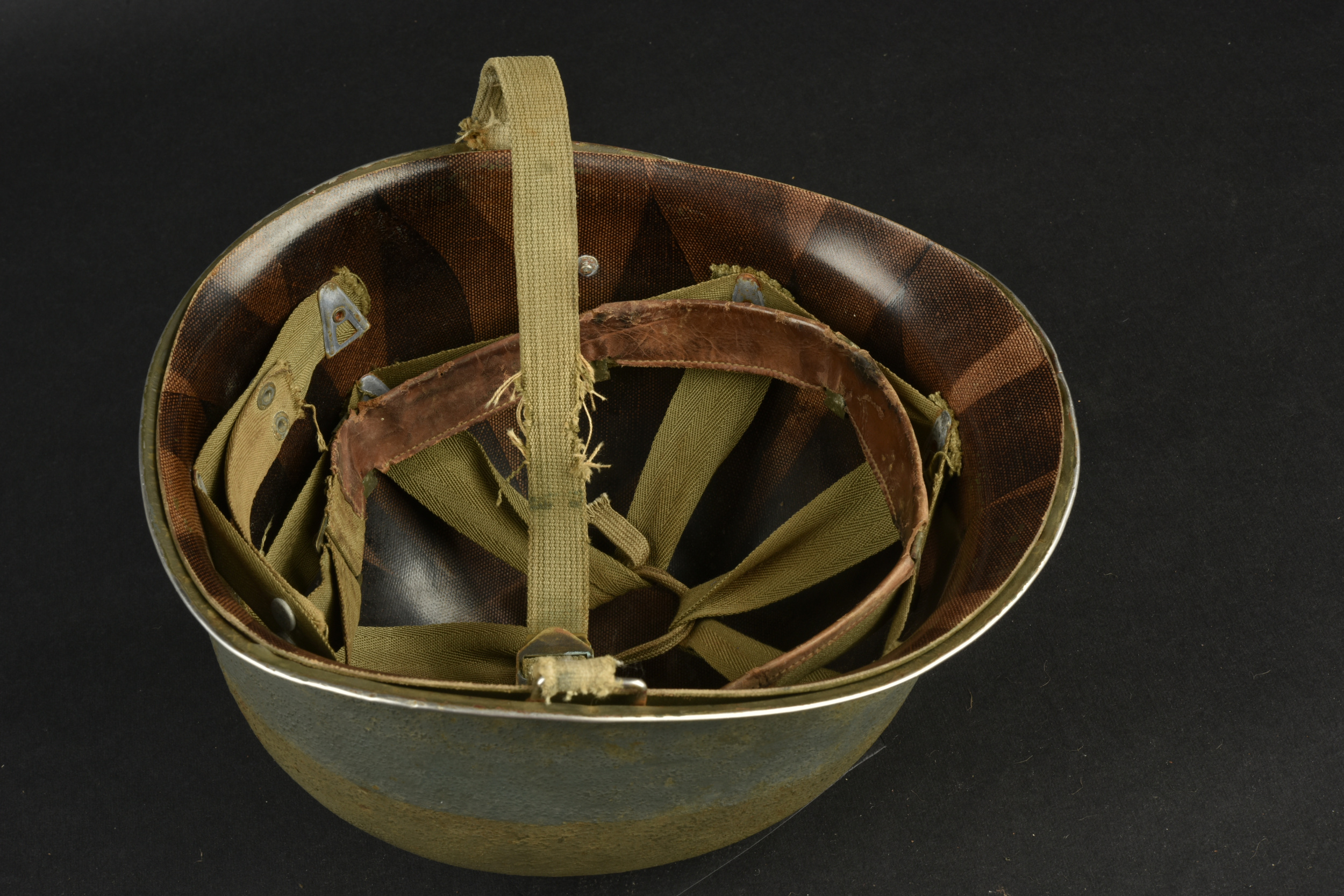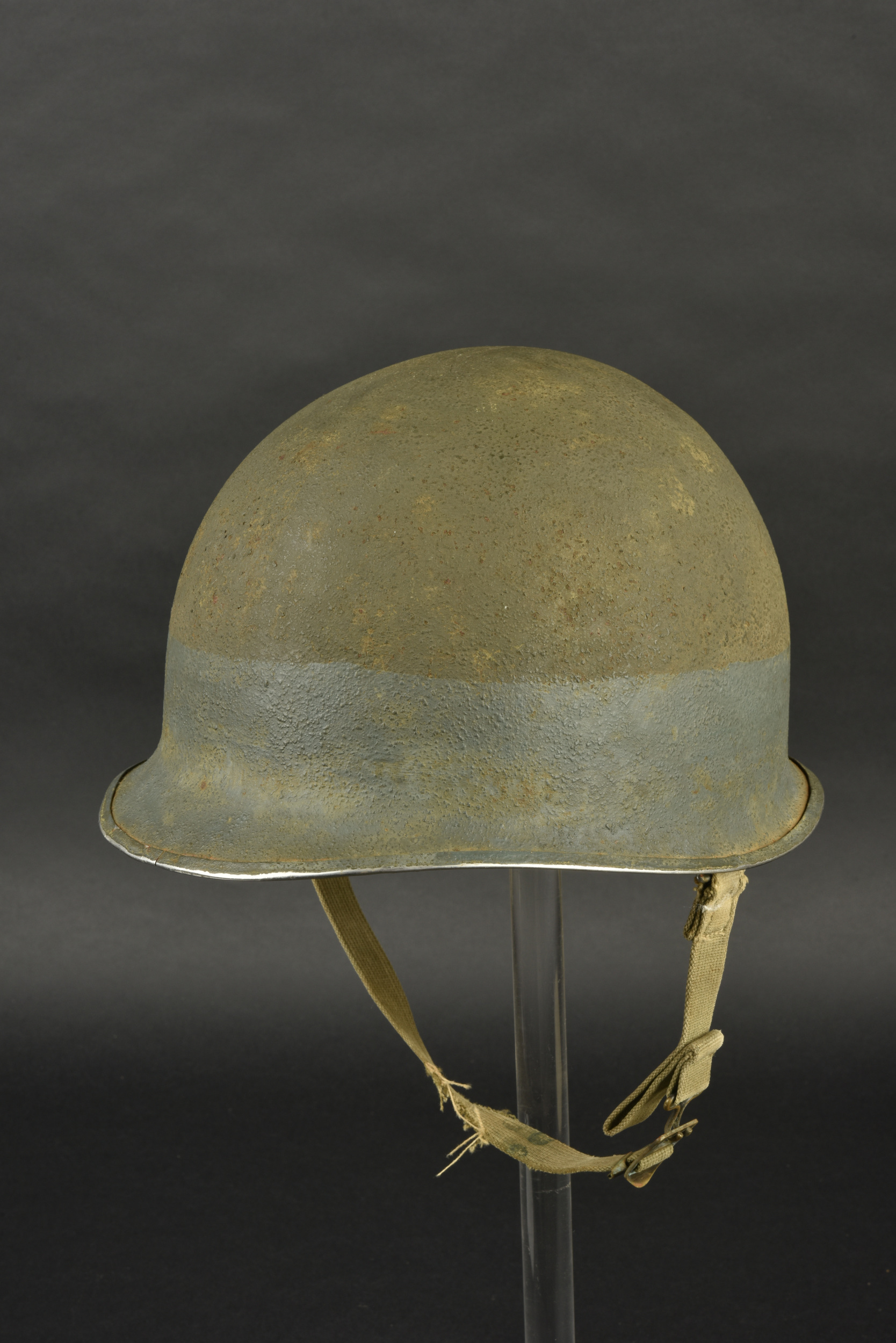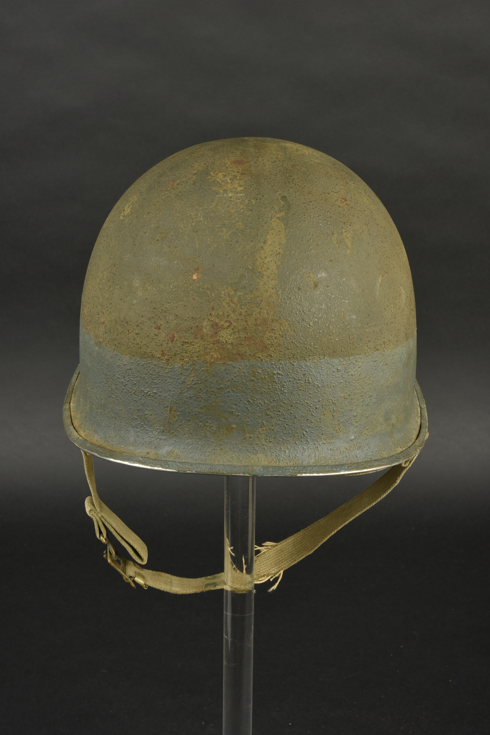 Détails de la vente >Casque US Navy. Coque de casque USM1, numéro de lot illisible. Intérieur de la coque disposant de plusieurs couches de peinture kaki. Peinture extérieur à 80%. Bande bleue faisant le tour de... en savoir plus