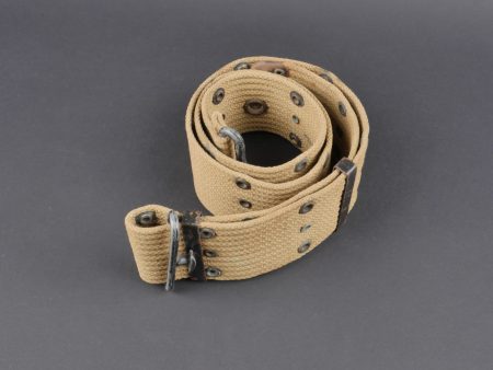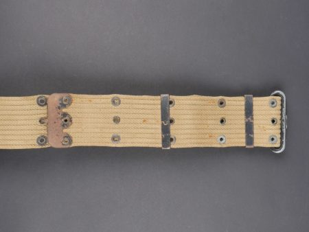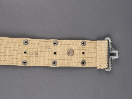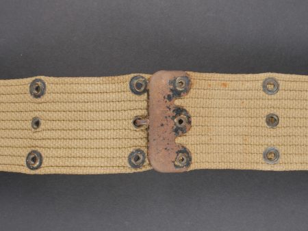 Détails de la vente >Ceinturon M-36. En forte toile OD. Bouclerie en métal peint. Beau marquages US sur le côté du ceinturon. Marquages fabricant illisibles. Datés 1942. Une partie des pièces métalliques sont... en savoir plus
