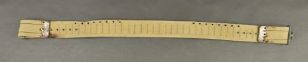 Détails de la vente >Ceinturon Shotgun US. En épaisse toile OD3. Bouclerie en laiton. Nombreux passant pour la fixation des cartouches du fusil à pompe U. Sans marquages visibles. Les parties métalliques sont... en savoir plus