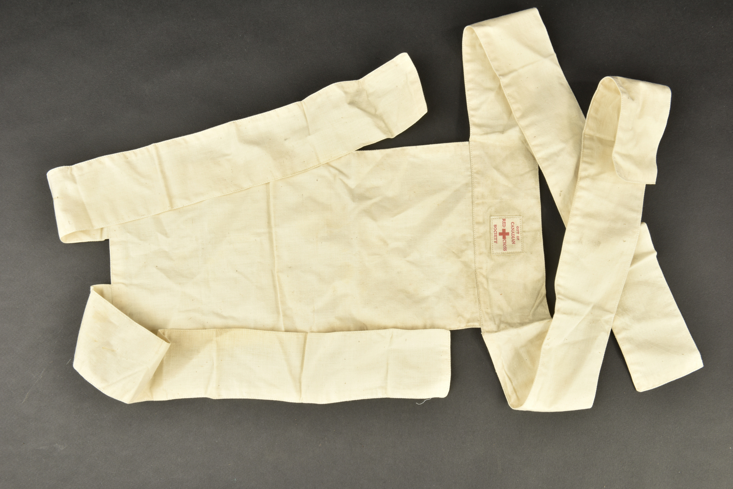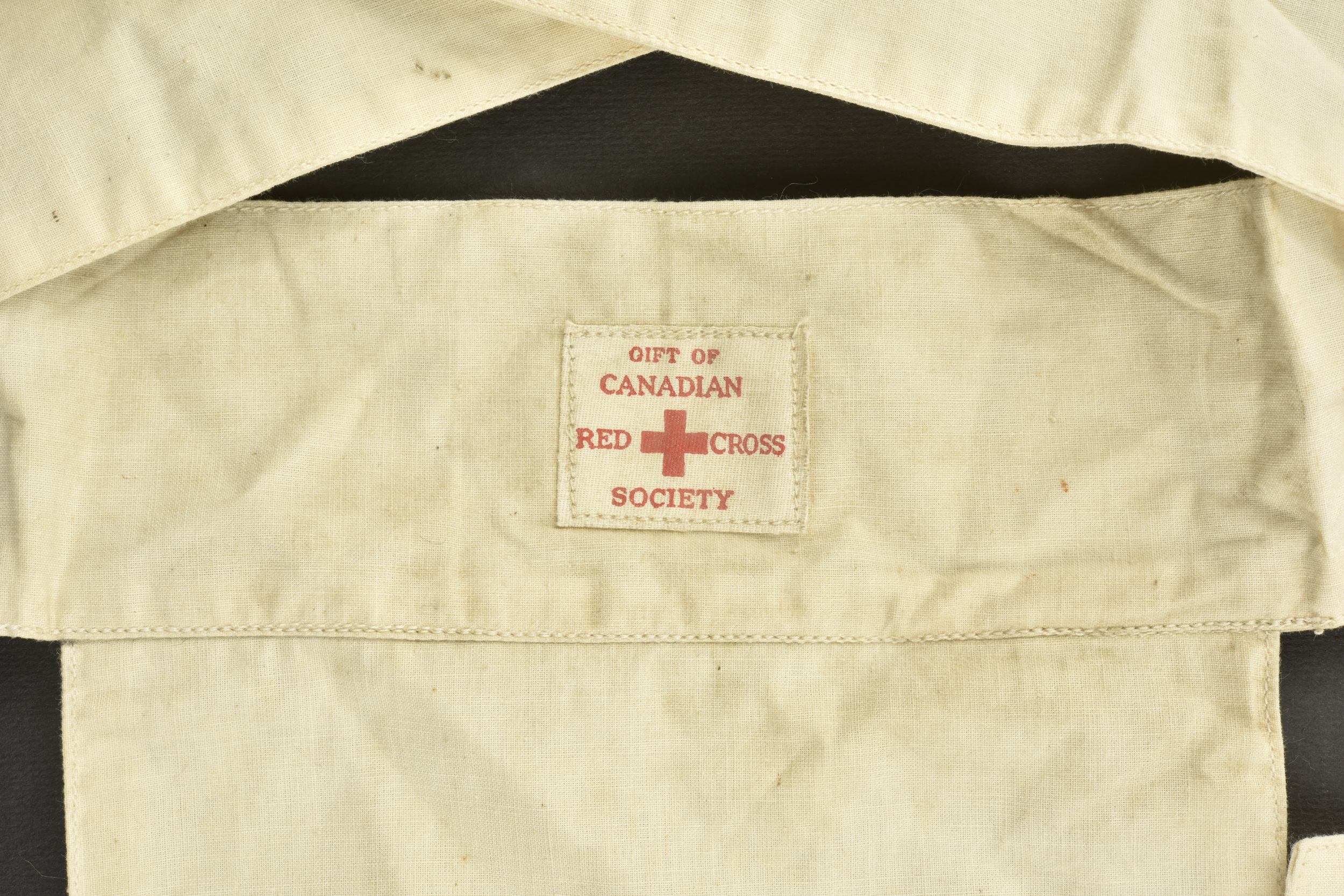 Coiffe d’infirmière canadienne. En tissu coton blanc. Etiquette marquée Gift of Canadian Red Cross Society. A noter une certaine usure et patine de la pièce, ainsi que des tâches. Etat II+.